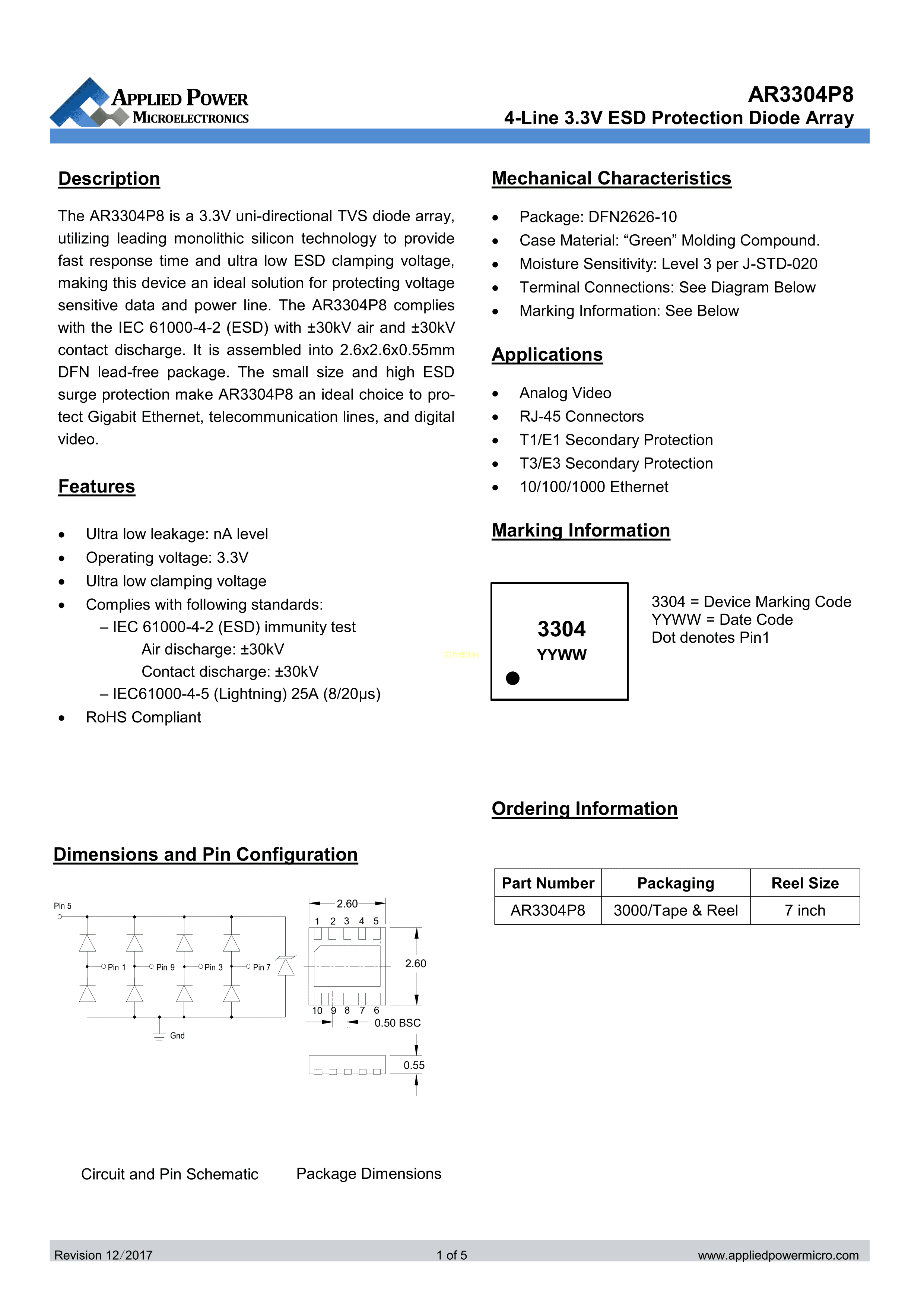 AR3304P8数据手册DFN2626封装Applied Power(应能微)PDF规格书,中英文下
