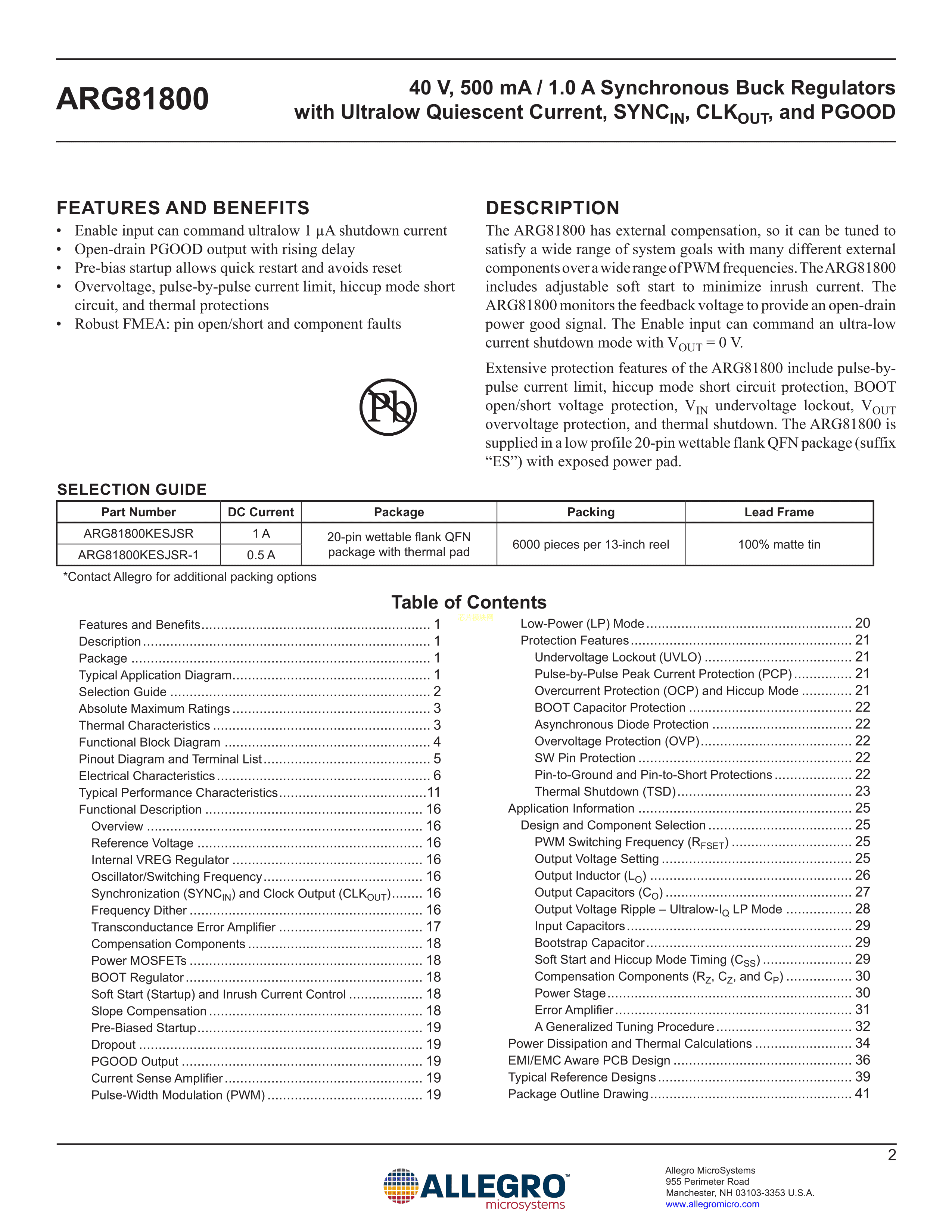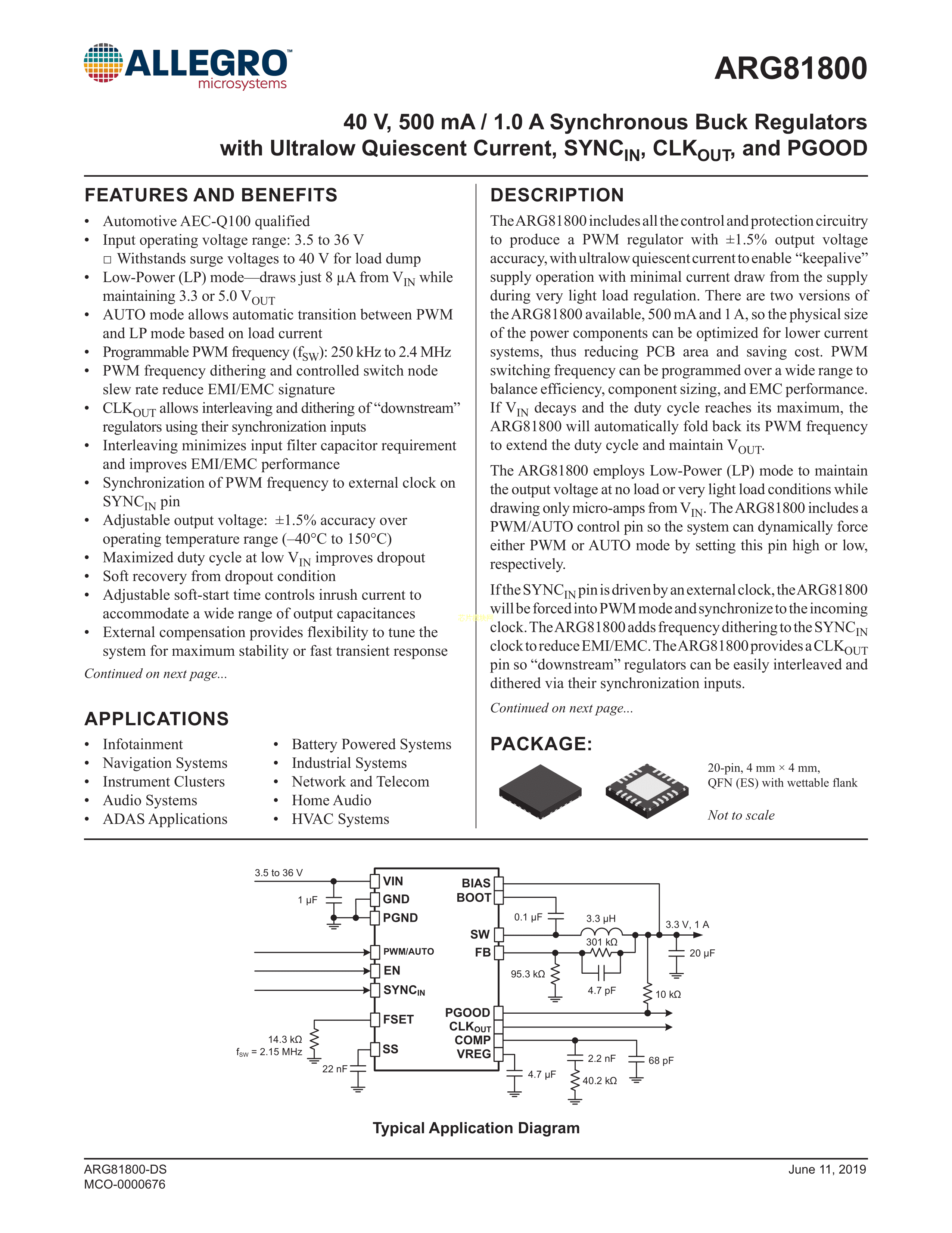 ARG81800KESJSR数据手册QFN-20(4x4)封装ALLEGRO(美国埃戈罗)PDF规格书,中英文下载