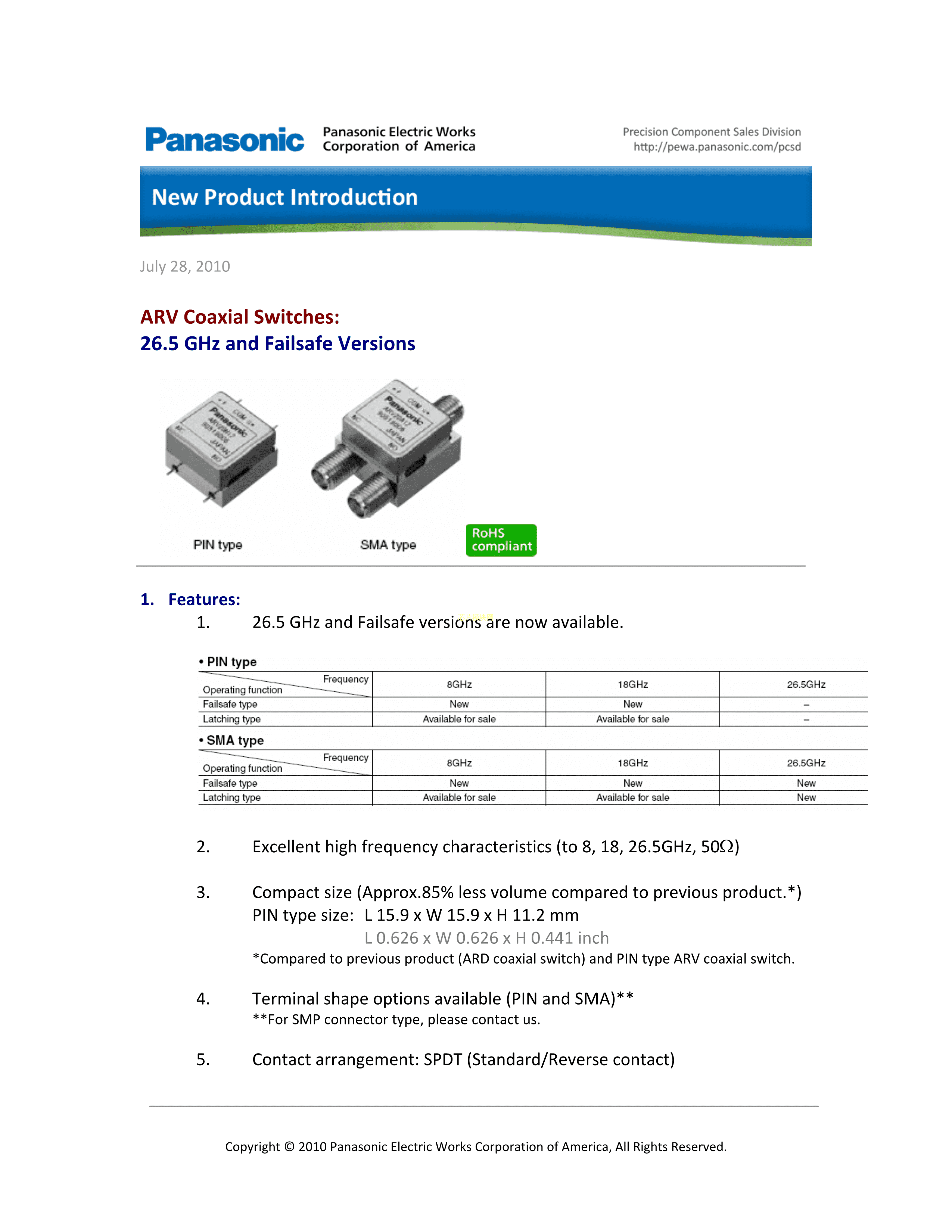 ARV10A12数据手册Module封装PANASONIC(松下)PDF规格书,中英文下载