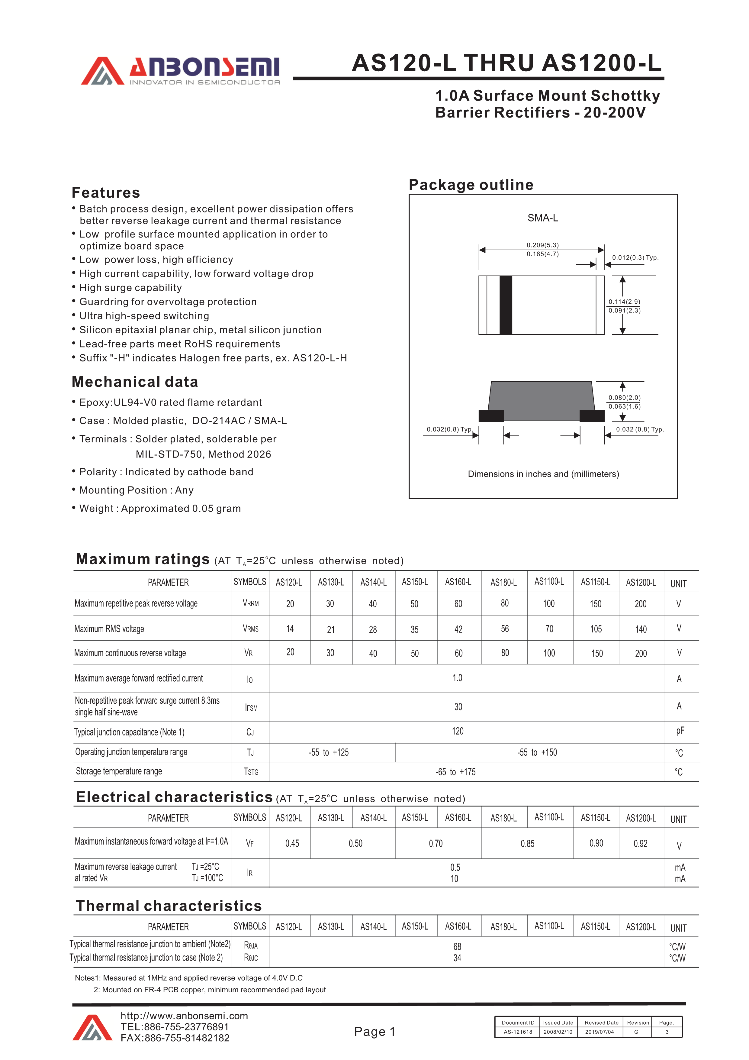 AS160-L数据手册SMA-L封装AnBon(台湾安邦)PDF规格书,中英文下载
