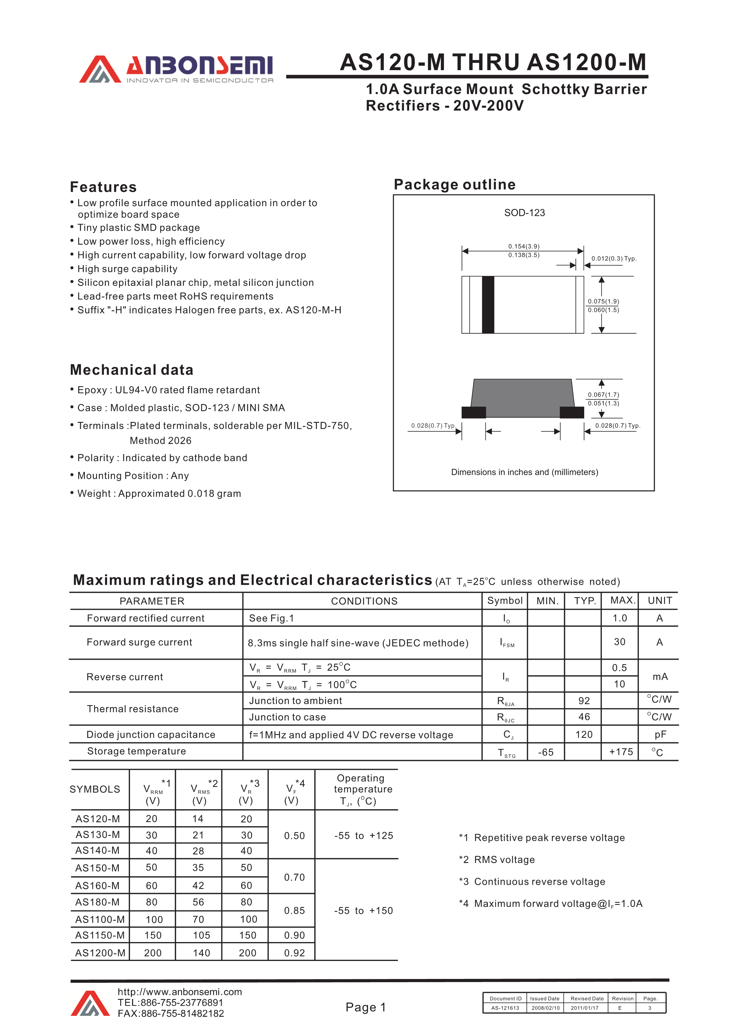 AS160-M数据手册SOD-123封装AnBon(台湾安邦)PDF规格书,中英文下载