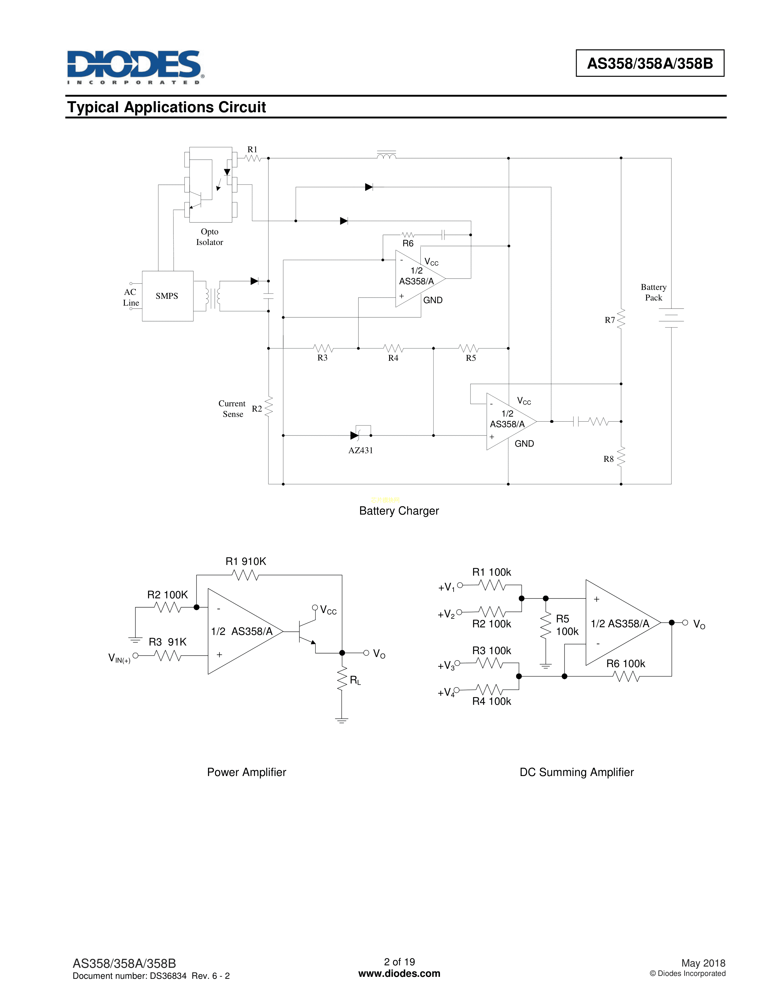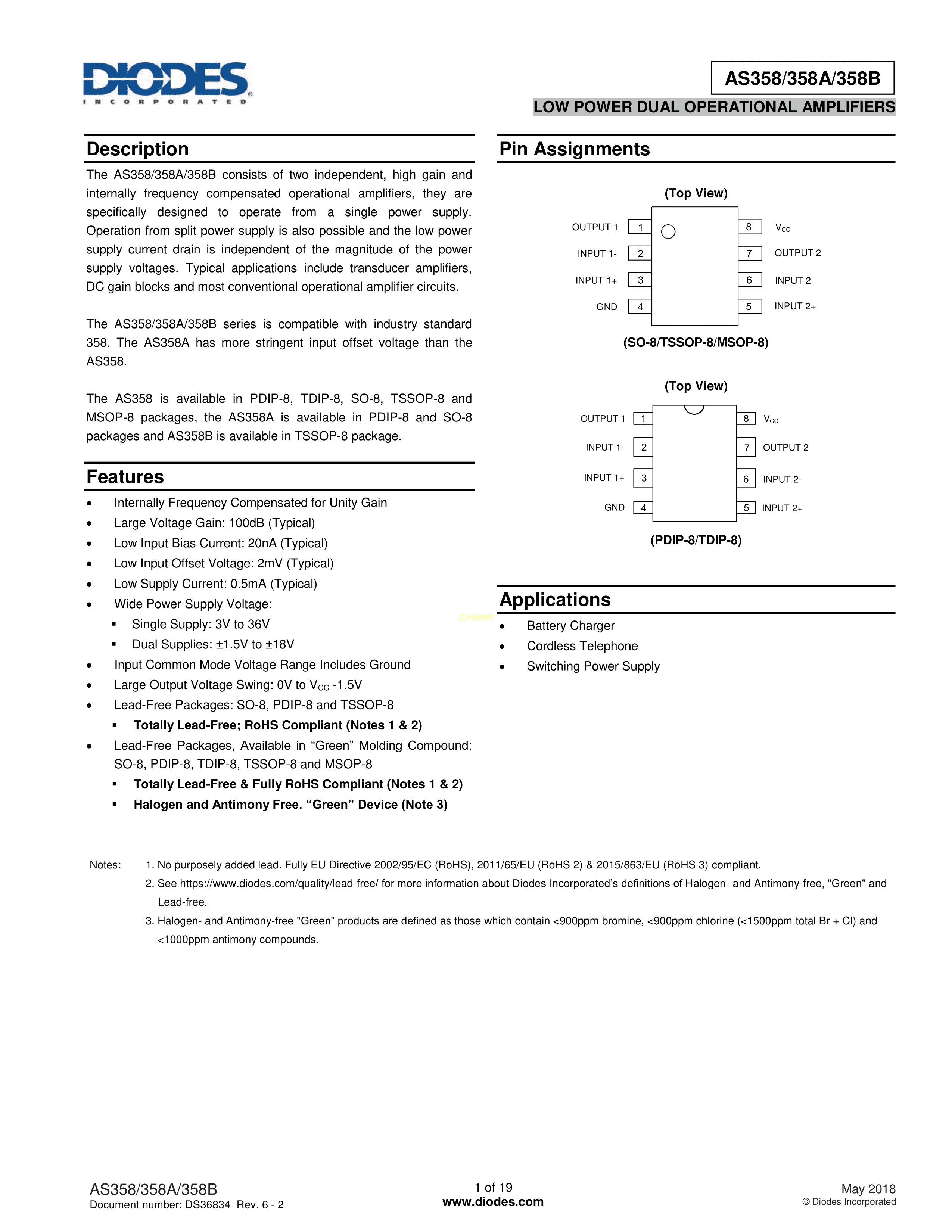 AS358P-E1数据手册DIP-8封装DIODES(美台)PDF规格书,中英文下载
