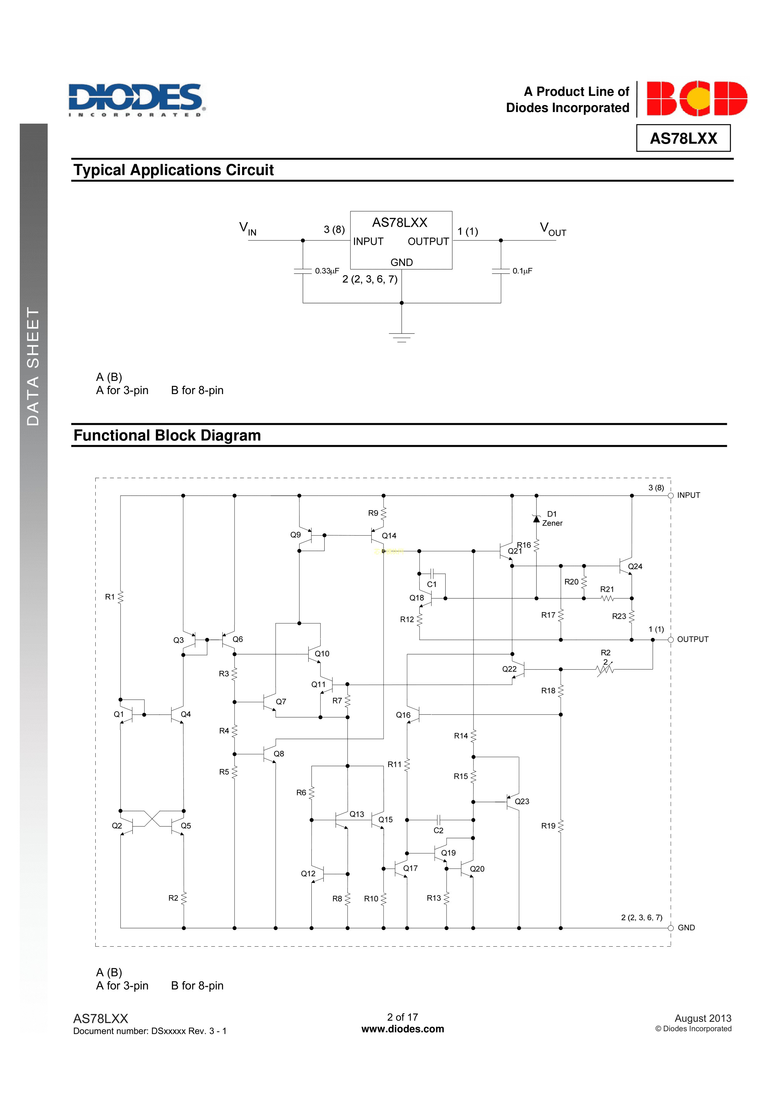 AS78L05Z-E1数据手册TO-92(TO-92-3)封装DIODES(美台)PDF规格书,中英