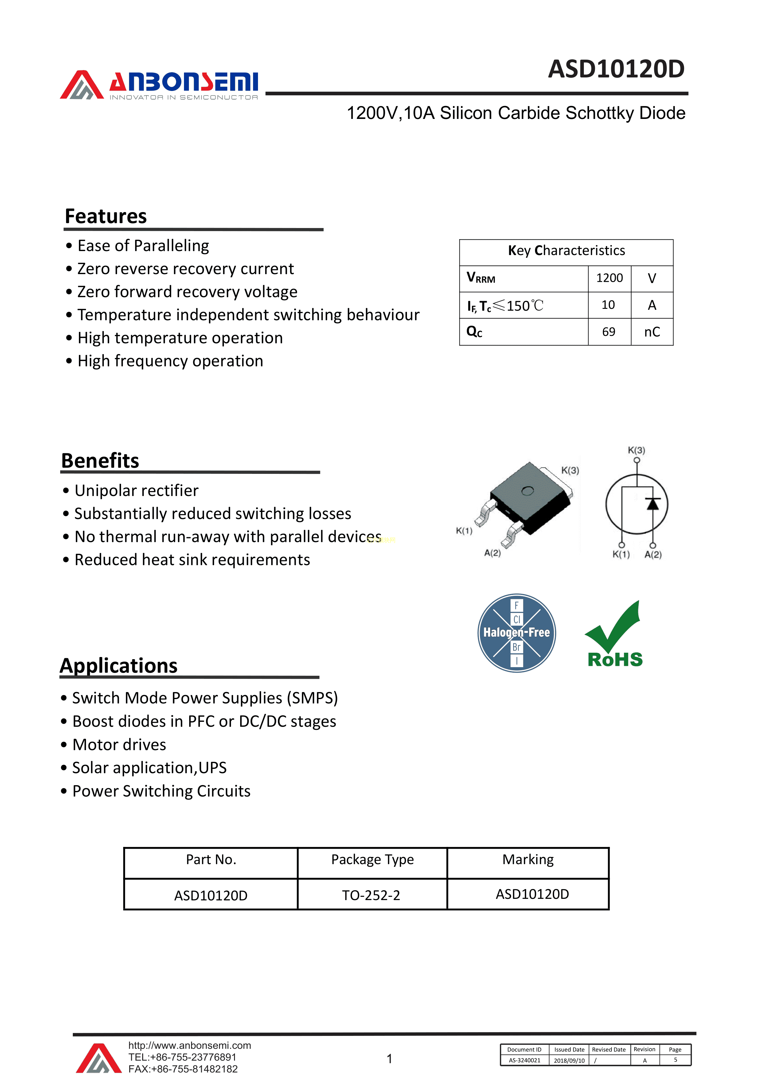 ASD10120D数据手册TO-252-2封装AnBon(台湾安邦)PDF规格书,中英文下载