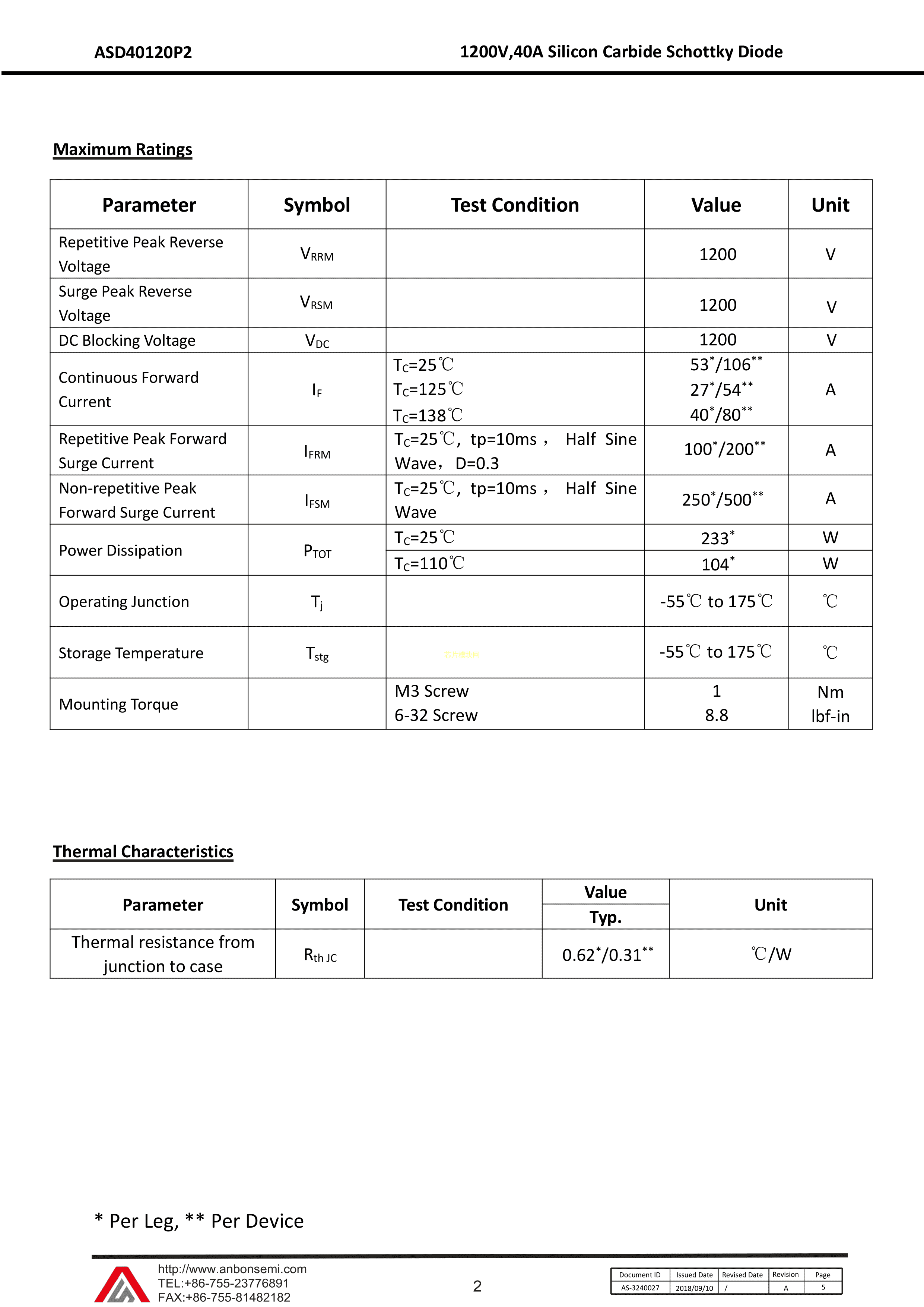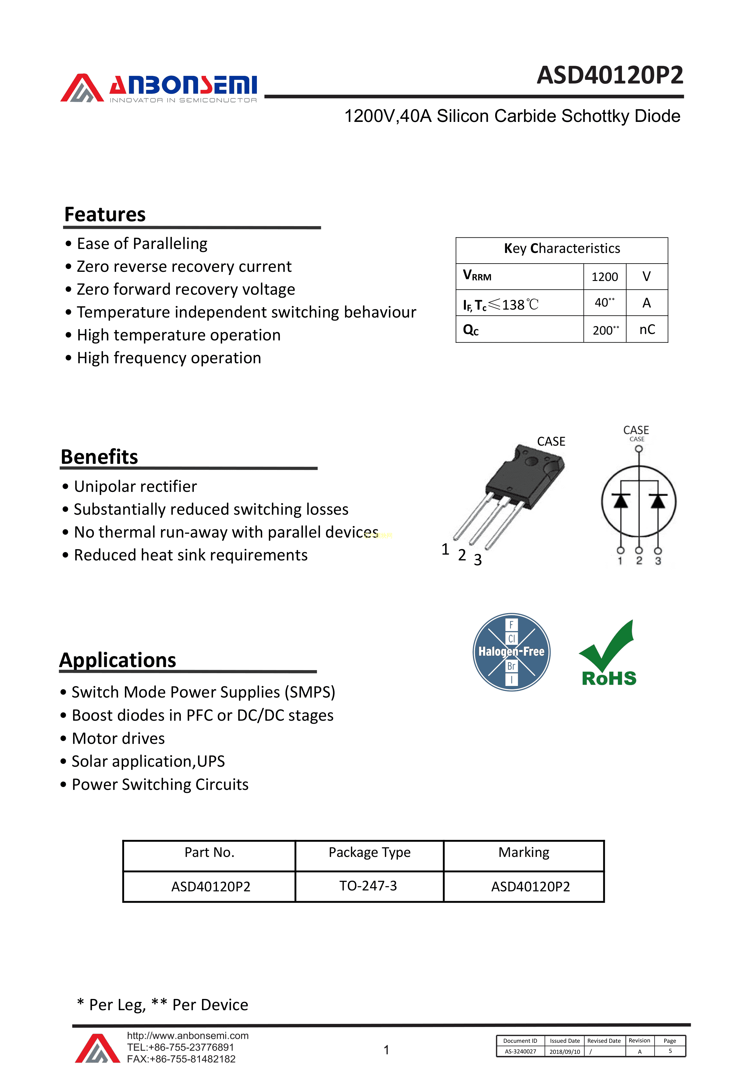 ASD40120P2数据手册TO-247-3封装AnBon(台湾安邦)PDF规格书,中英文下载