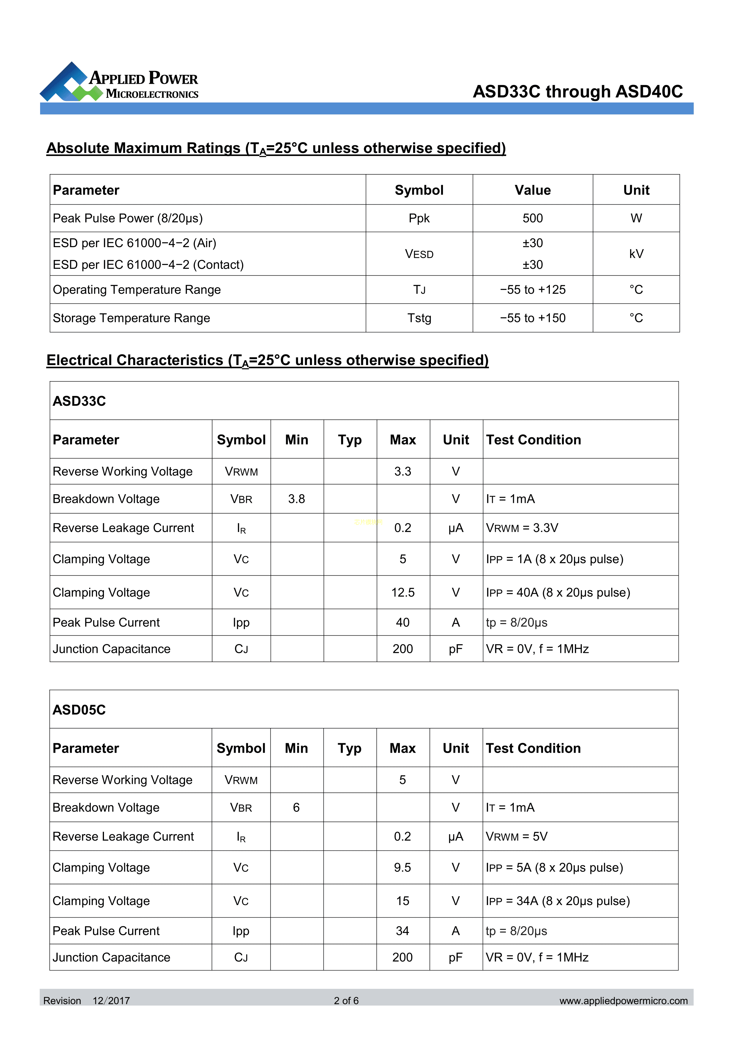 ASD40C数据手册SOD-323封装Applied Power(应能微)PDF规格书,中英文下载
