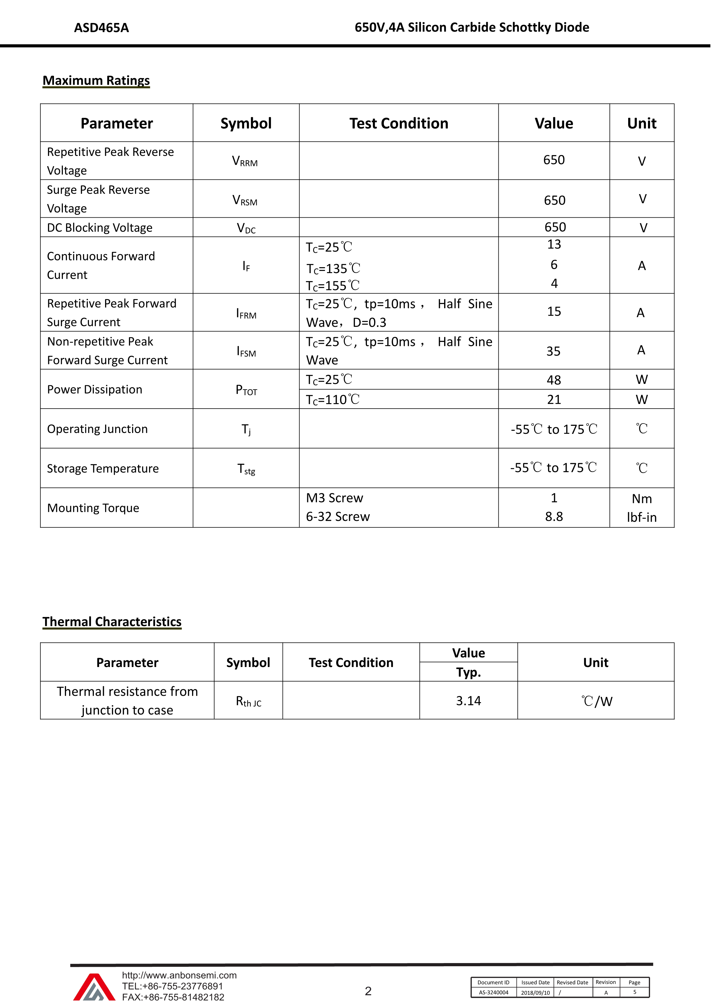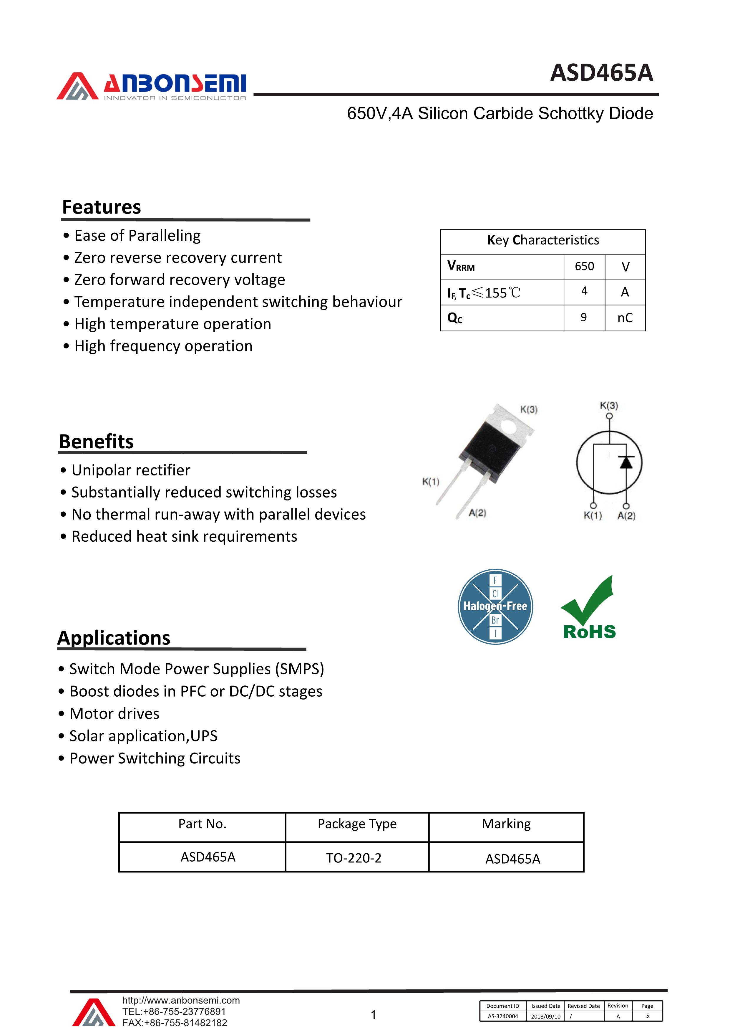 ASD465A数据手册TO-220-2封装AnBon(台湾安邦)PDF规格书,中英文下载