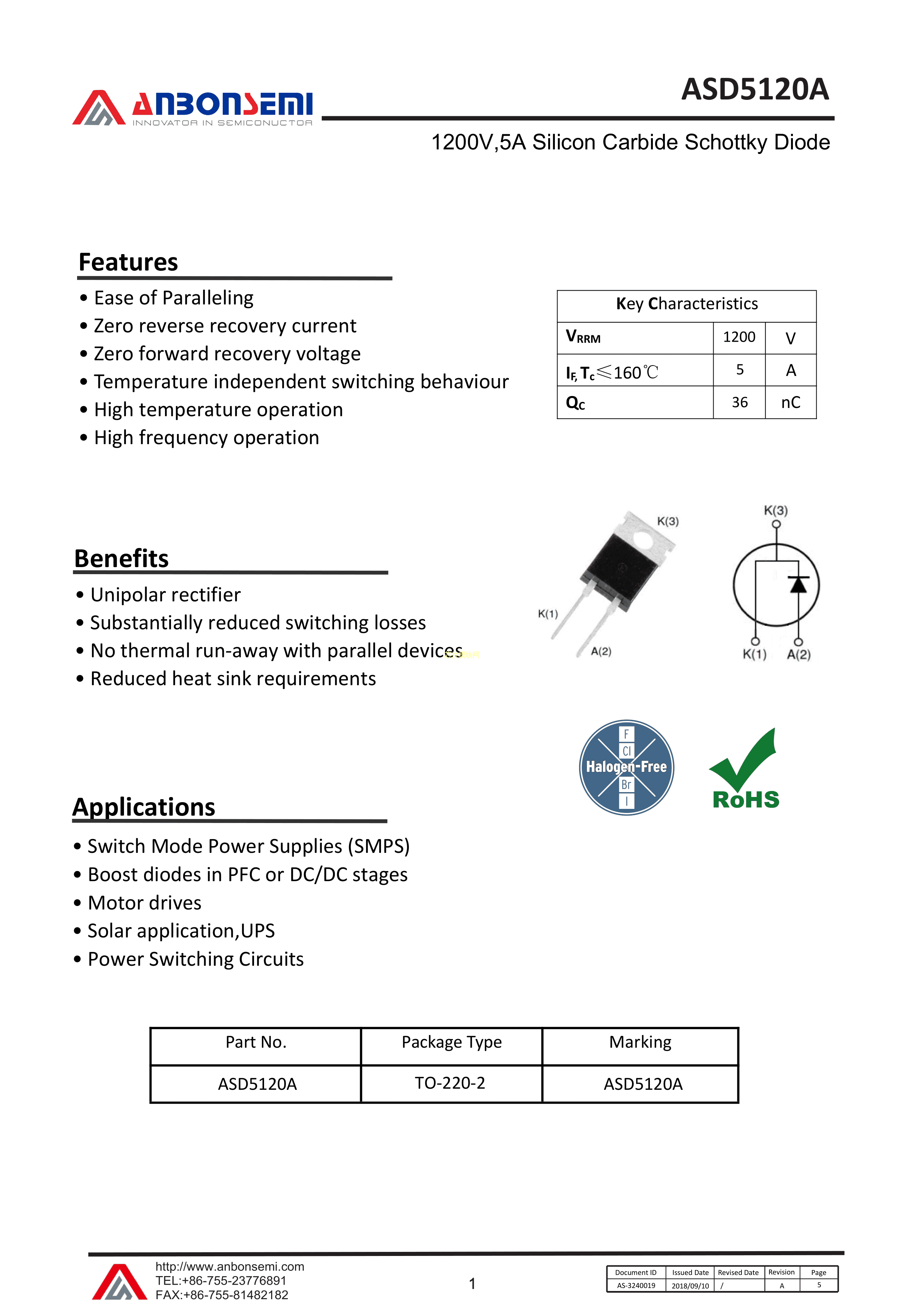 ASD5120A数据手册TO-220-2封装AnBon(台湾安邦)PDF规格书,中英文下载