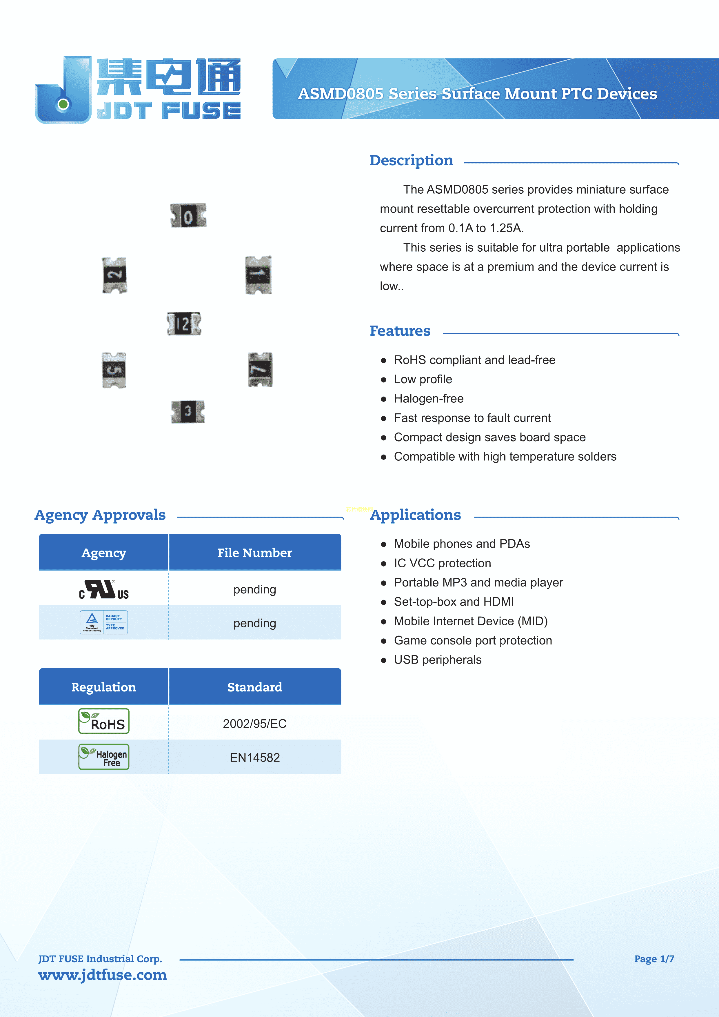 ASMD0805-035数据手册0805封装JDTfuse(集电通)PDF规格书,中英文下载