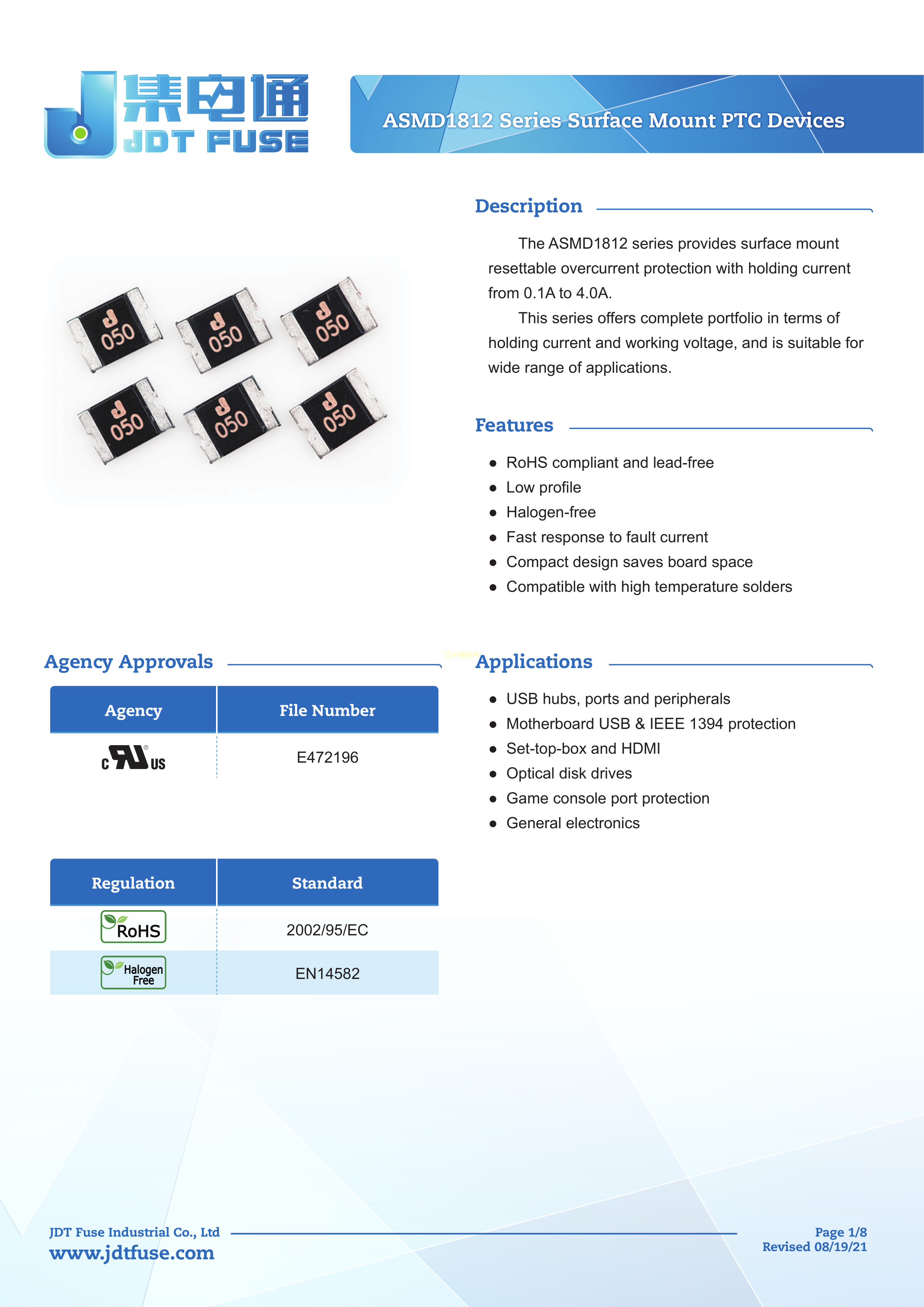 ASMD1812-110-33V数据手册1812封装JDTfuse(集电通)PDF规格书,中英文下载