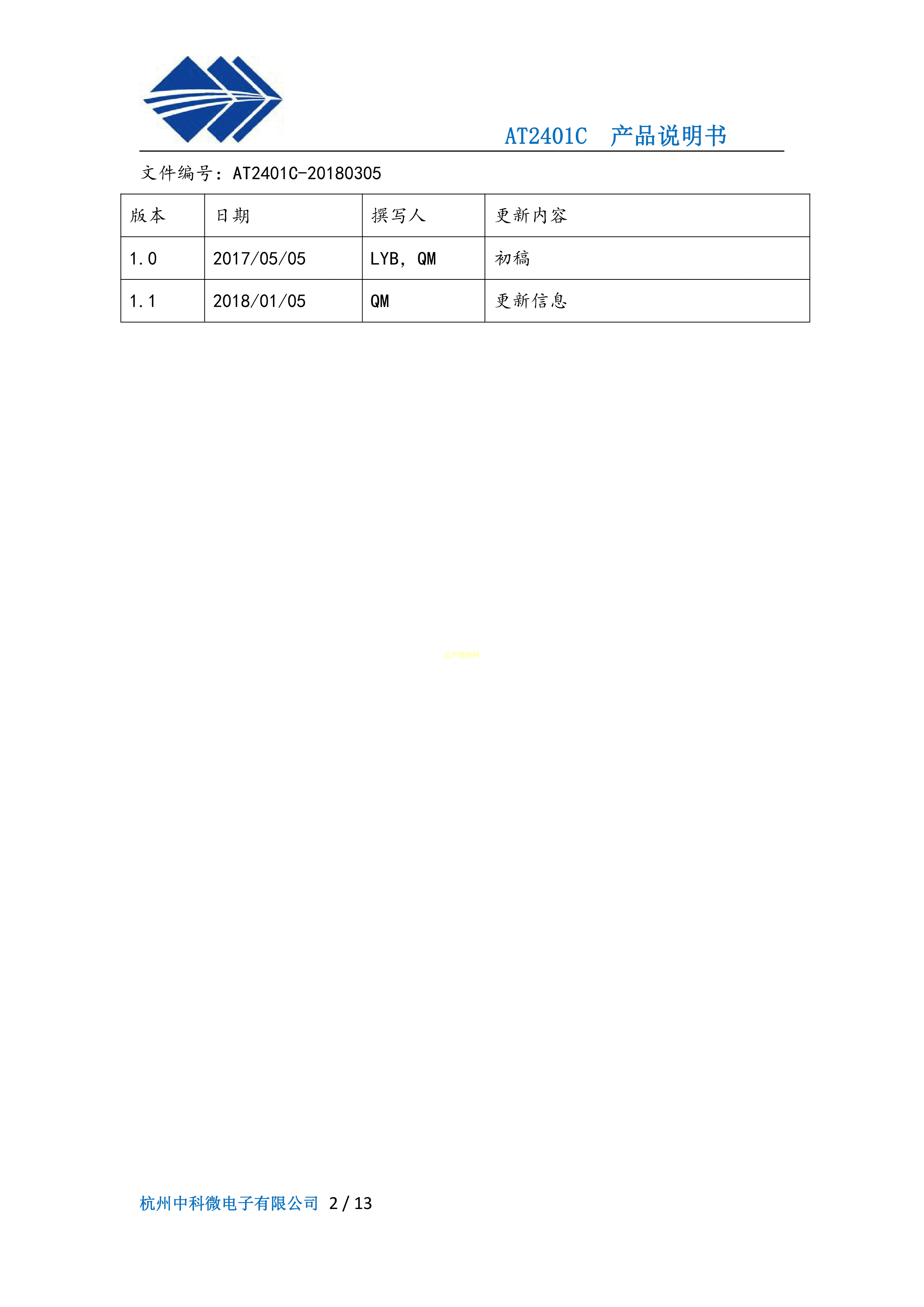 AT2401C数据手册QFN封装杭州中科微.pdf