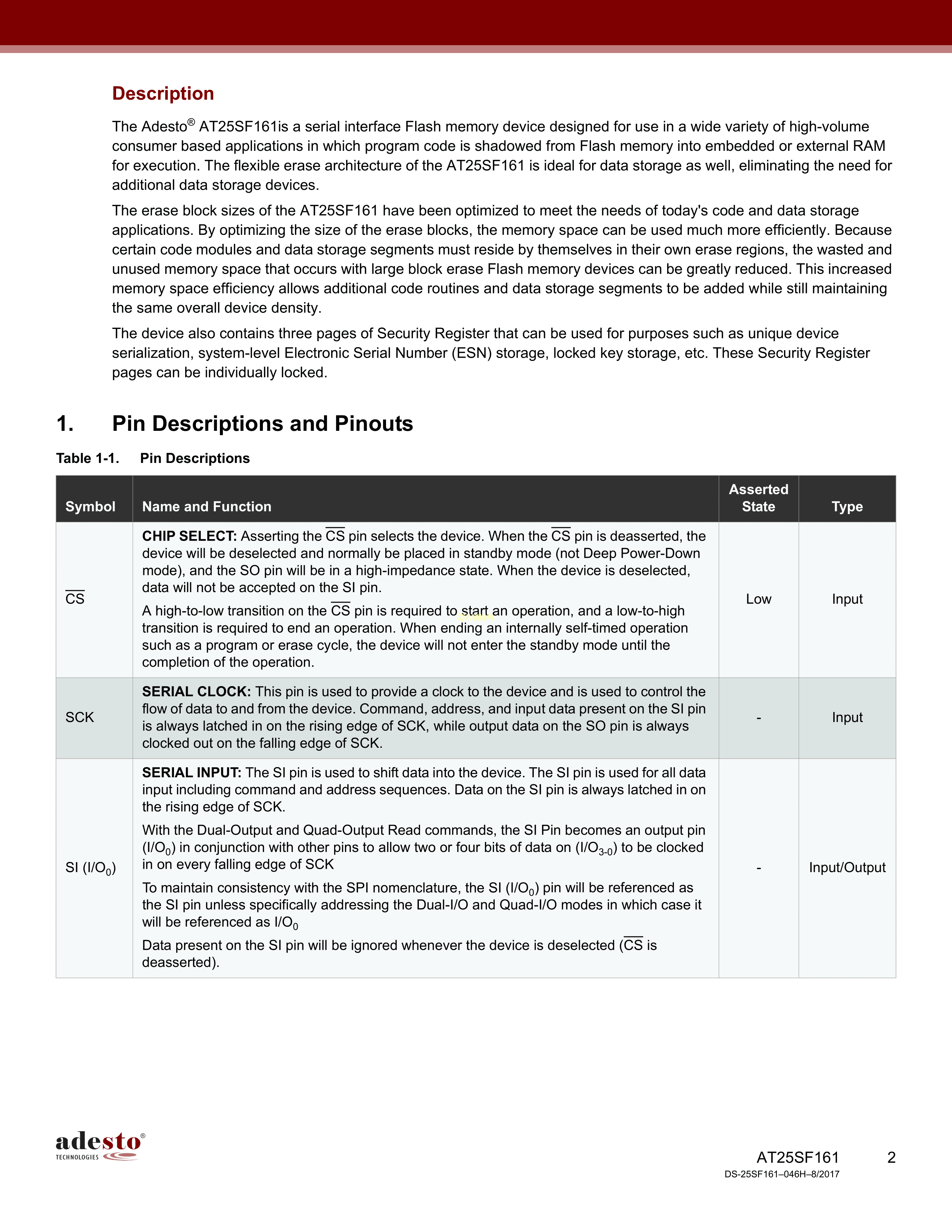 AT25SF161-SHD-B数据手册SOIC-8封装AdestoPDF规格书,中英文下载