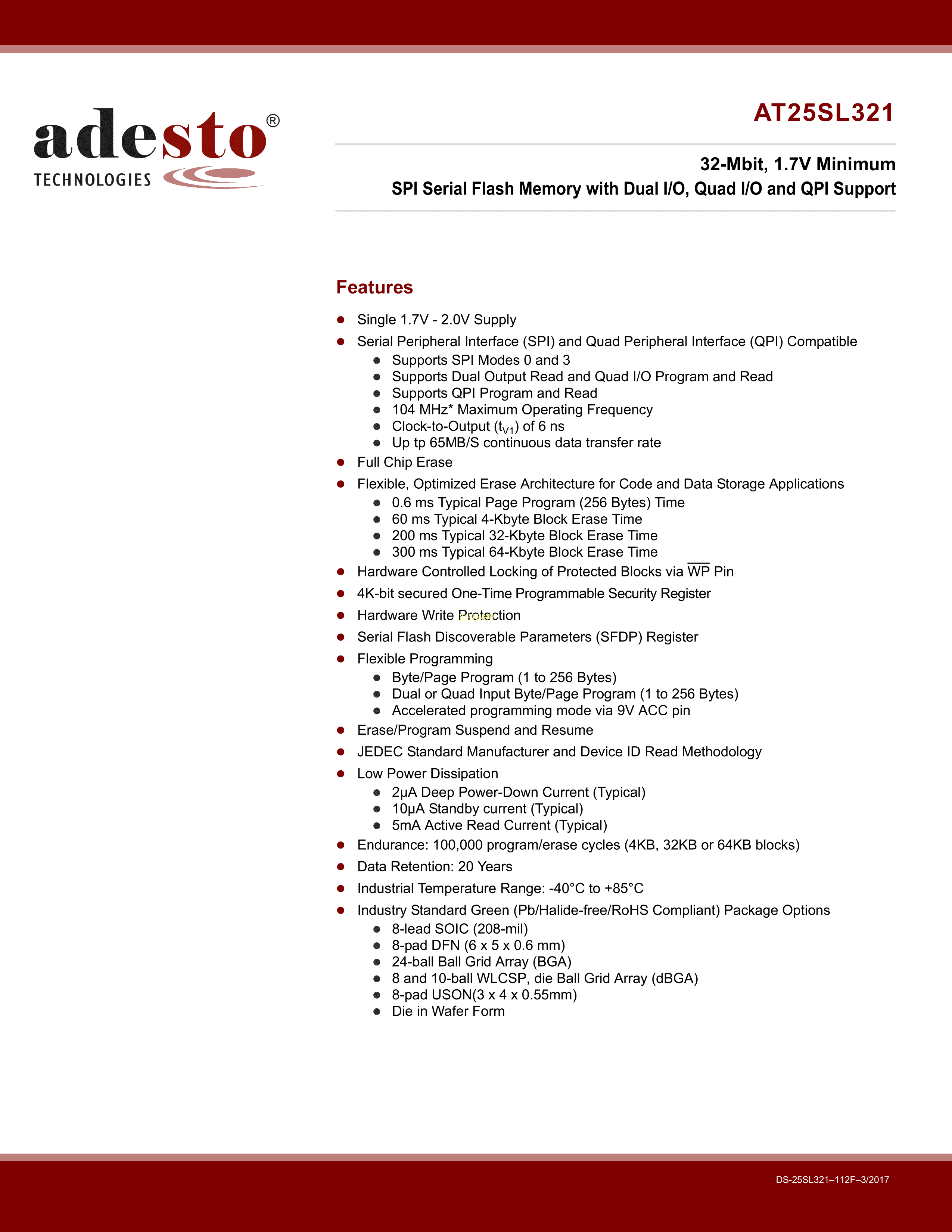 AT25SL321-SSHE-T数据手册SOIC-8封装AdestoPDF规格书,中英文下载