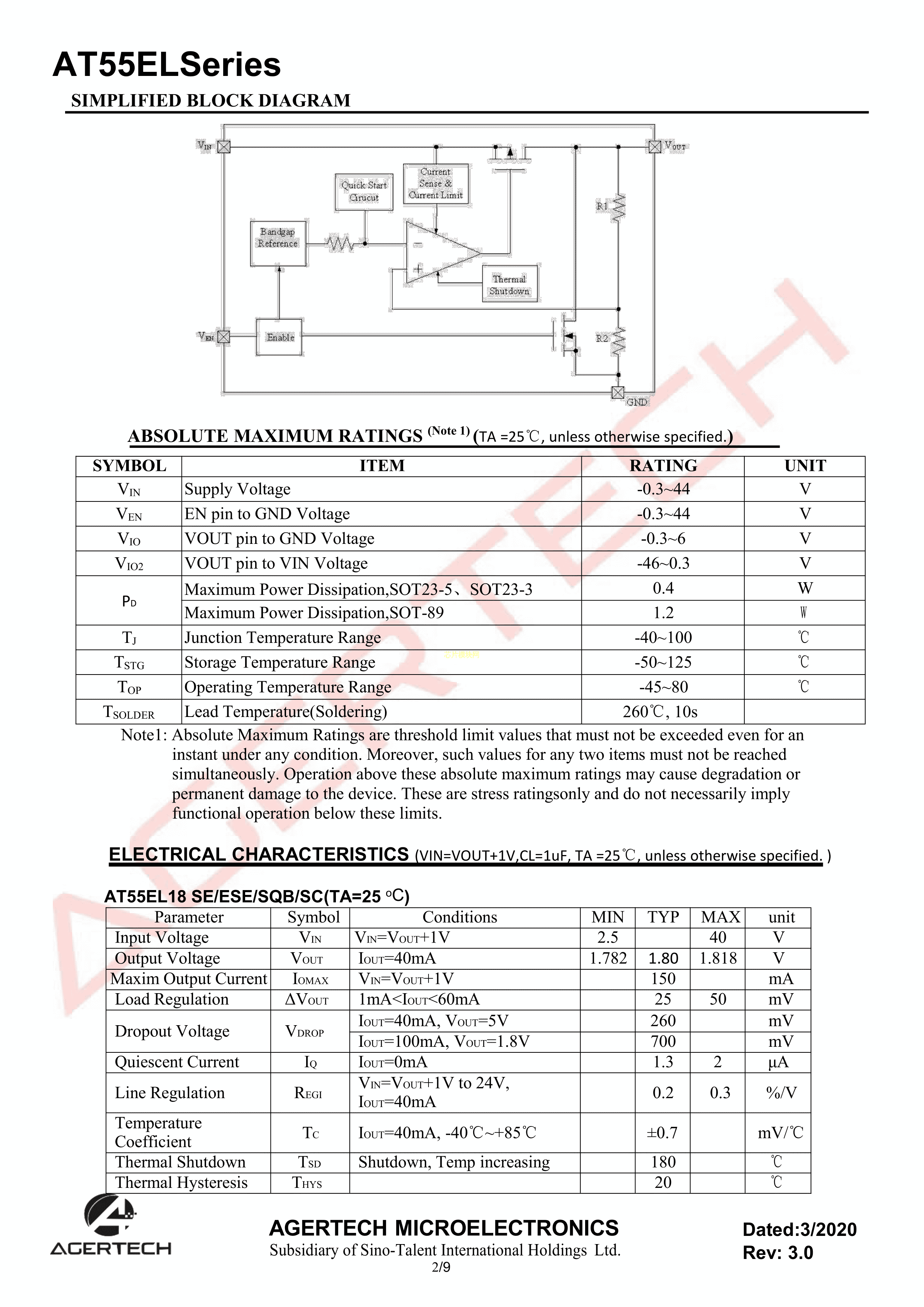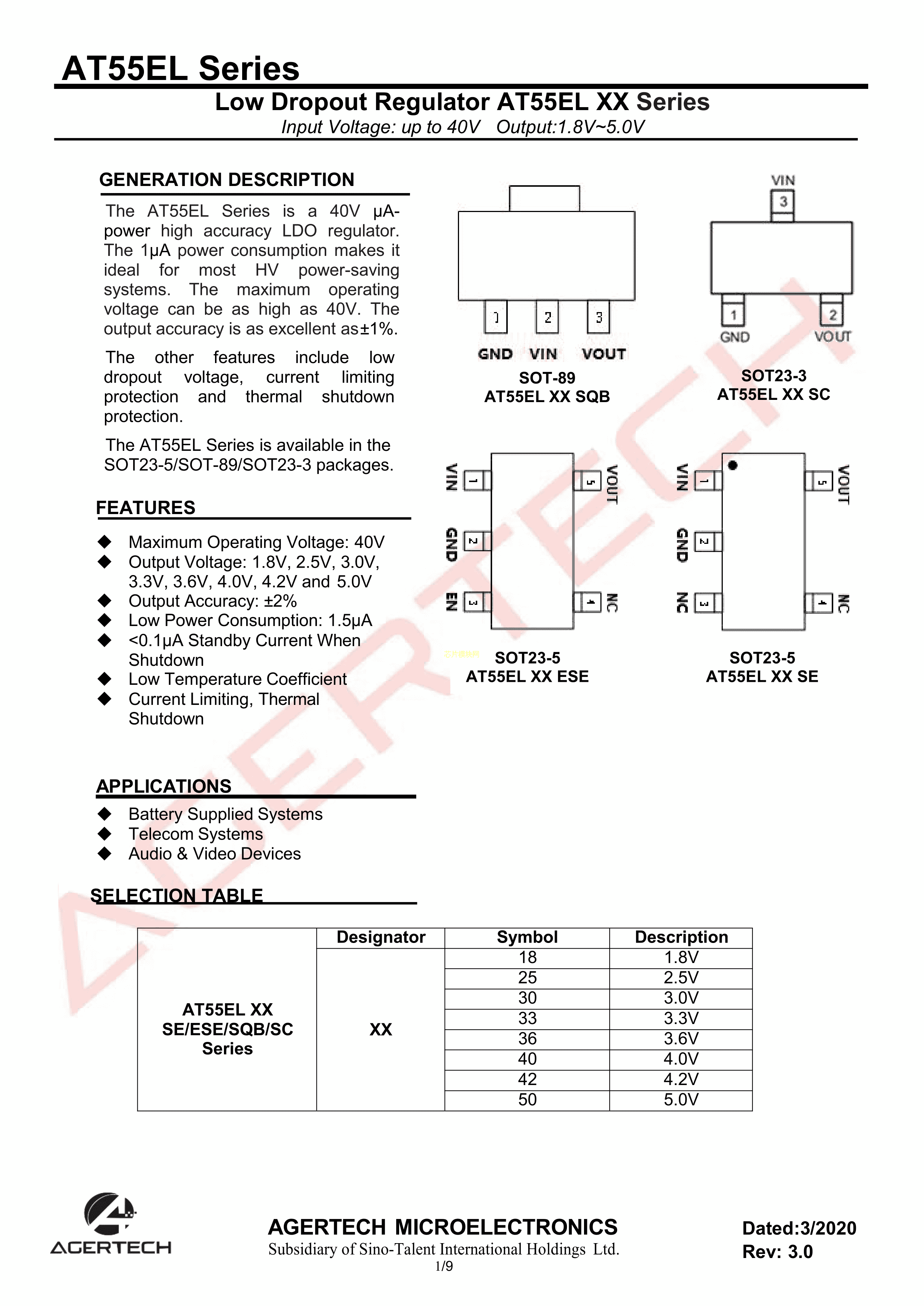 AT55EL33SE数据手册SOT-23-5封装Agertech(艾吉芯)PDF规格书,中英文下载