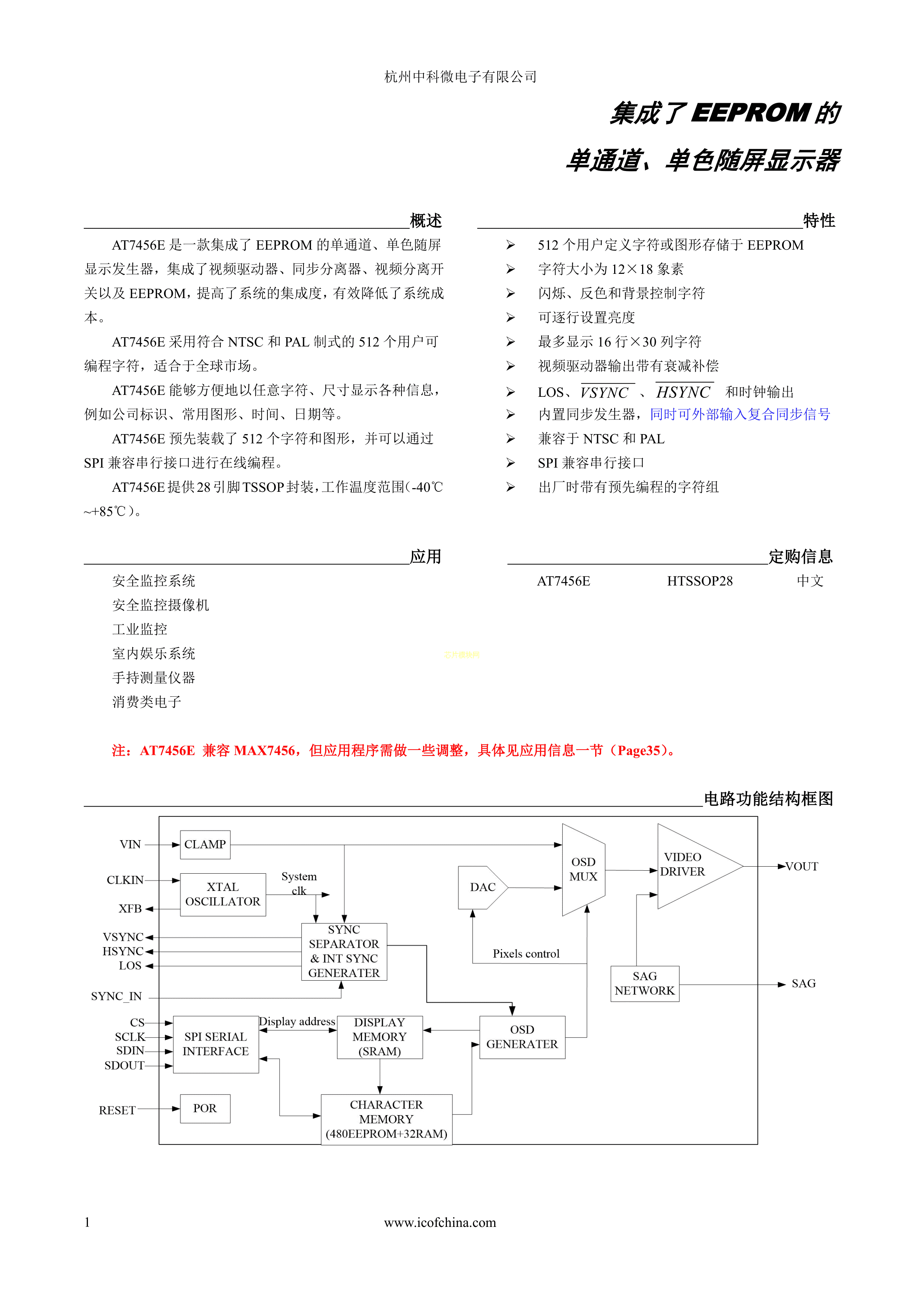 AT7456E数据手册TSSOP-28封装杭州中科微PDF规格书,中英文下载