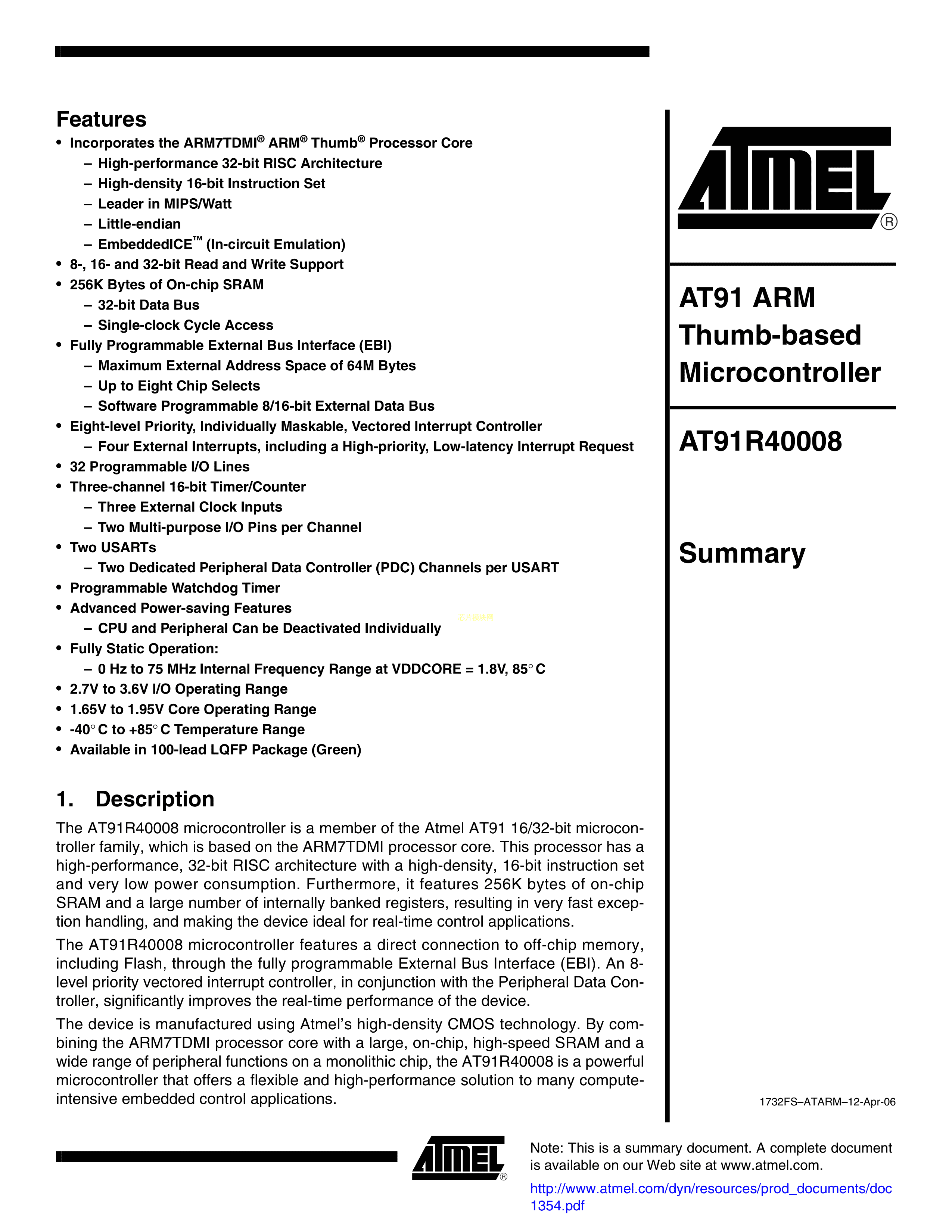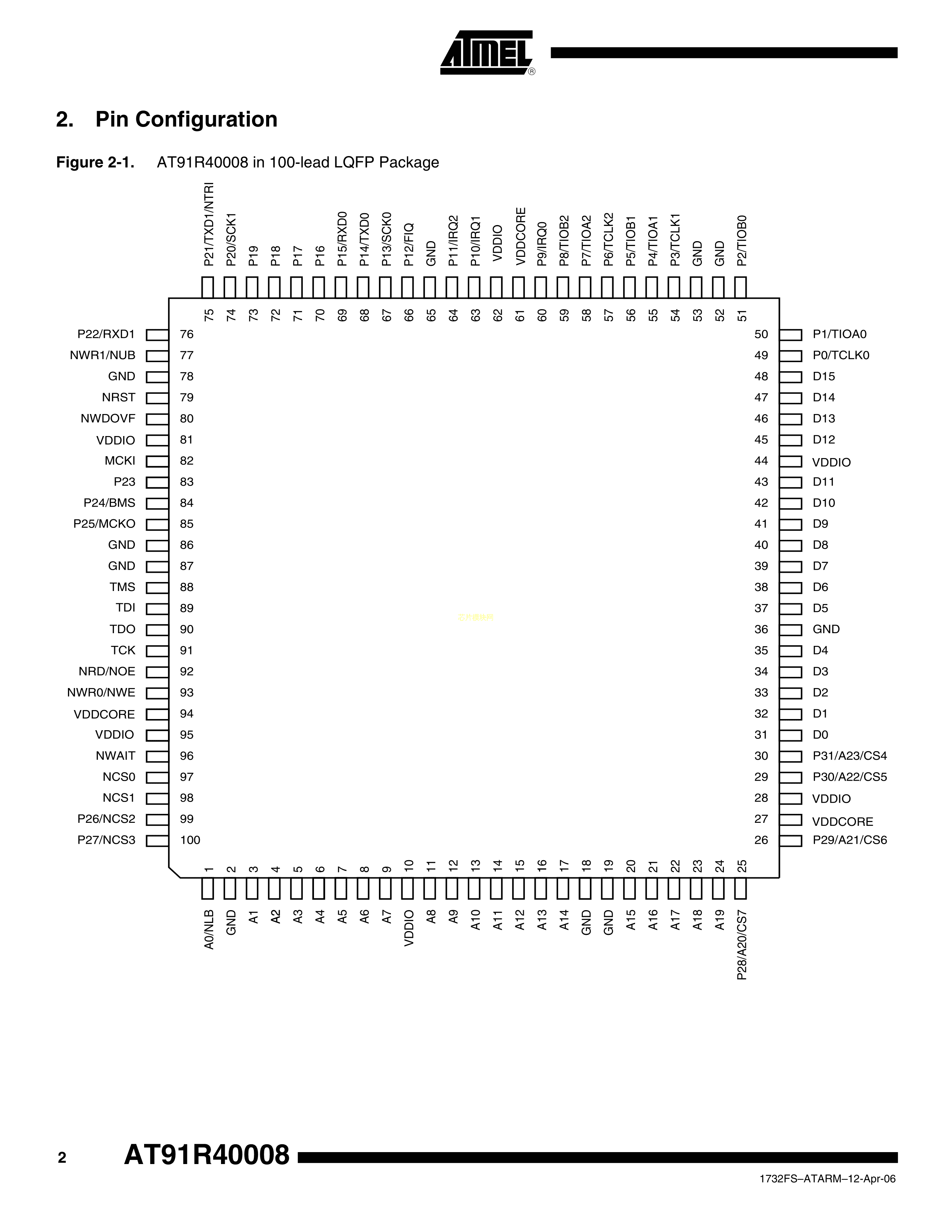 AT91R40008-66AU数据手册LQFP-100封装MICROCHIP(美国微芯)PDF规格书