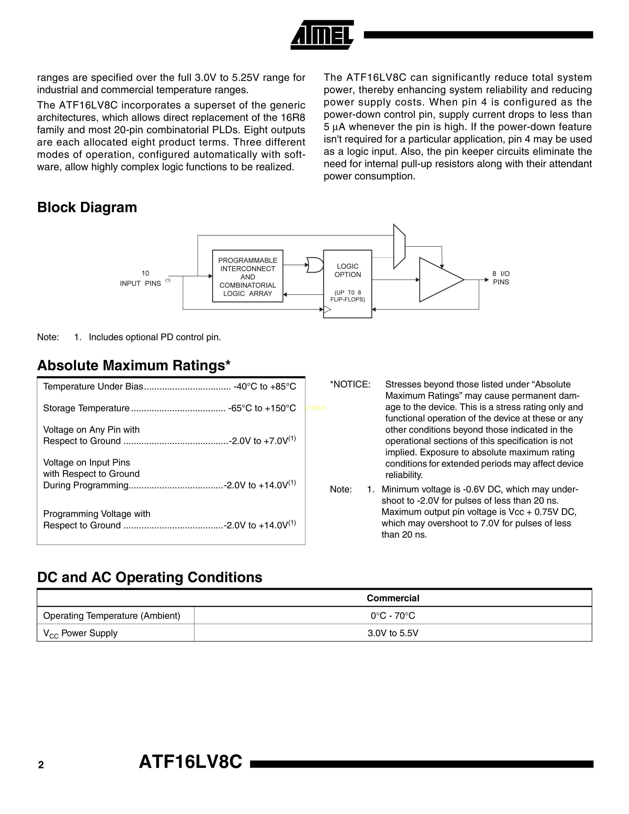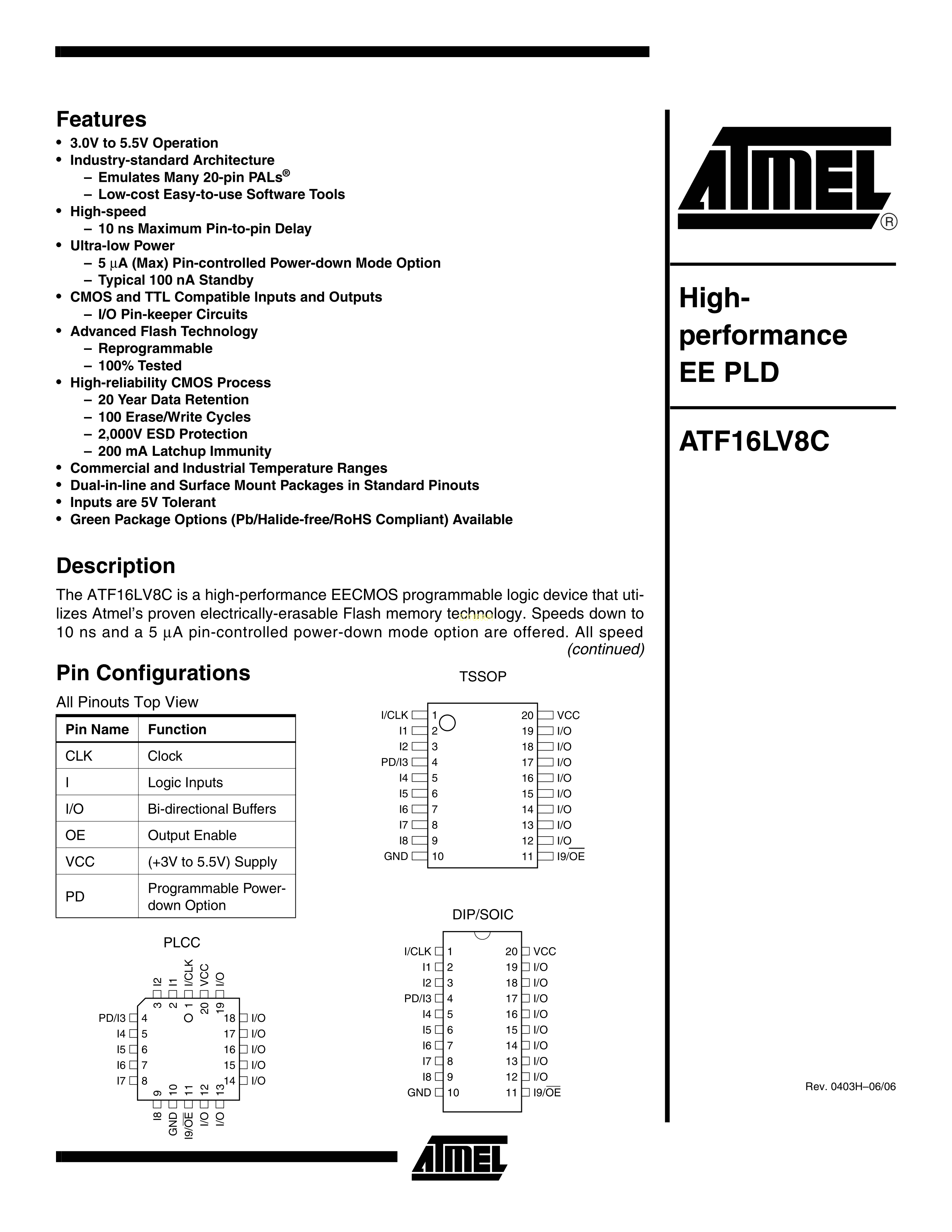 ATF16LV8C-10XU数据手册TSSOP-20封装MICROCHIP(美国微芯)PDF规格书,