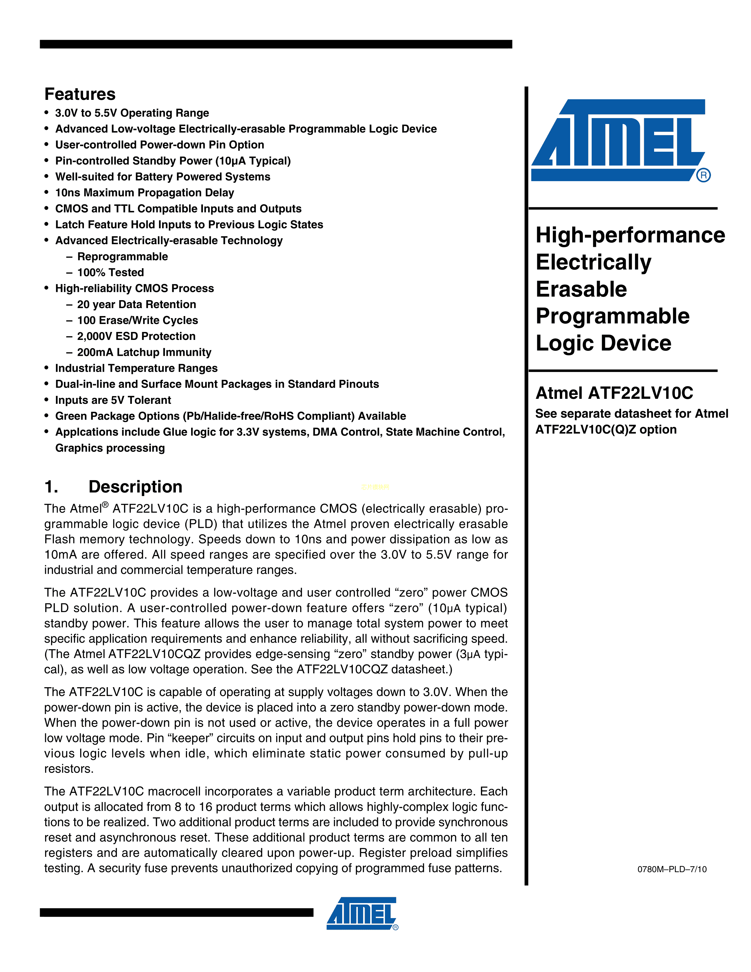 ATF22LV10C-10XU数据手册TSSOP-24封装MICROCHIP(美国微芯)PDF规格书