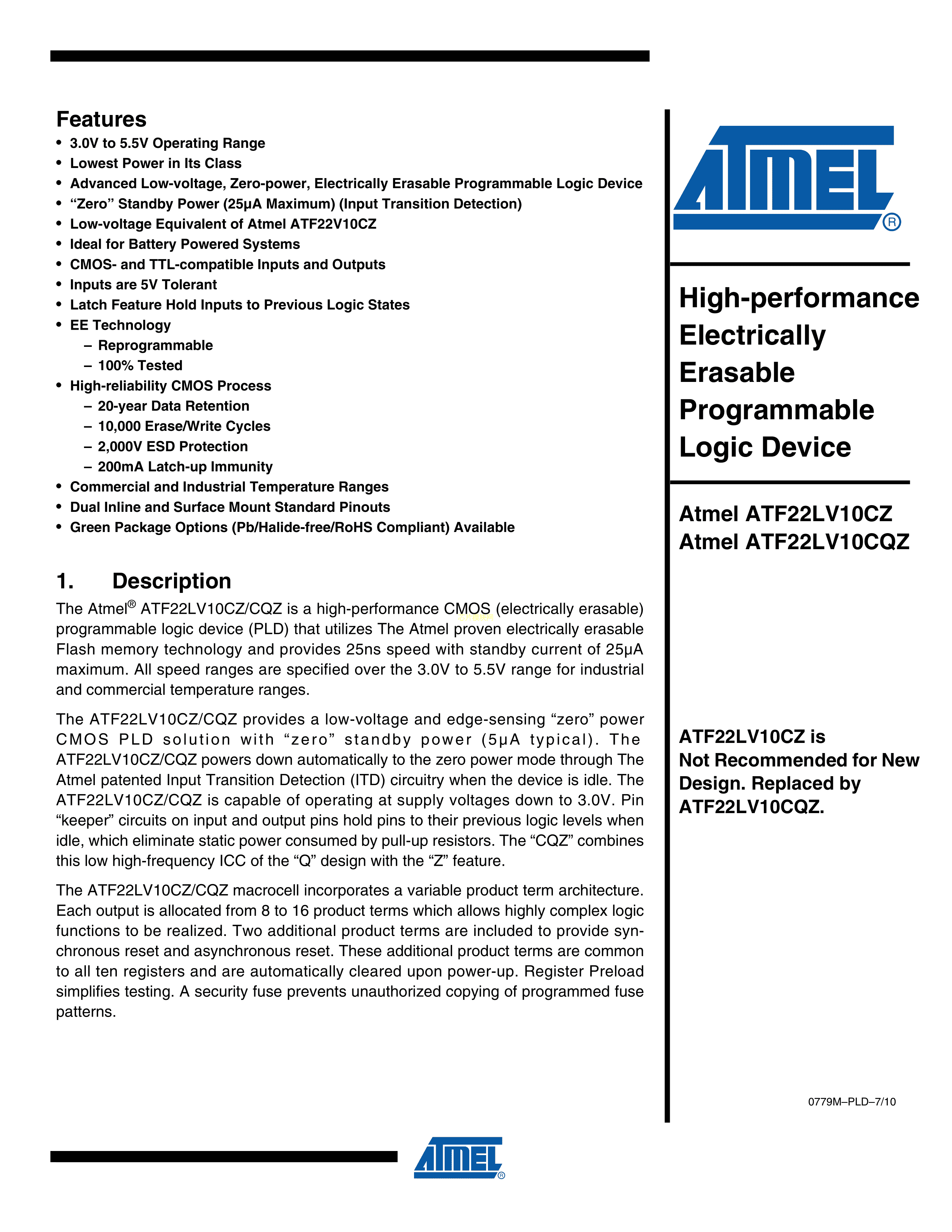 ATF22LV10CQZ-30PU数据手册PDIP-24封装MICROCHIP(美国微芯)PDF规格