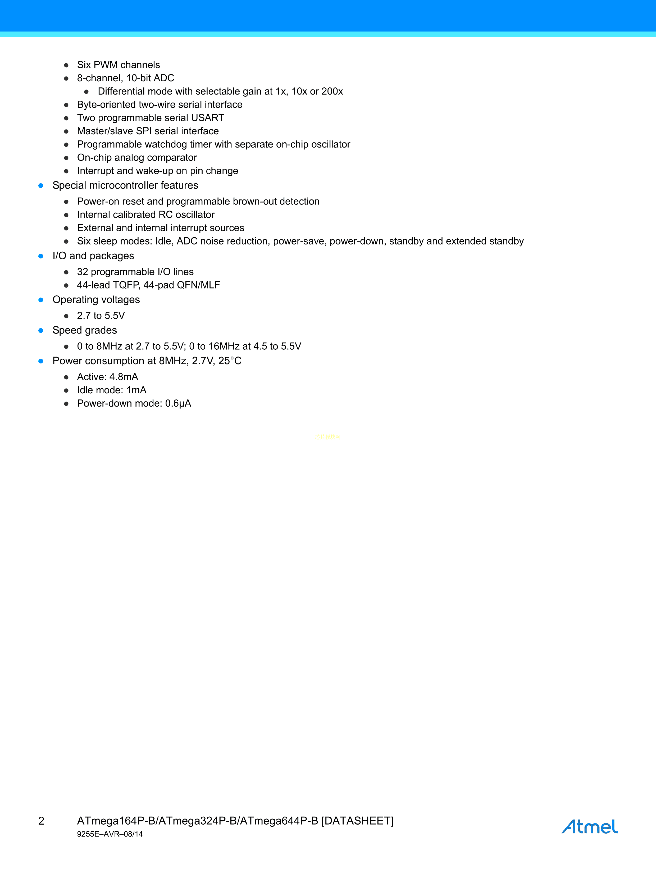 ATMEGA164P-B15MZ数据手册VQFN-44(7x7)封装MICROCHIP(美国微芯)PDF规格书,中英文下载