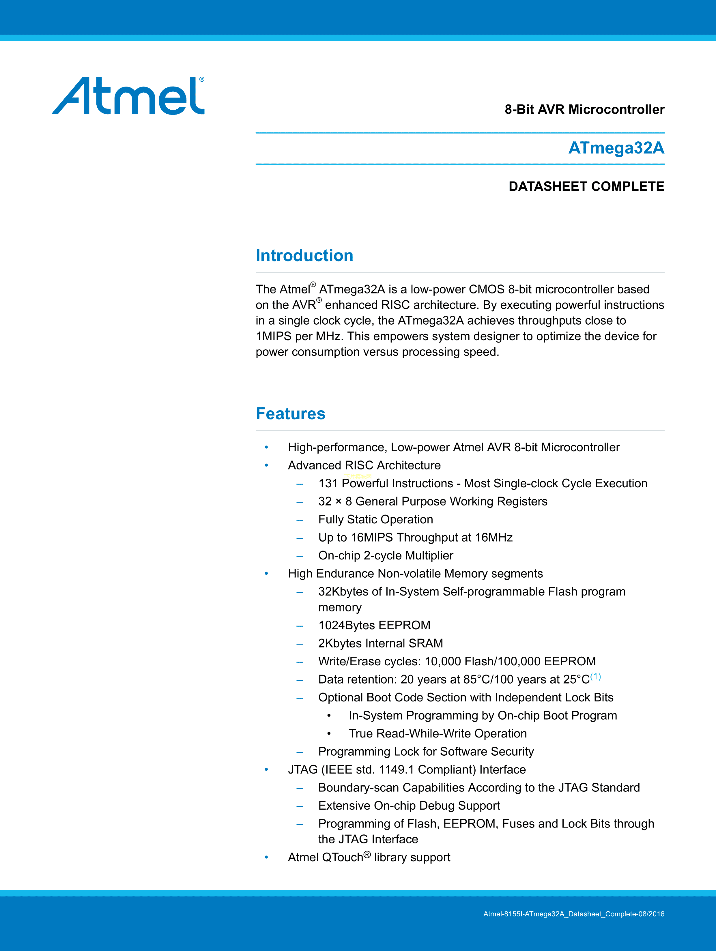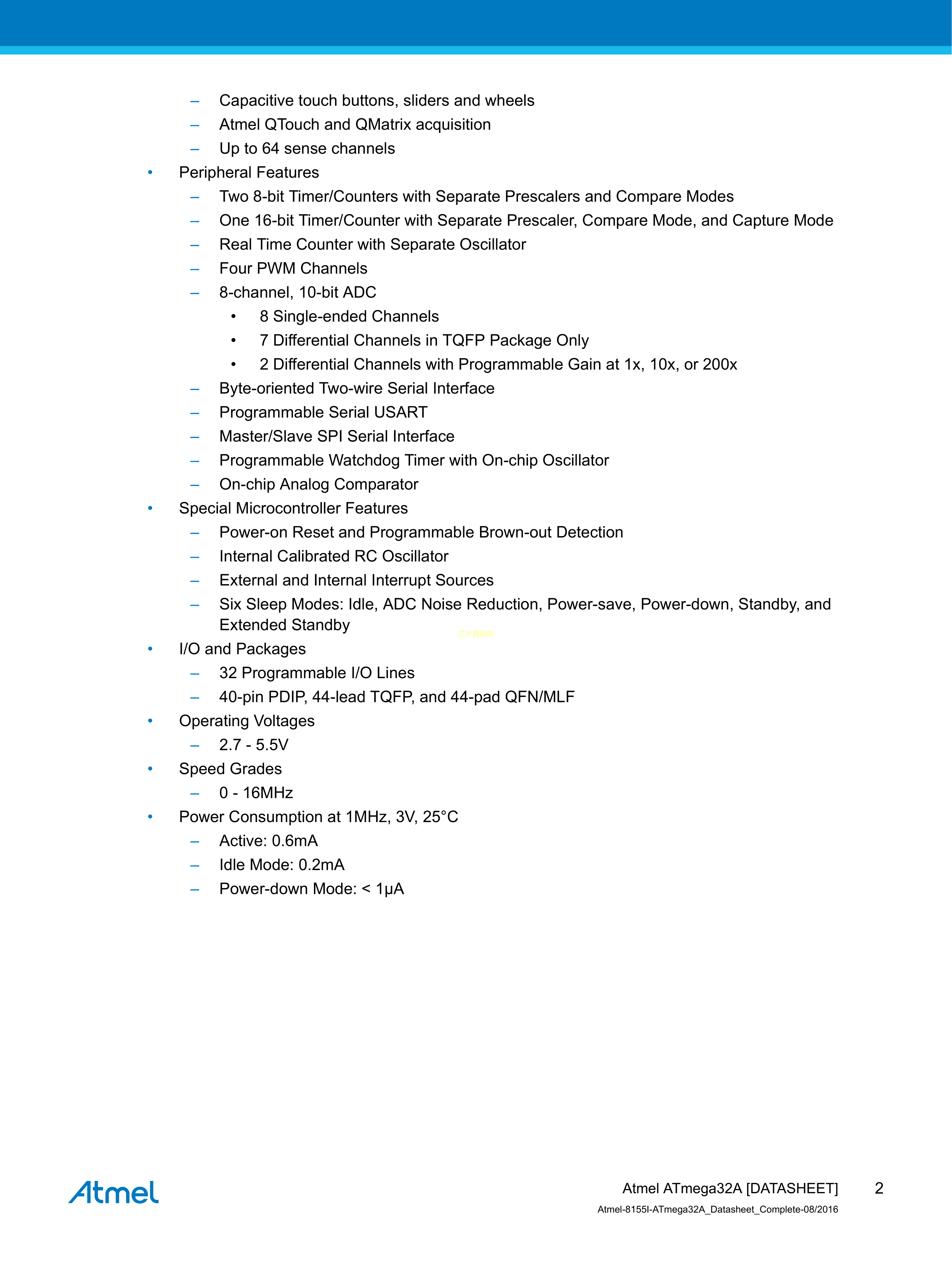 ATMEGA32A-AUR数据手册TQFP-44_10x10x08P封装MICROCHIP(美国微芯