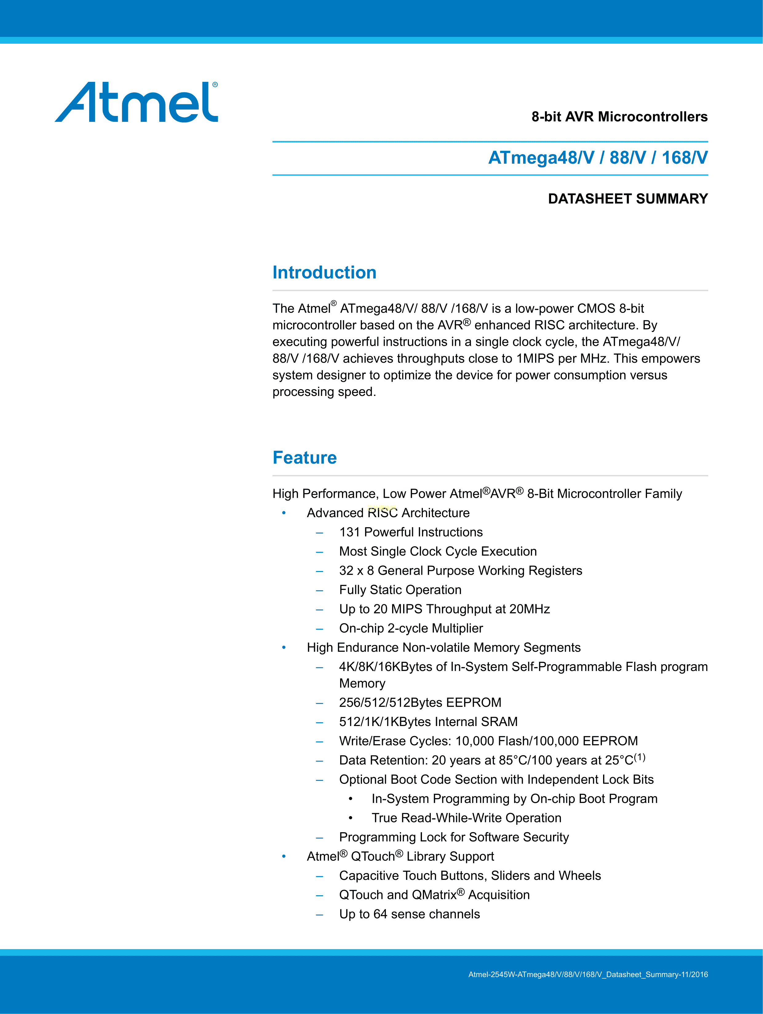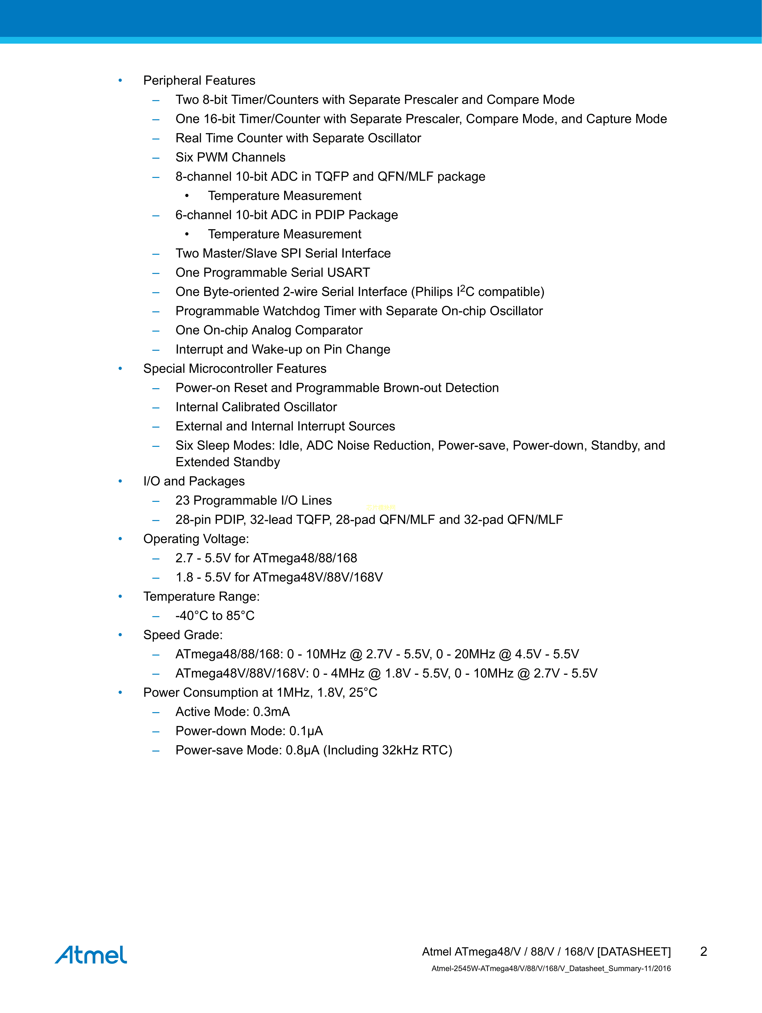 ATMEGA48V-10MMUR数据手册VQFN-28(4x4)封装MICROCHIP(美国微芯)P