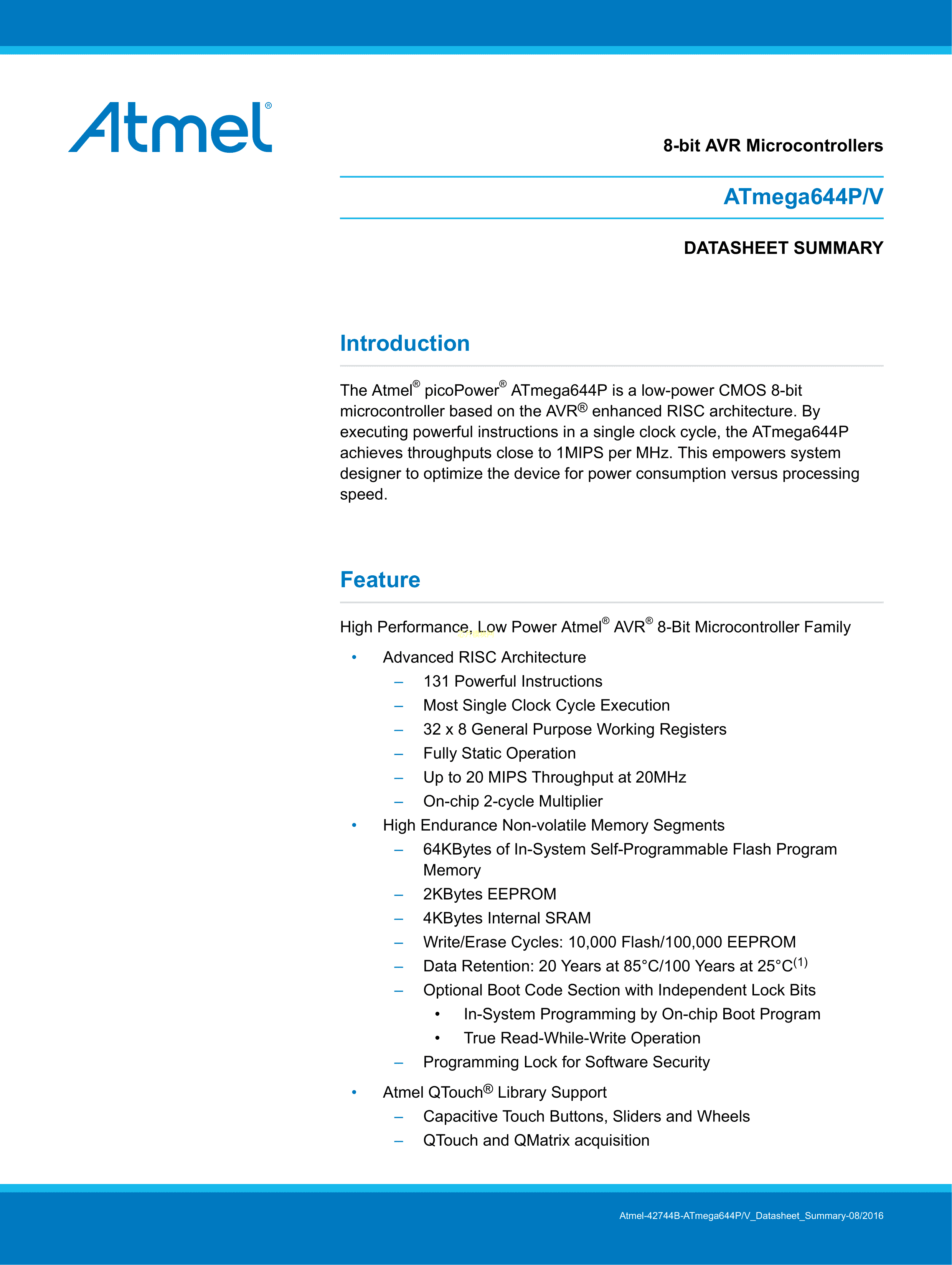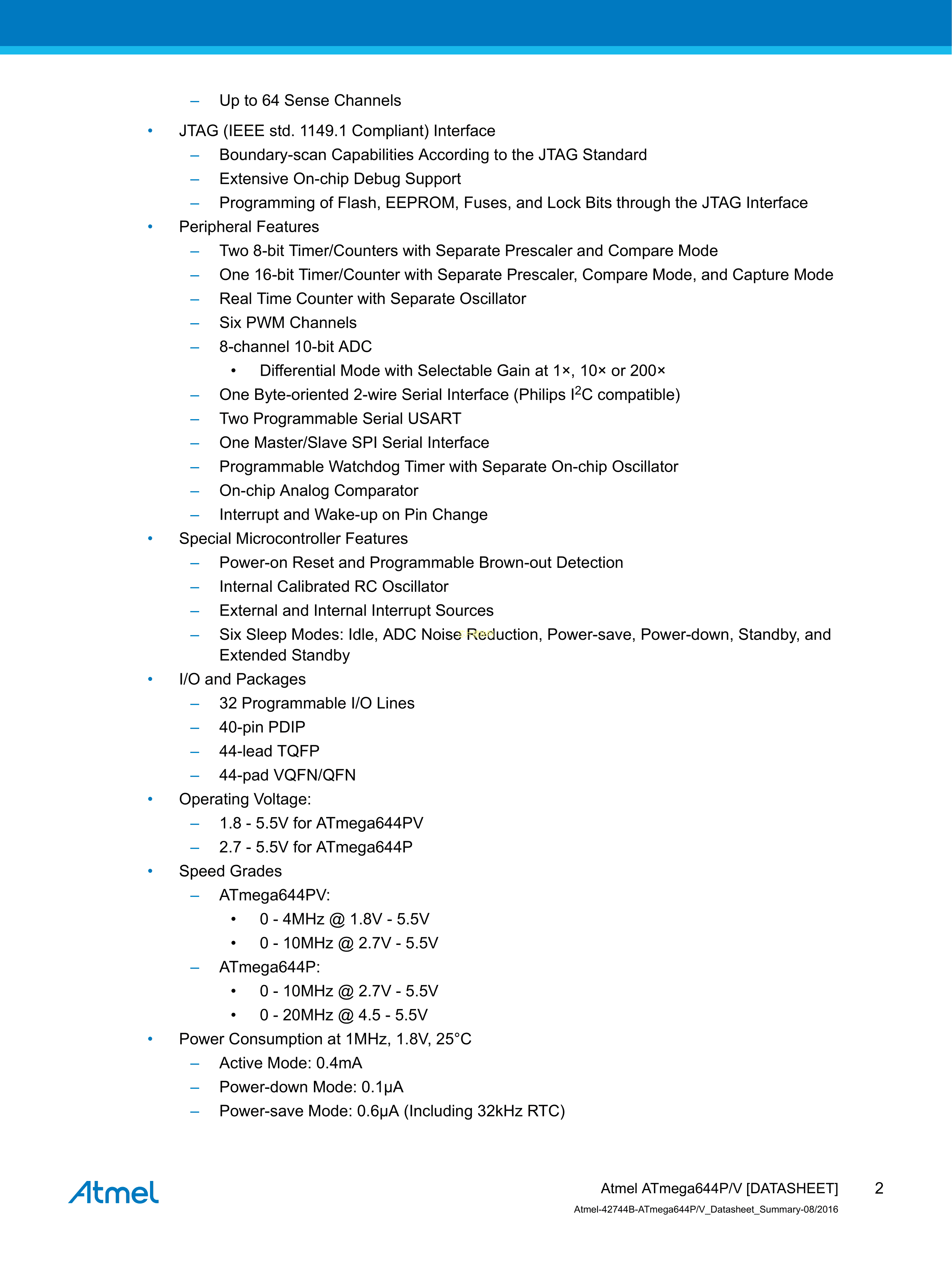 ATMEGA644P-20MQ数据手册VQFN-44(7x7)封装MICROCHIP(美国微芯)PD