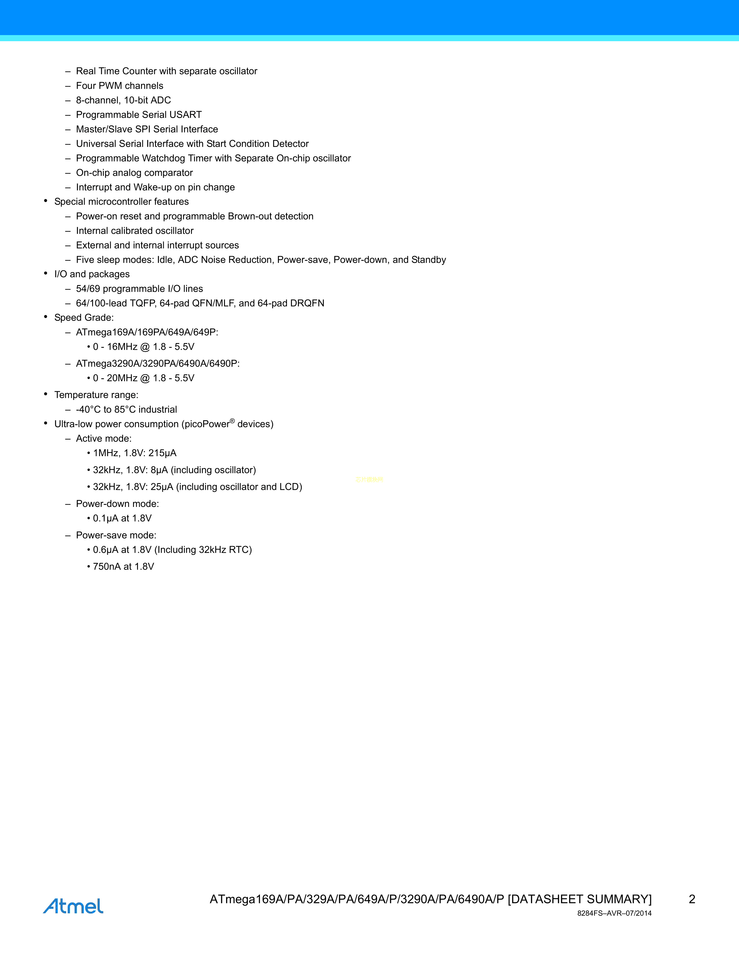 ATMEGA649P-AU数据手册TQFP-64(14x14)封装MICROCHIP(美国微芯)PD
