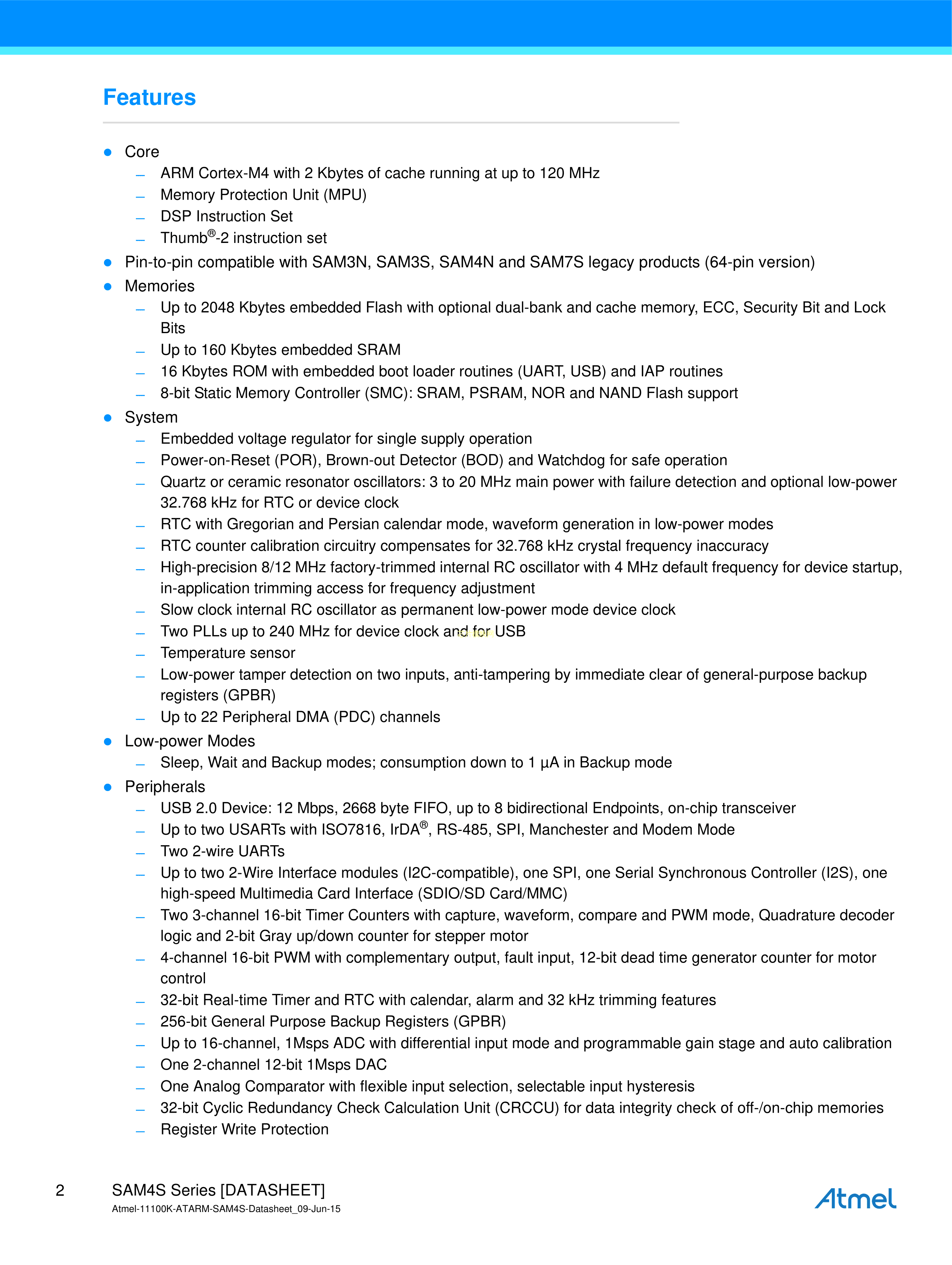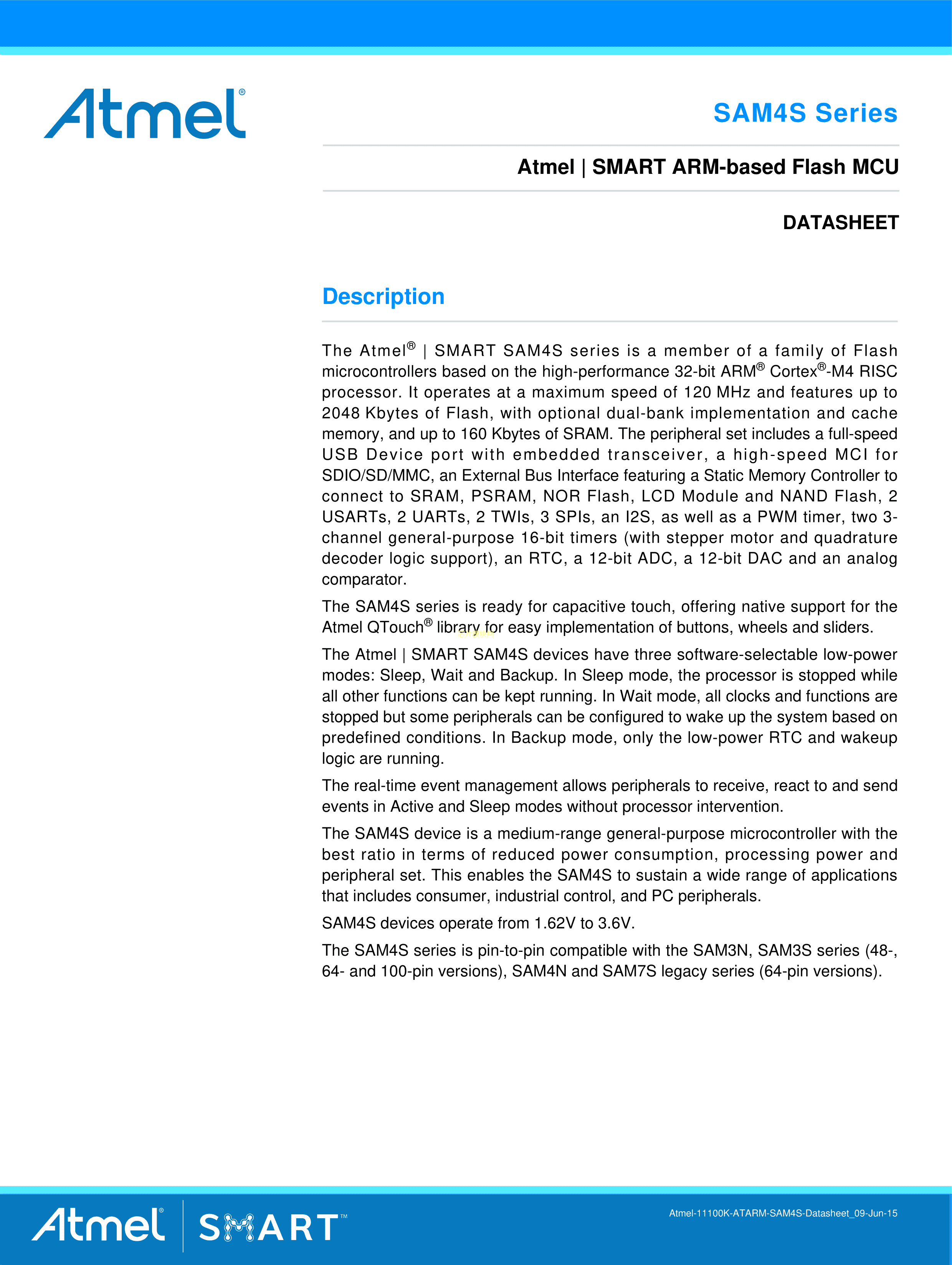 ATSAM4SA16CA-CU数据手册TFBGA-100(9x9)封装MICROCHIP(美国微芯)