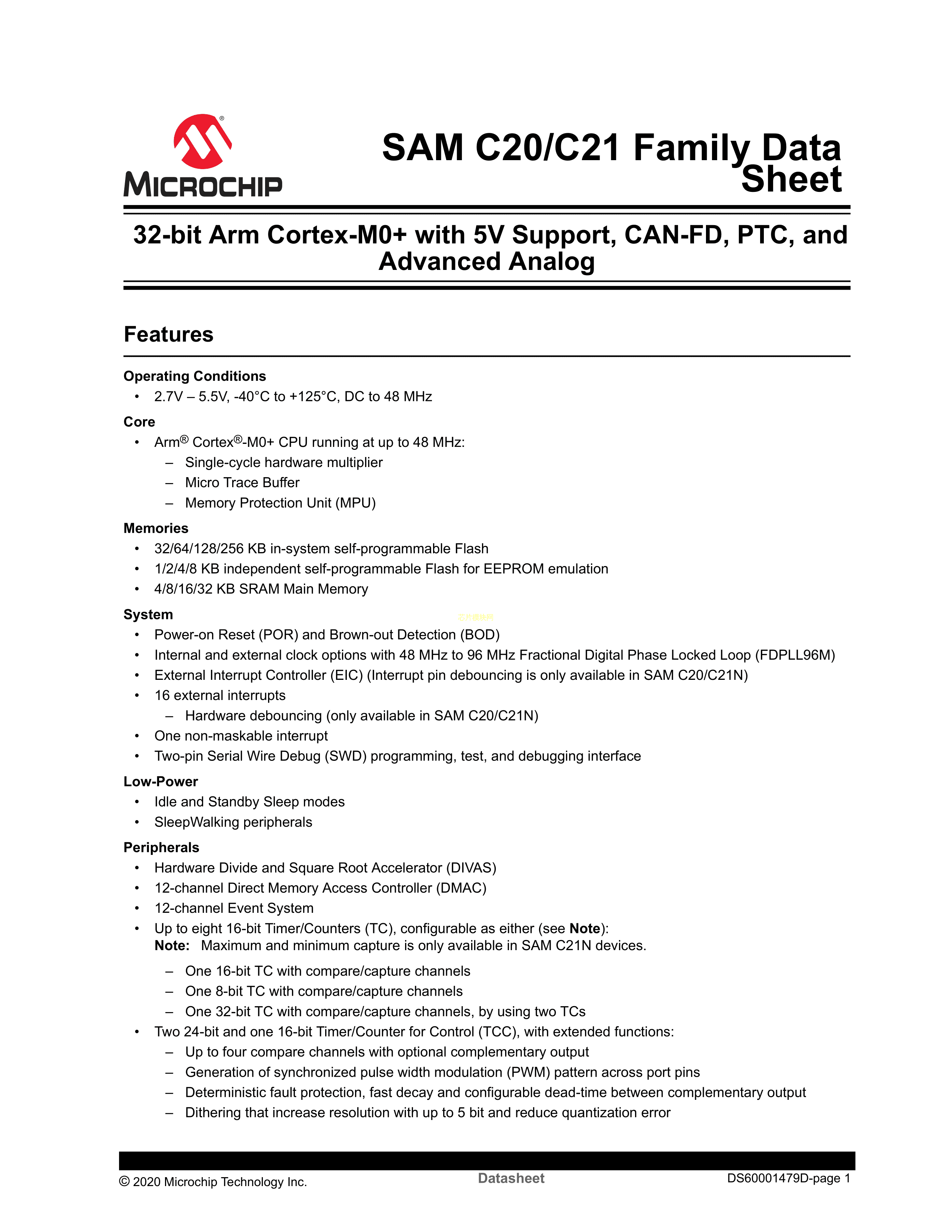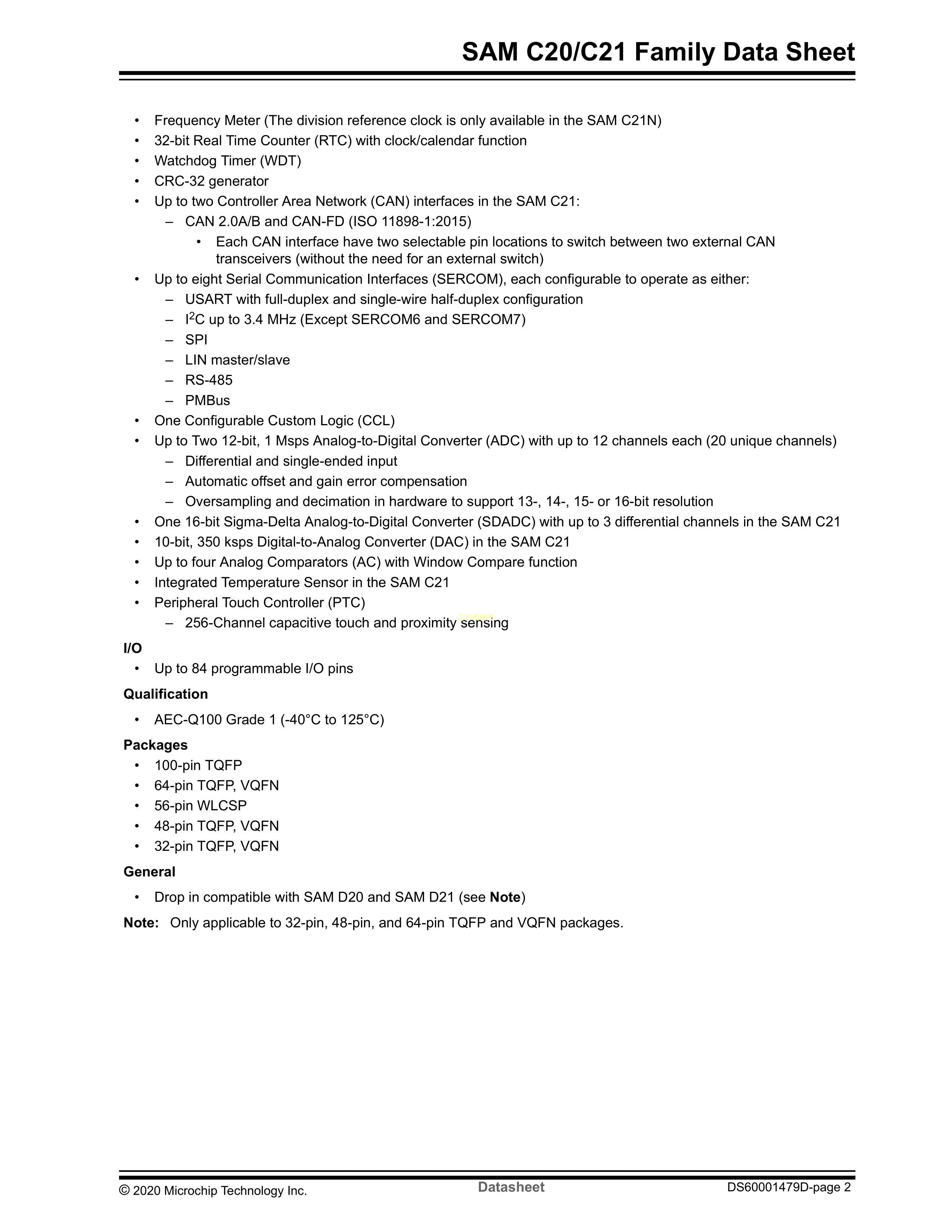 ATSAMC20J17A-ANT数据手册TQFP-64封装MICROCHIP(美国微芯)PDF规格书,中英文下载