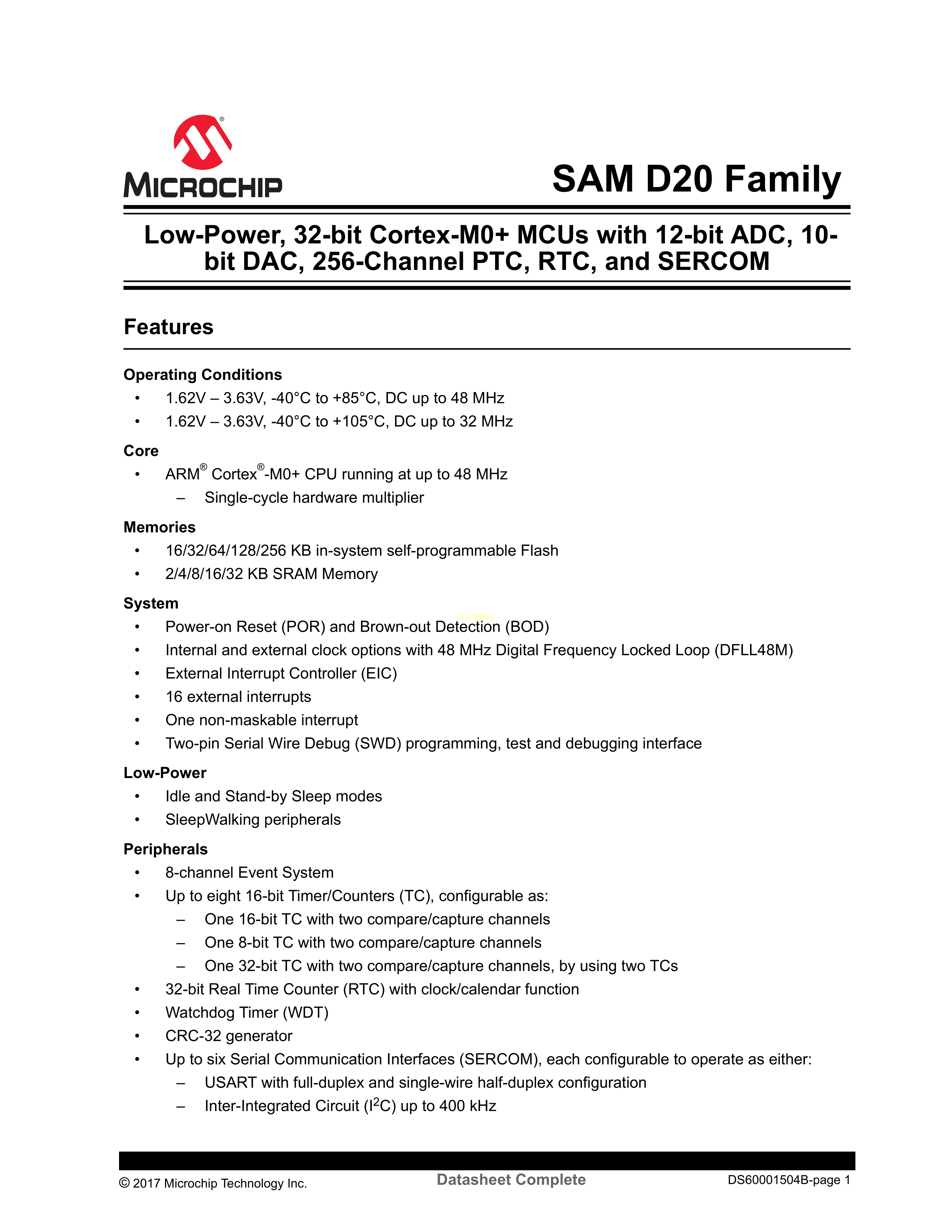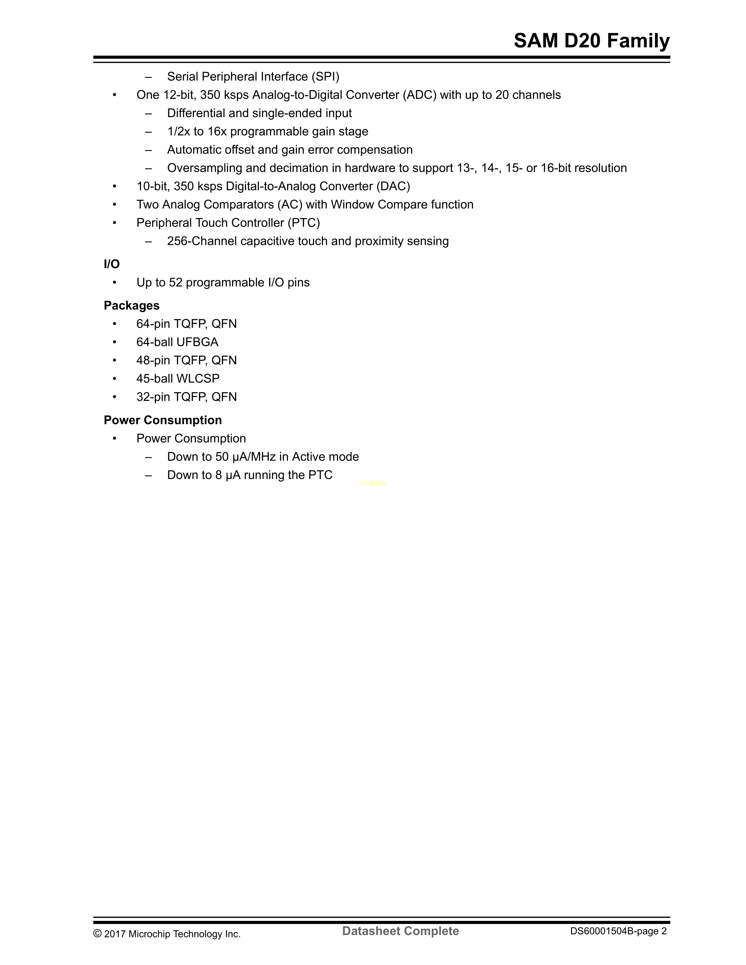 ATSAMD20G18A-AU数据手册TQFP-48_7x7x05P封装MICROCHIP(美国微芯