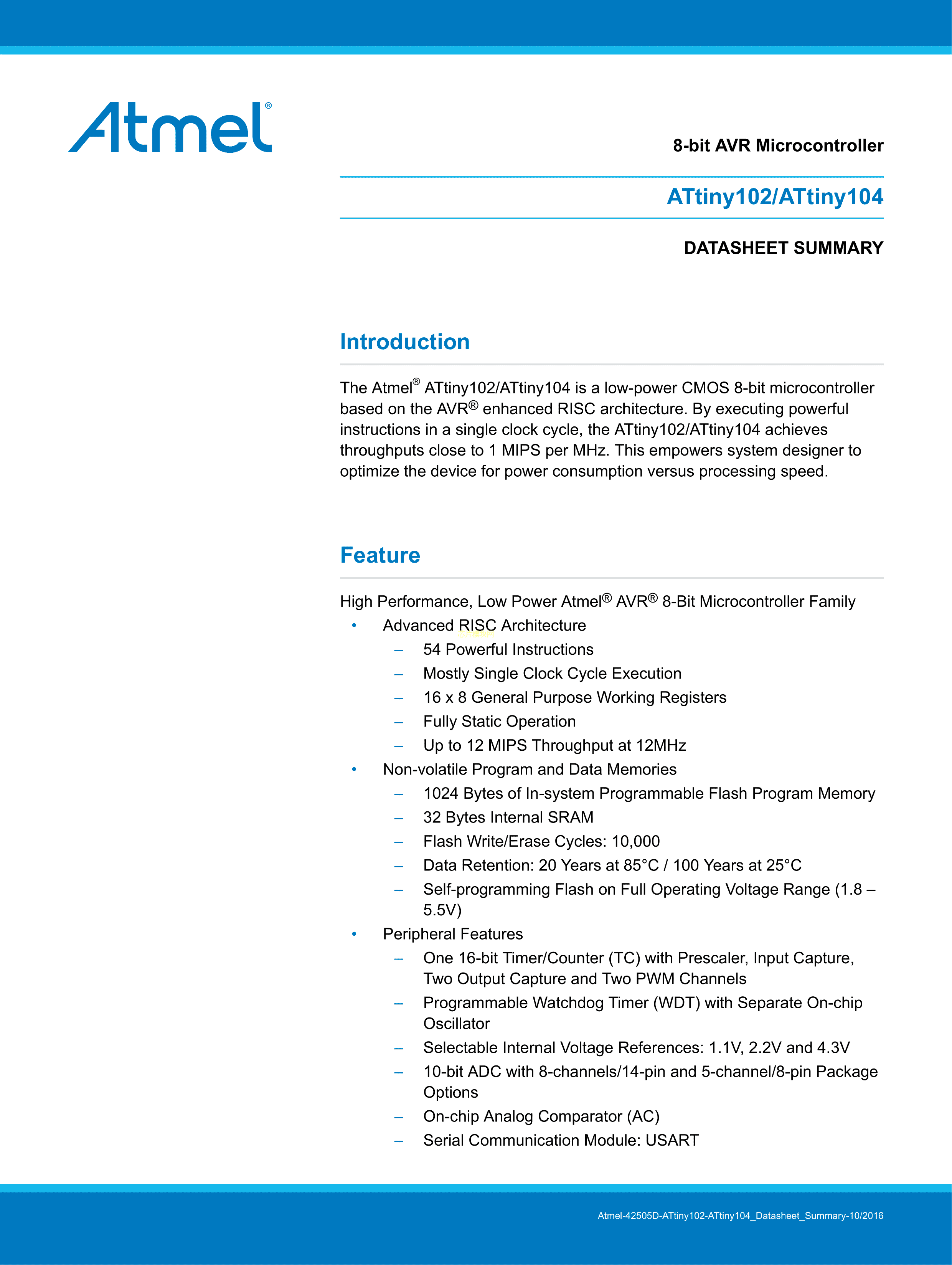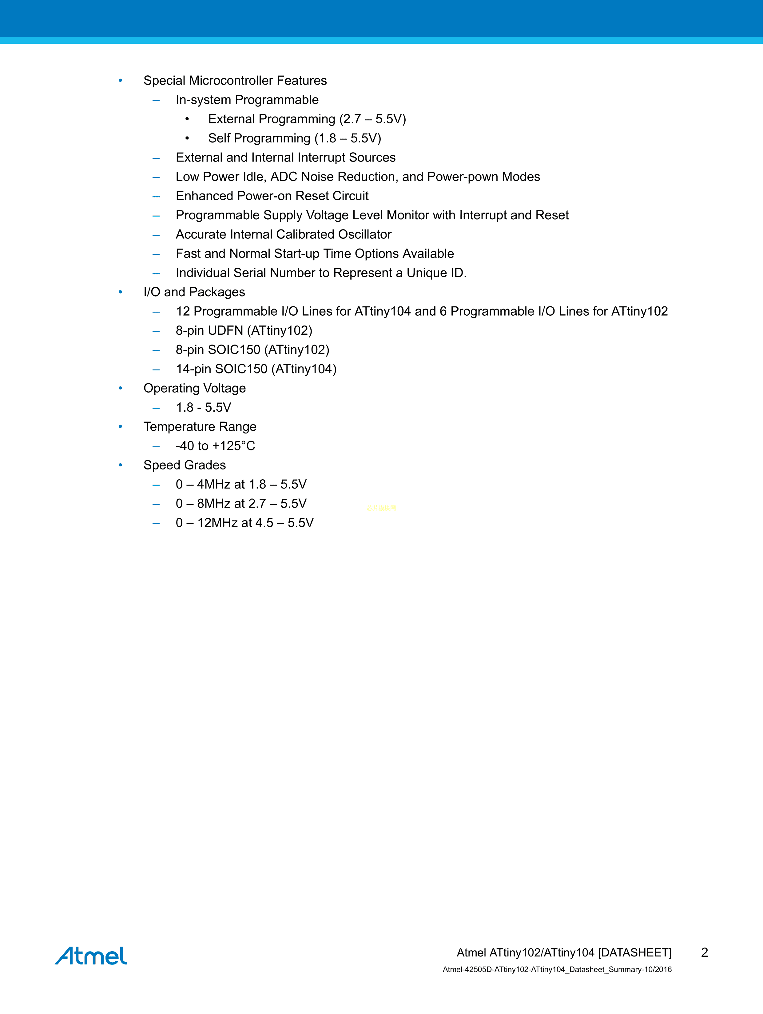 ATTINY104F-SSNR数据手册SOIC-14封装MICROCHIP(美国微芯)PDF规格书,