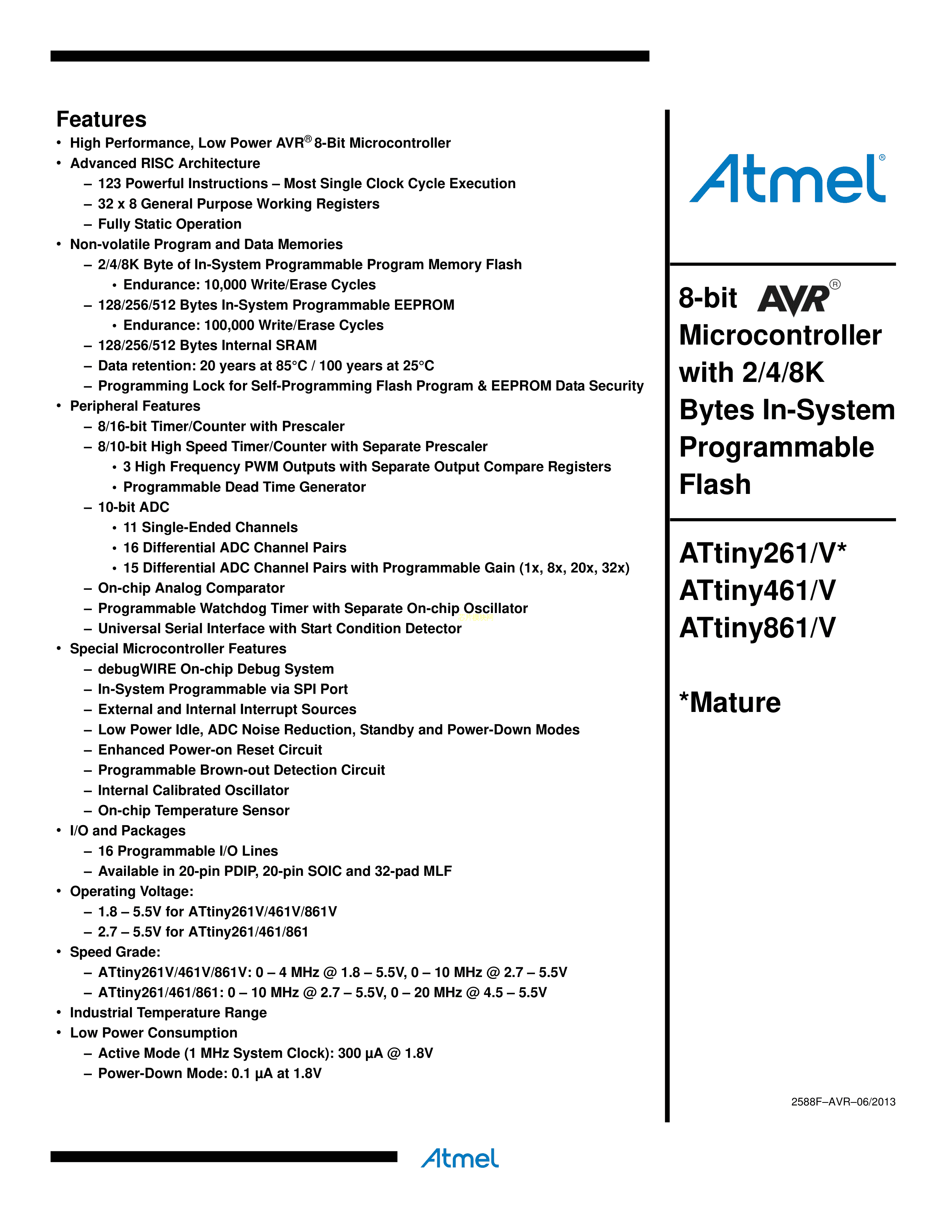 ATTINY261V-10PU数据手册PDIP-20封装MICROCHIP(美国微芯)PDF规格书,