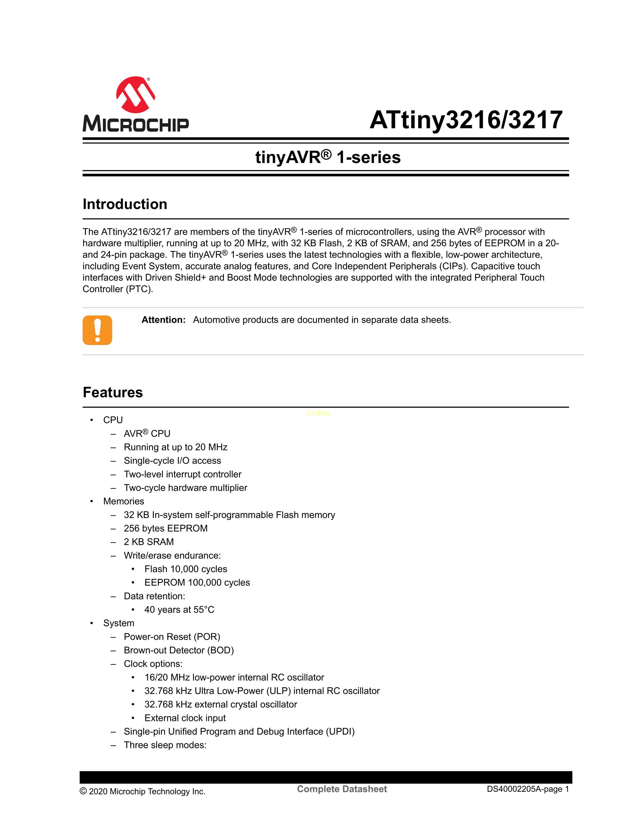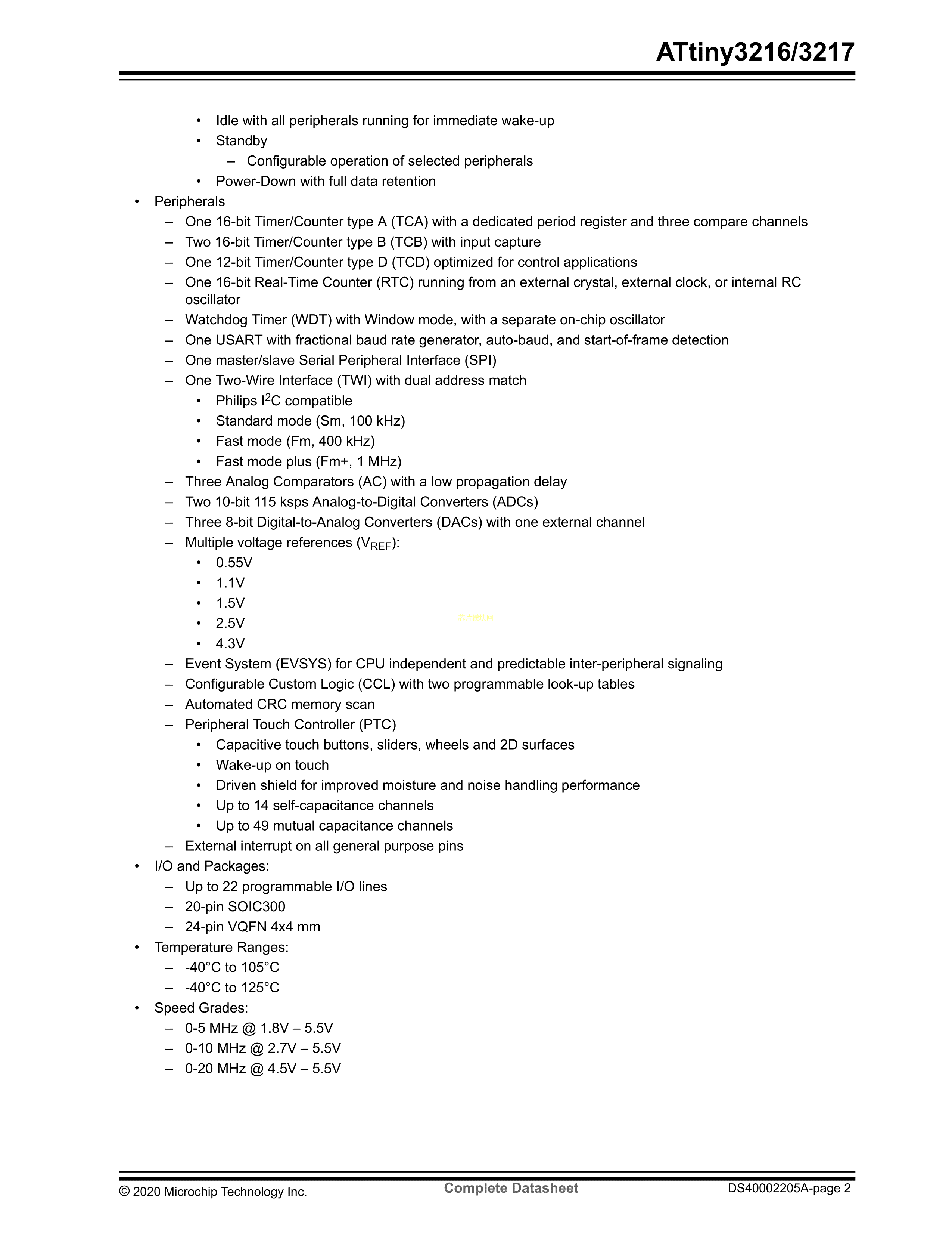 ATTINY3216-SFR数据手册SOIC-20封装MICROCHIP(美国微芯)PDF规格书,中英文下载