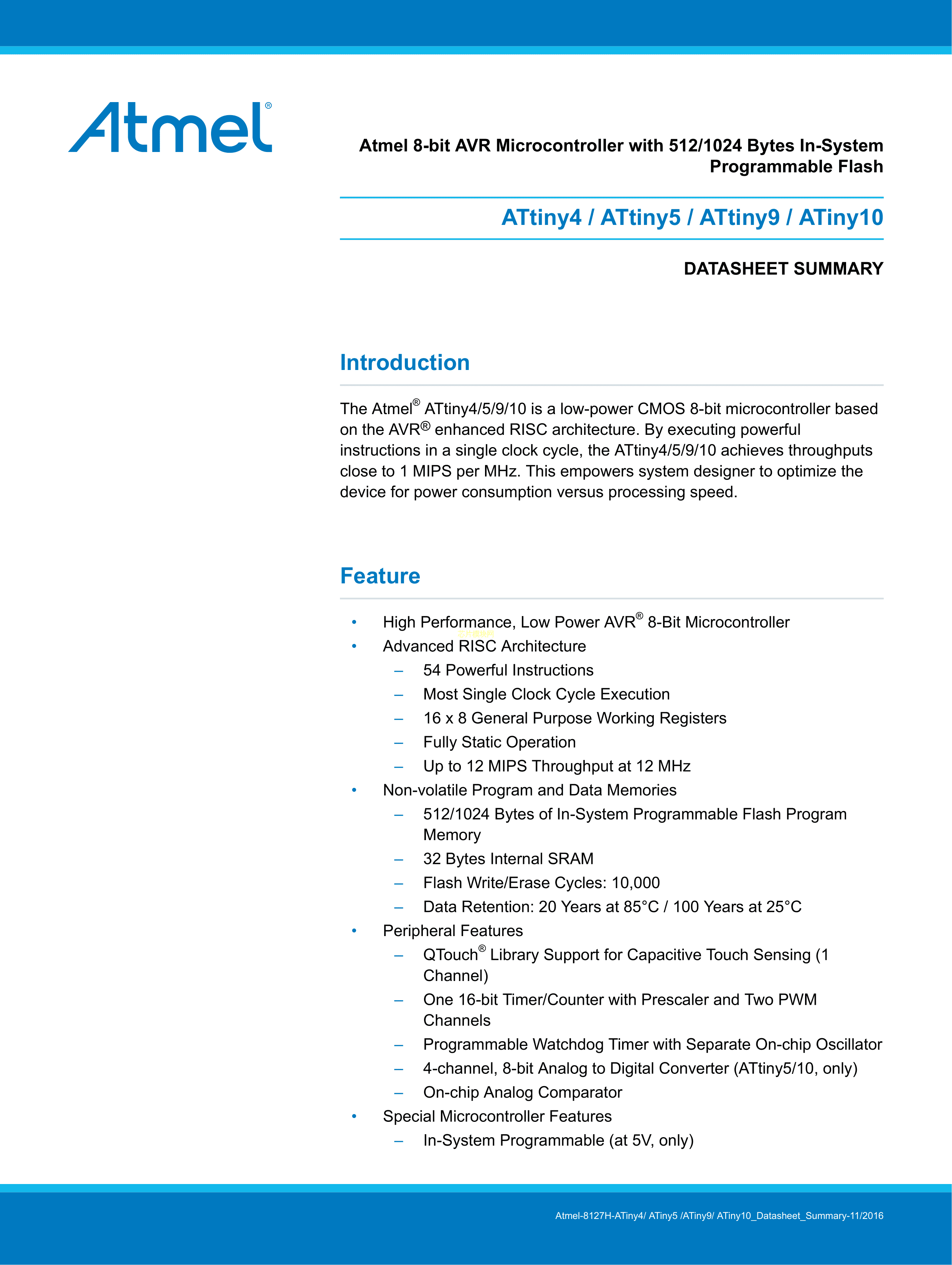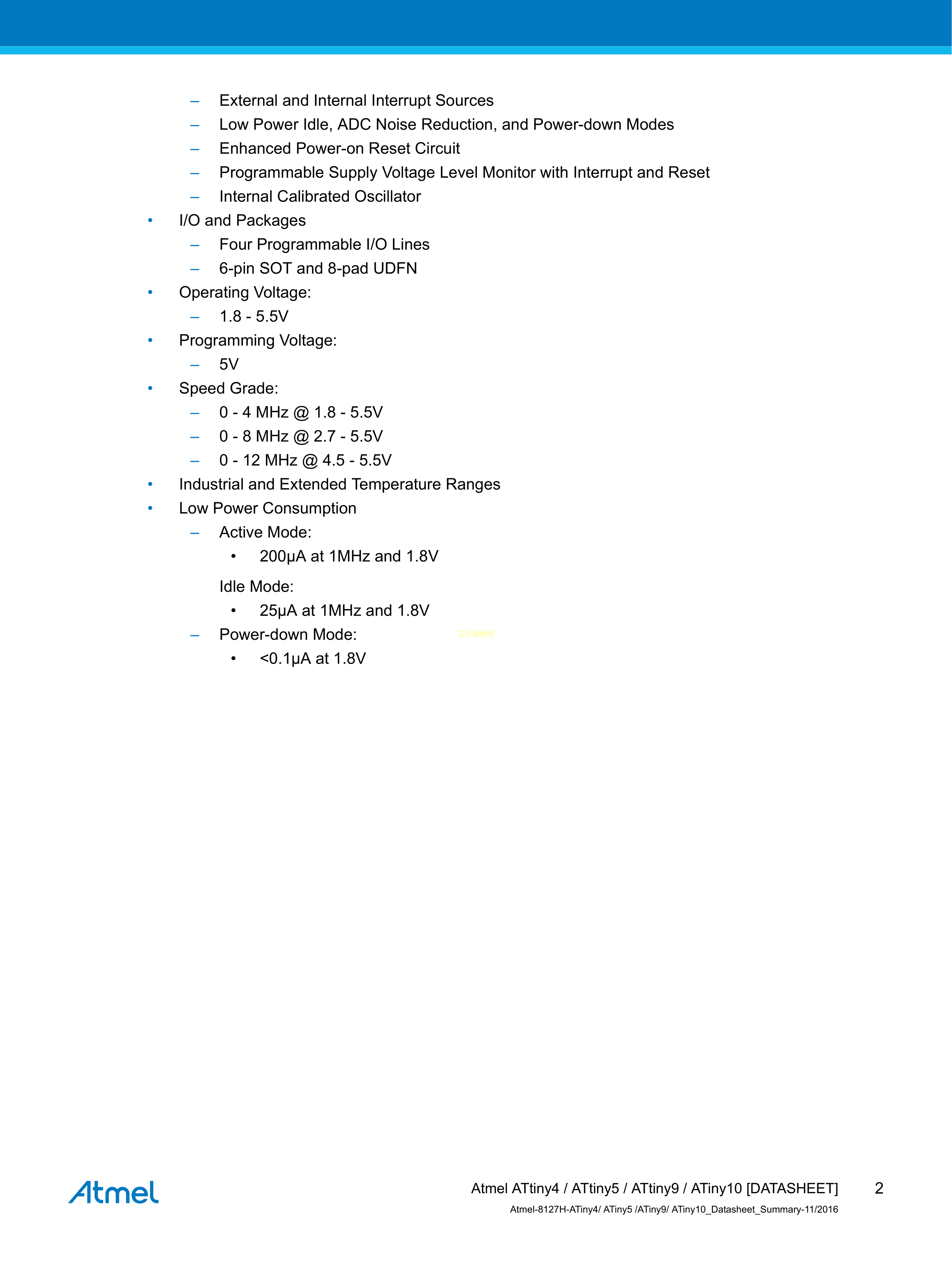 ATTINY4-TSHR数据手册SOT-23-6封装MICROCHIP(美国微芯)PDF规格书,中英