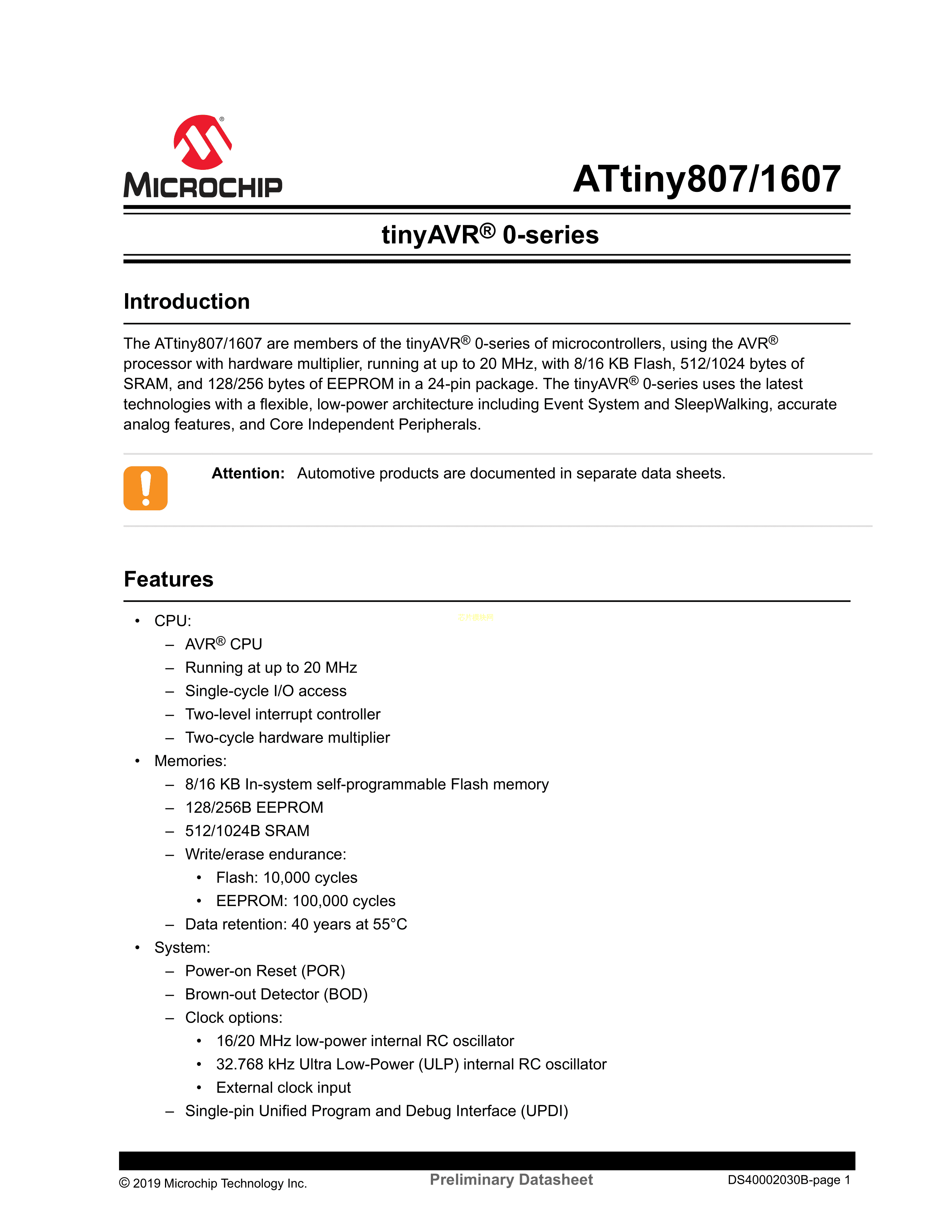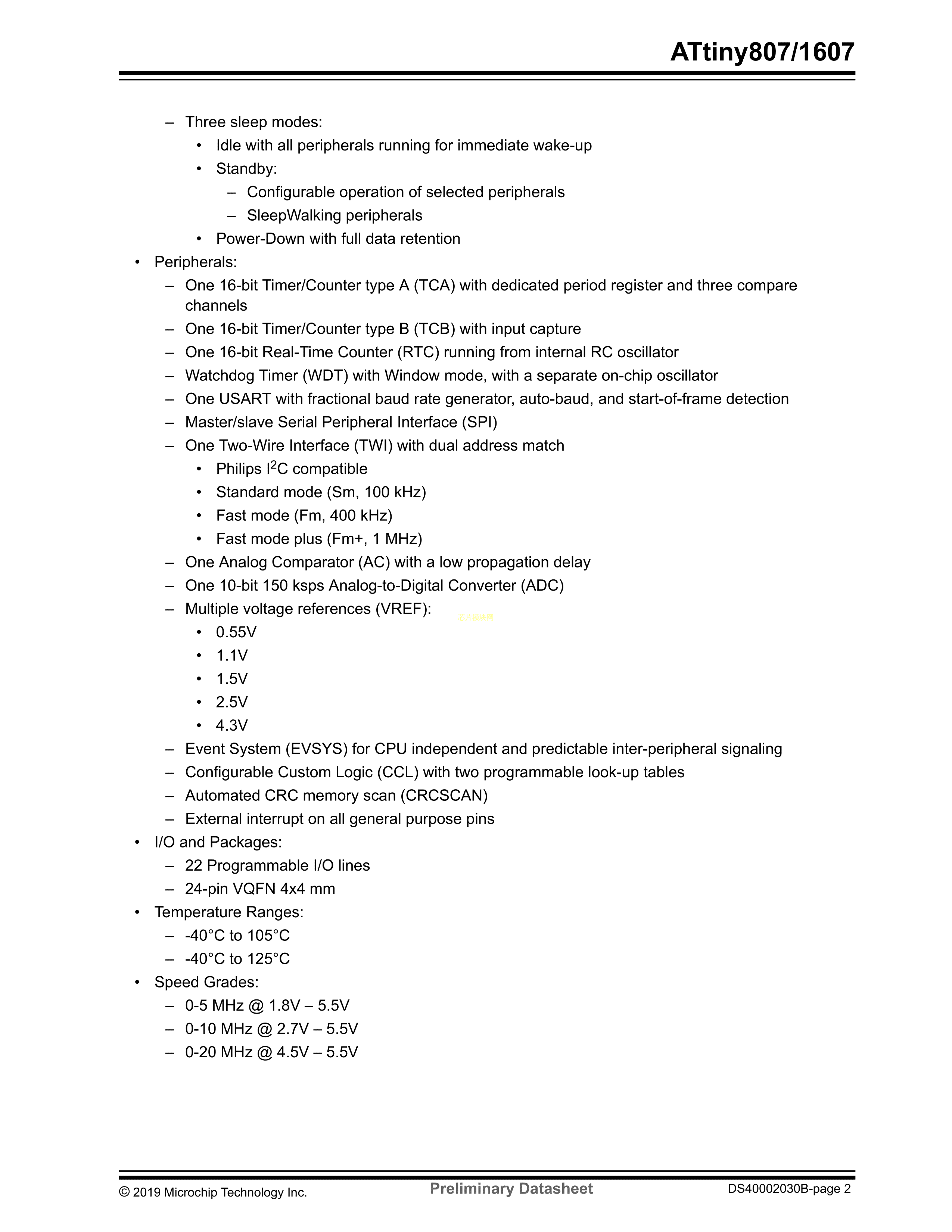 ATTINY807-MFR数据手册VQFN-24(4x4)封装MICROCHIP(美国微芯)PDF规格书,中英文下载