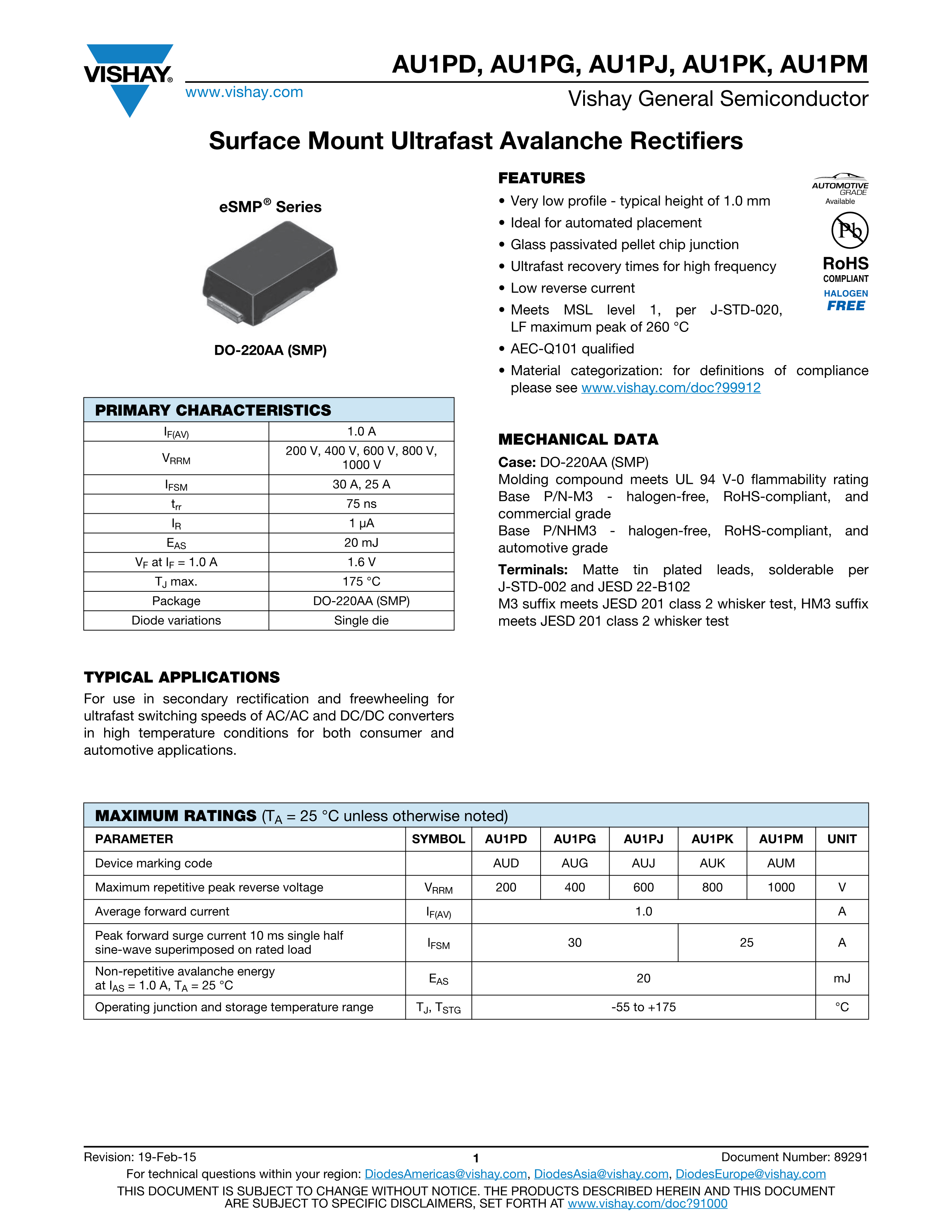 AU1PMHM3-84A数据手册DO-220AA封装VISHAY(威世)PDF规格书,中英文下载
