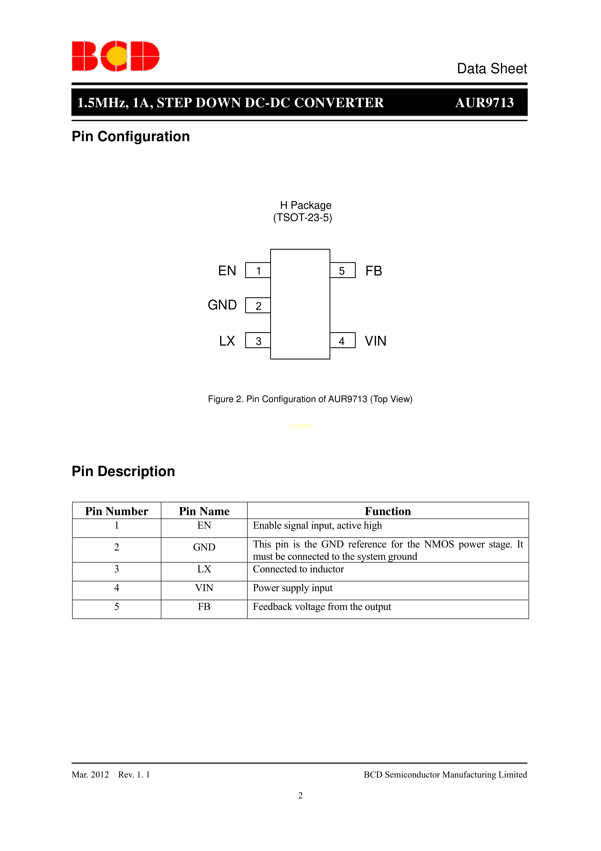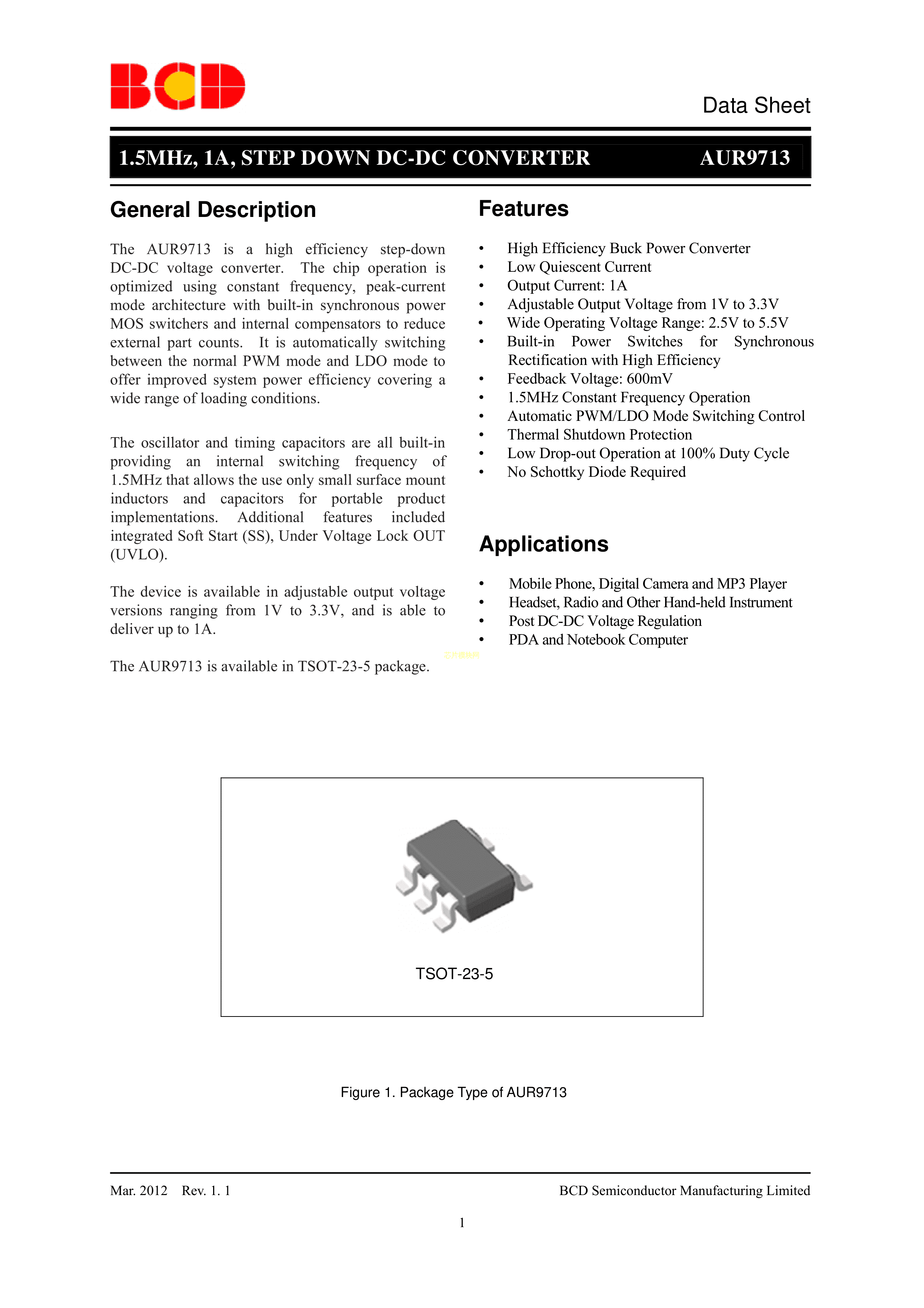 AUR9713AGH数据手册TSOT-23-5封装DIODES(美台)PDF规格书,中英文下载