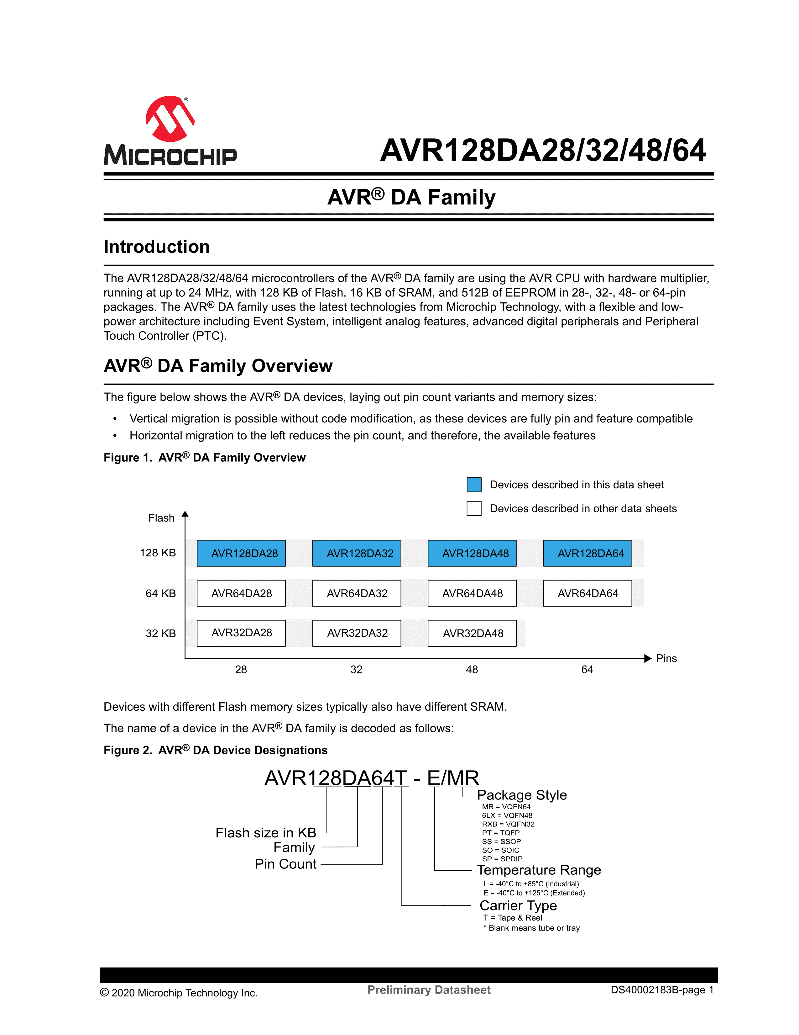 AVR128DA32-I-RXB数据手册VQFN-32(5x5)封装MICROCHIP(美国微芯)P