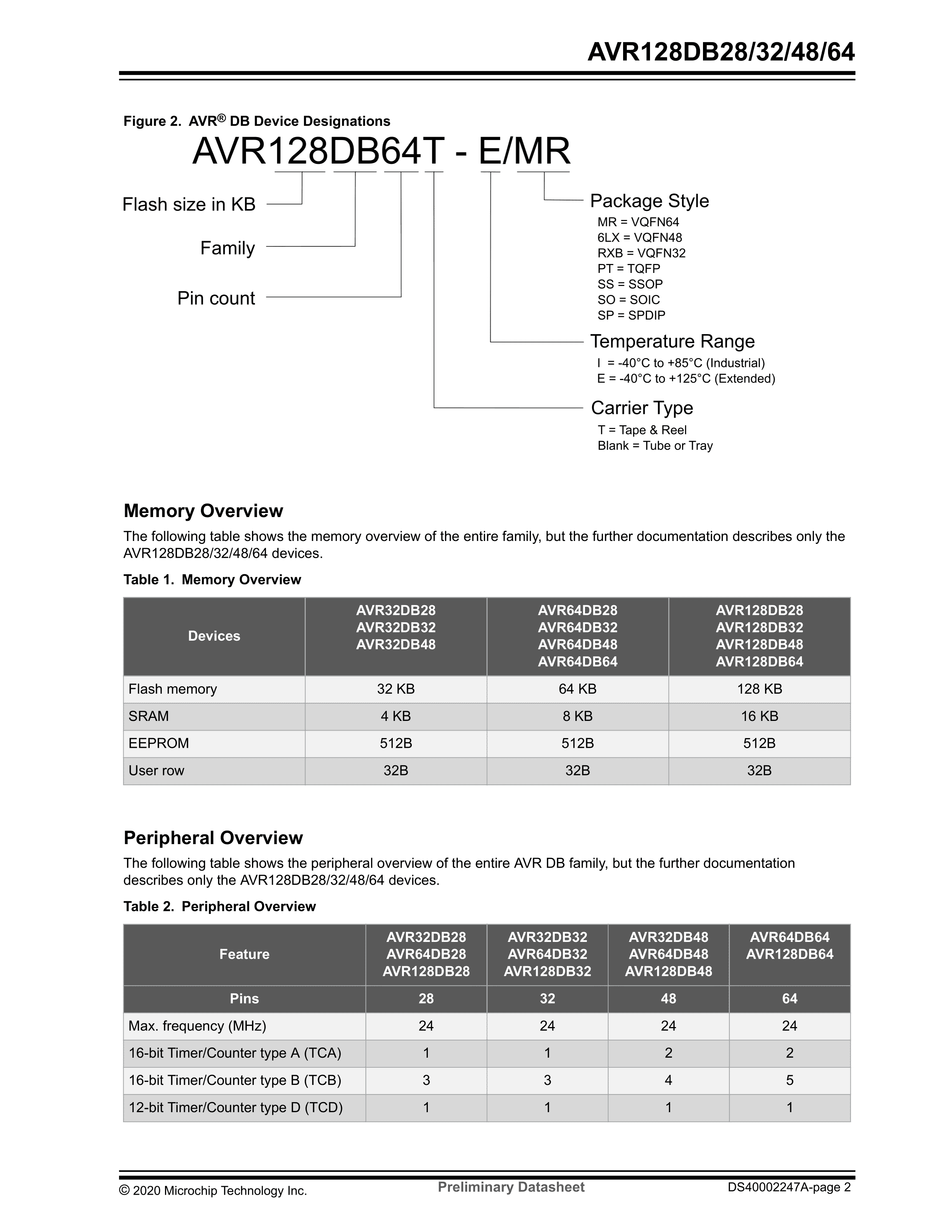 AVR128DB48-E-6LX数据手册VQFN-48(6x6)封装MICROCHIP(美国微芯)P