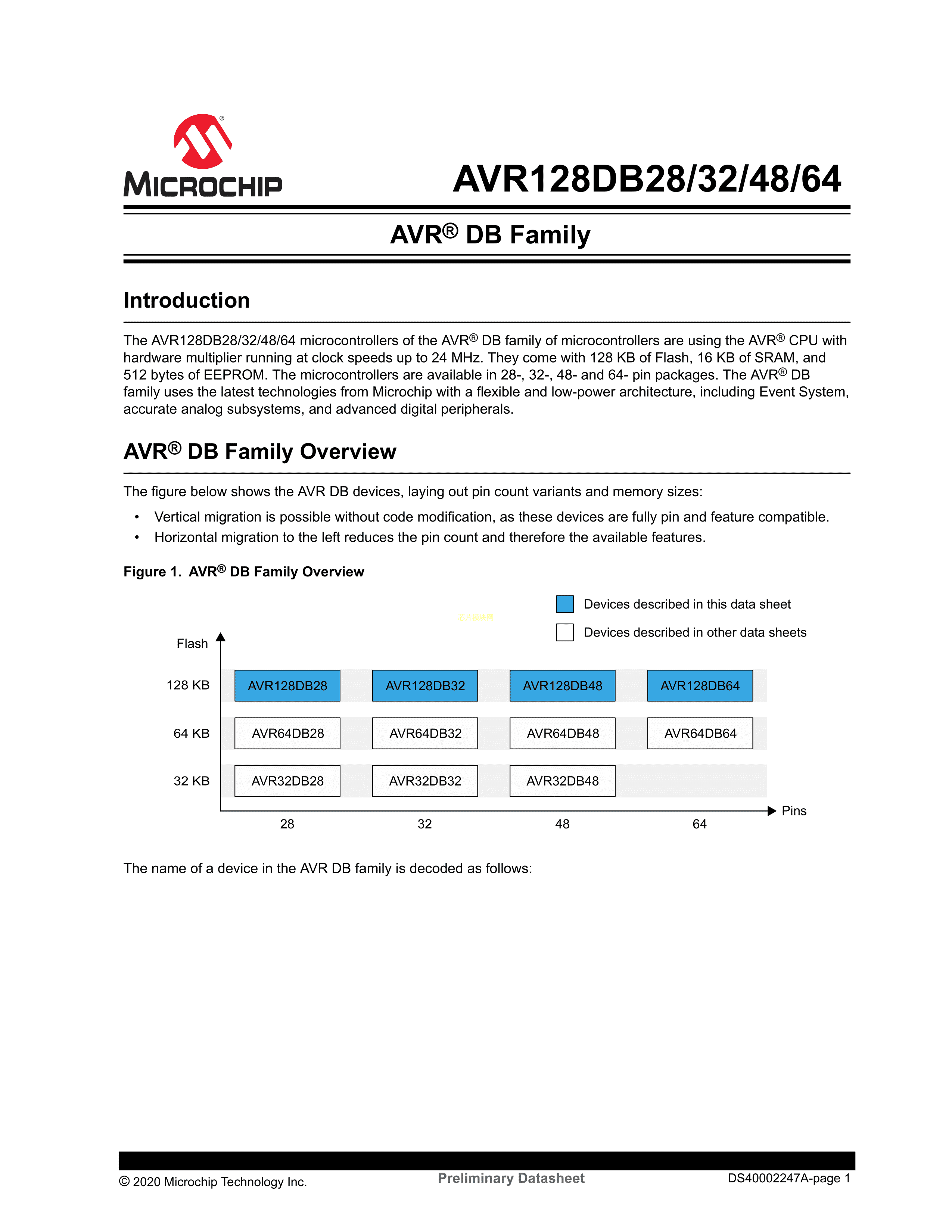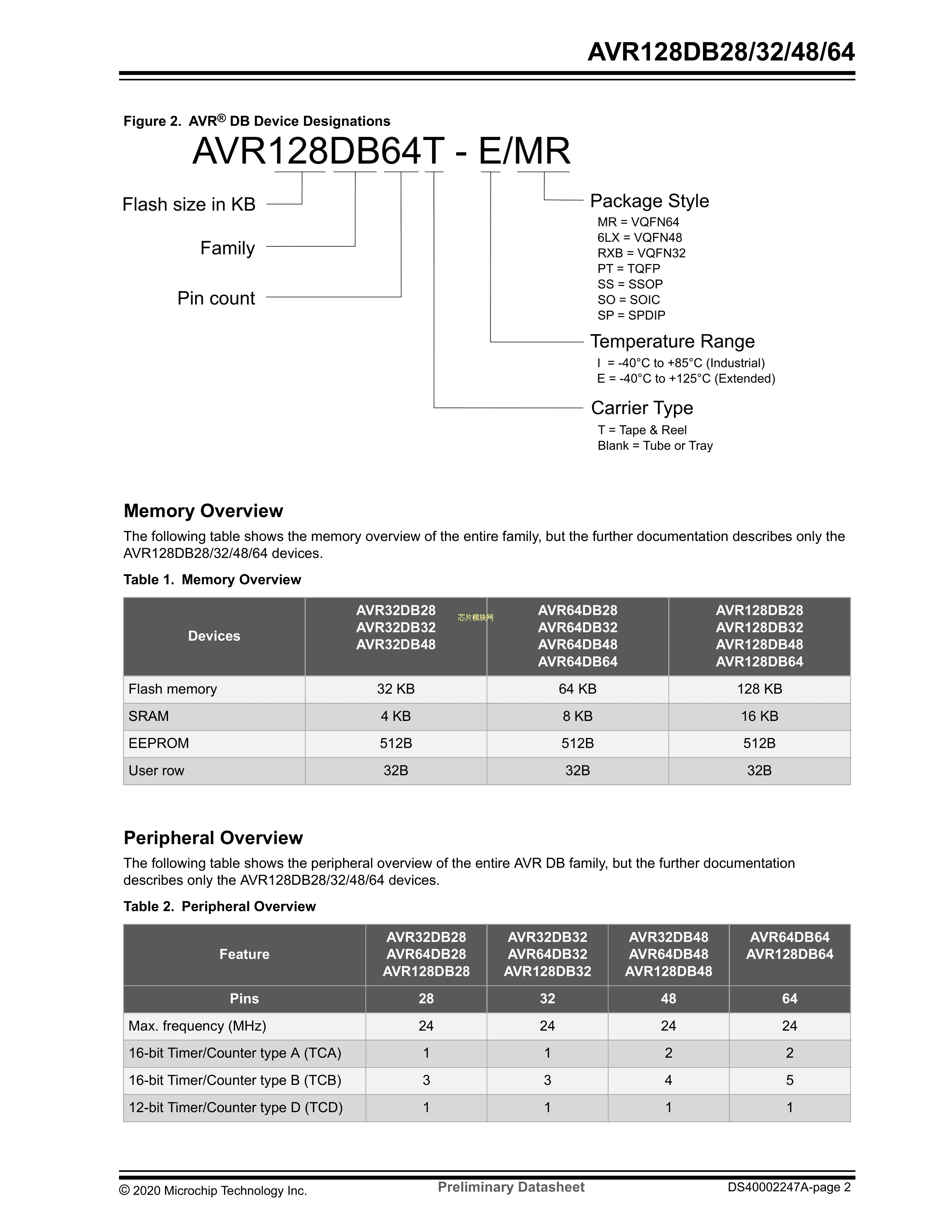 AVR128DB64-I-PT数据手册TQFP-64(10x10)封装MICROCHIP(美国微芯)PDF规格书,中英文下载