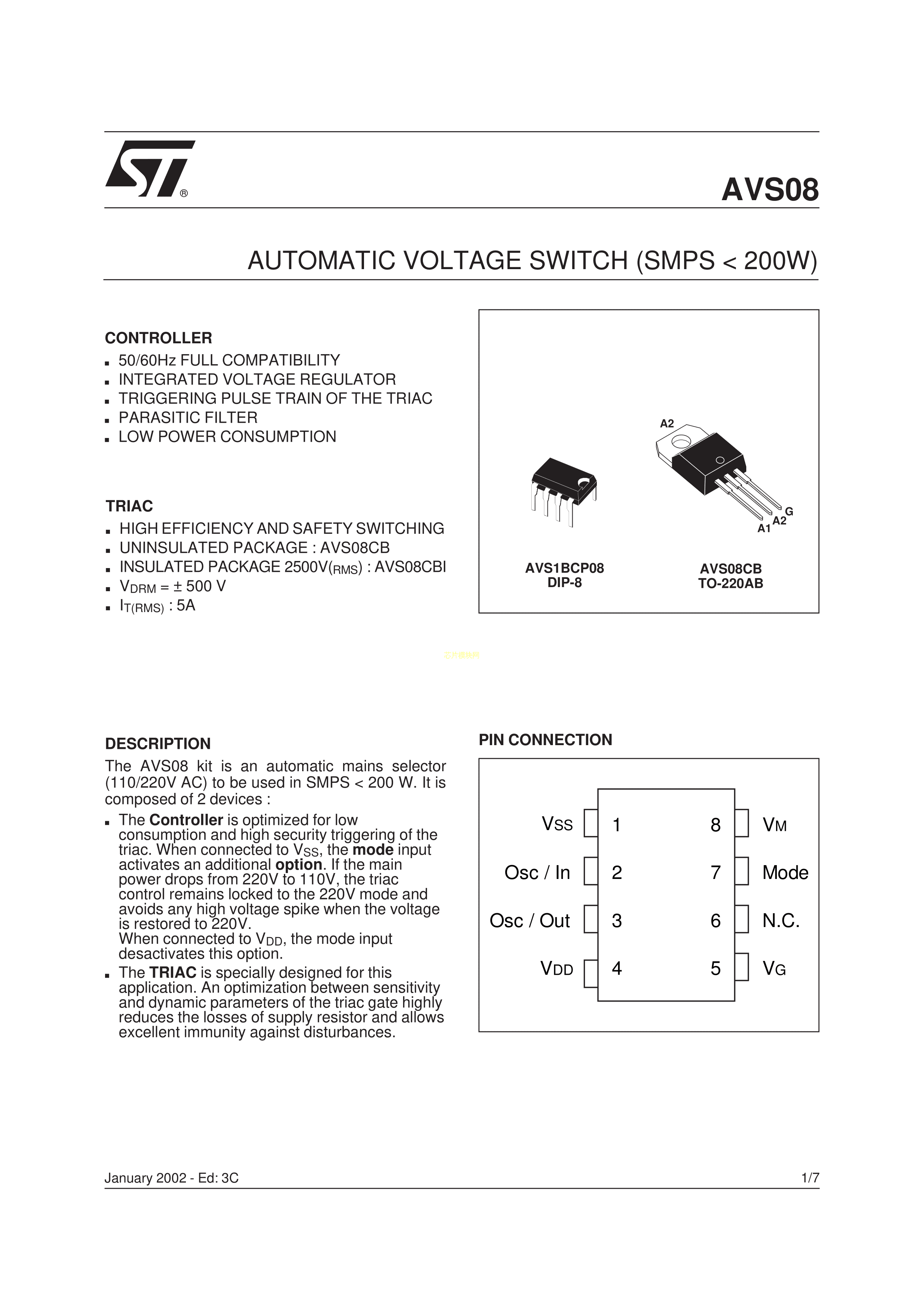 AVS08CB数据手册TO-220AB-3封装ST(意法半导体)PDF规格书,中英文下载