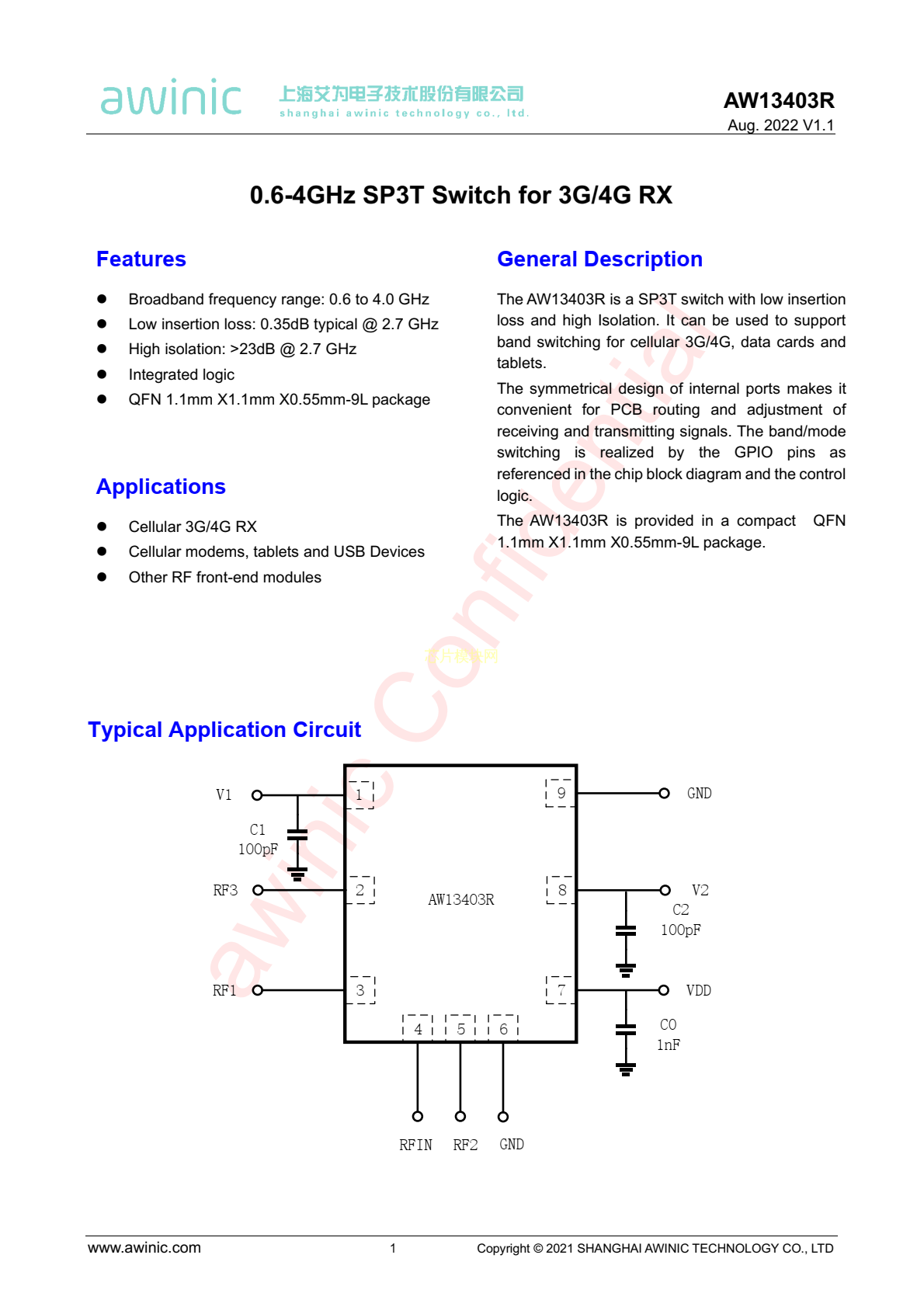 AW13403RQNR PDF规格书,中英文下载