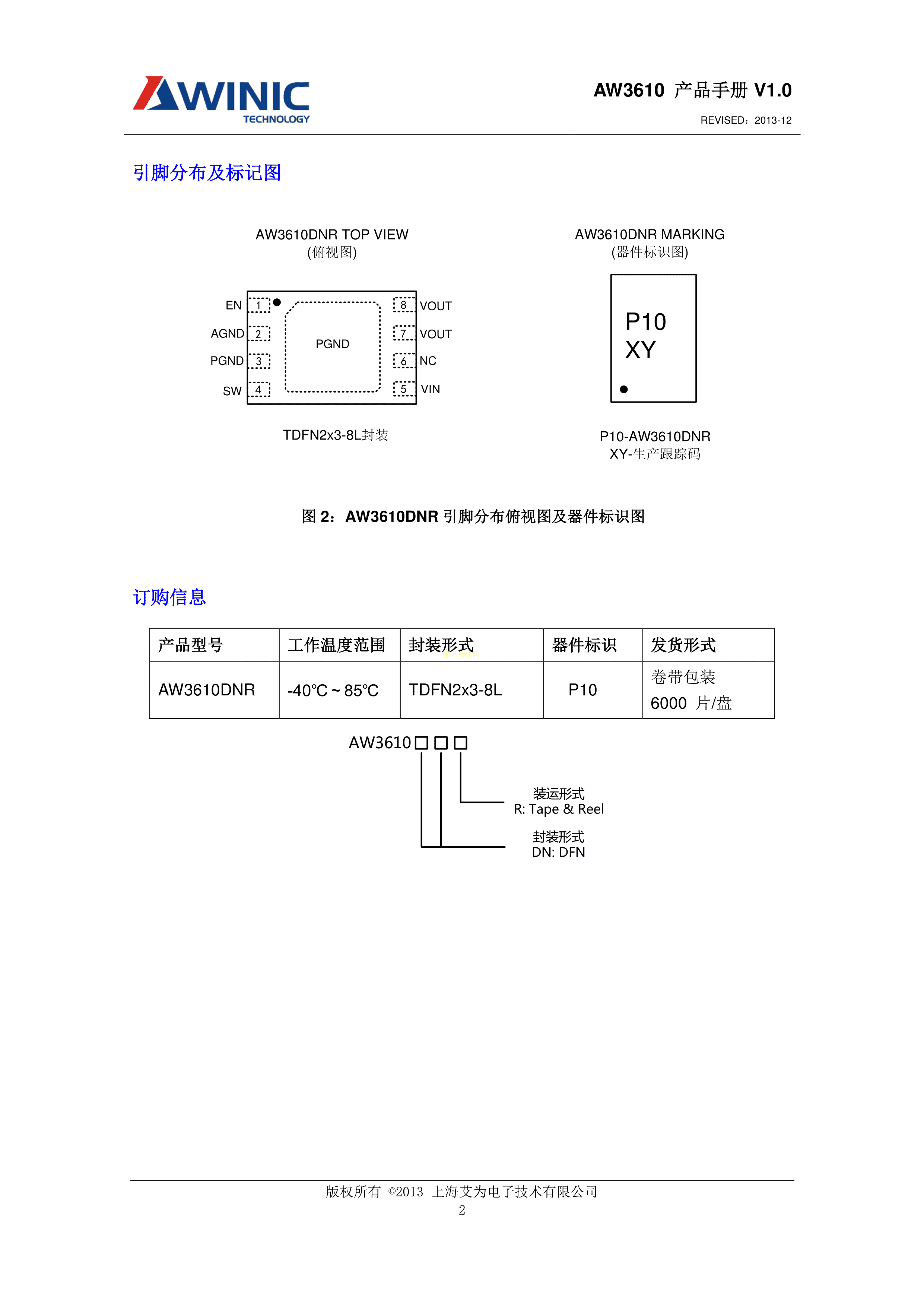AW3610DNR数据手册TDFN2x3-8L封装AWINIC(艾为)PDF规格书,中英文下载