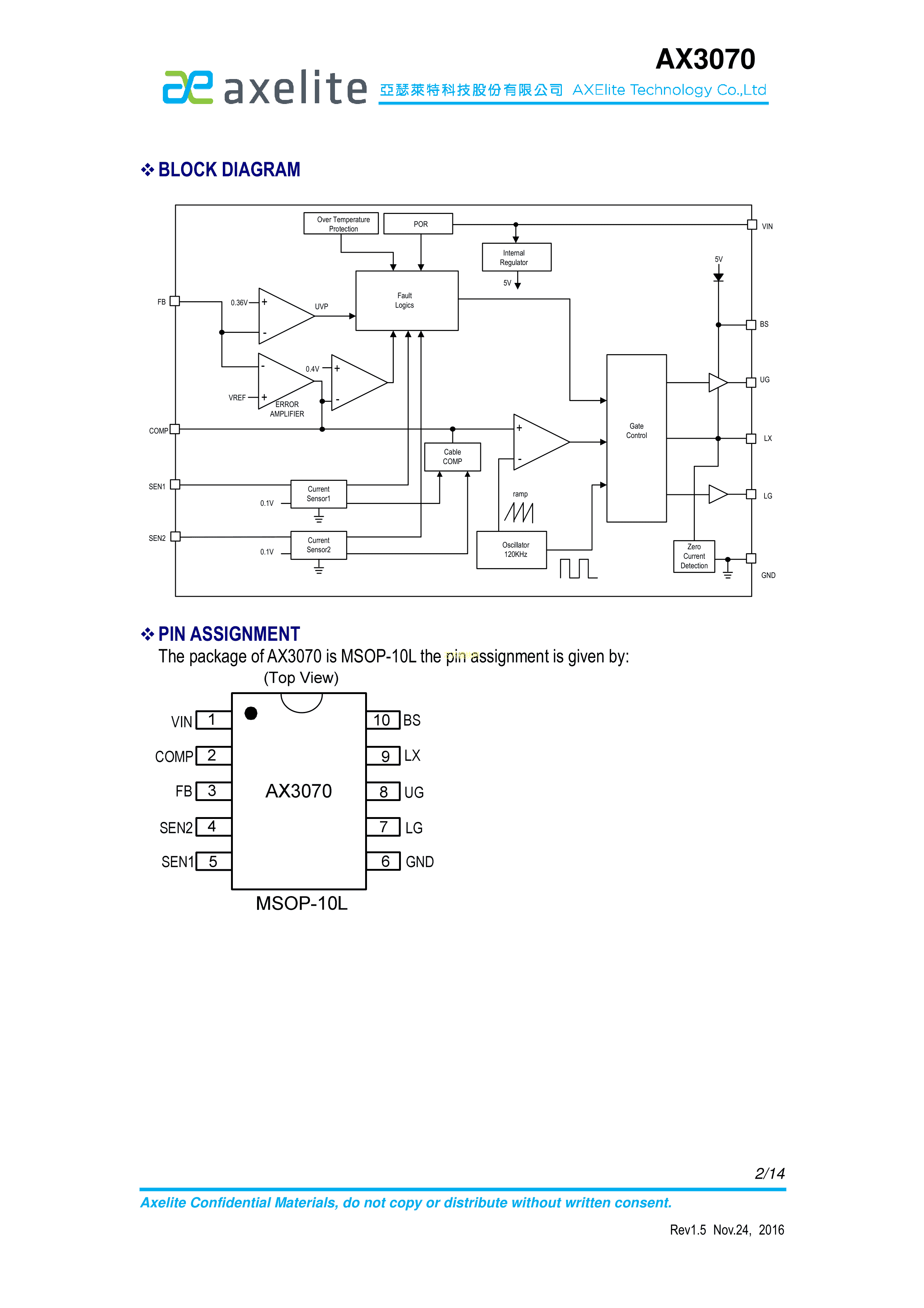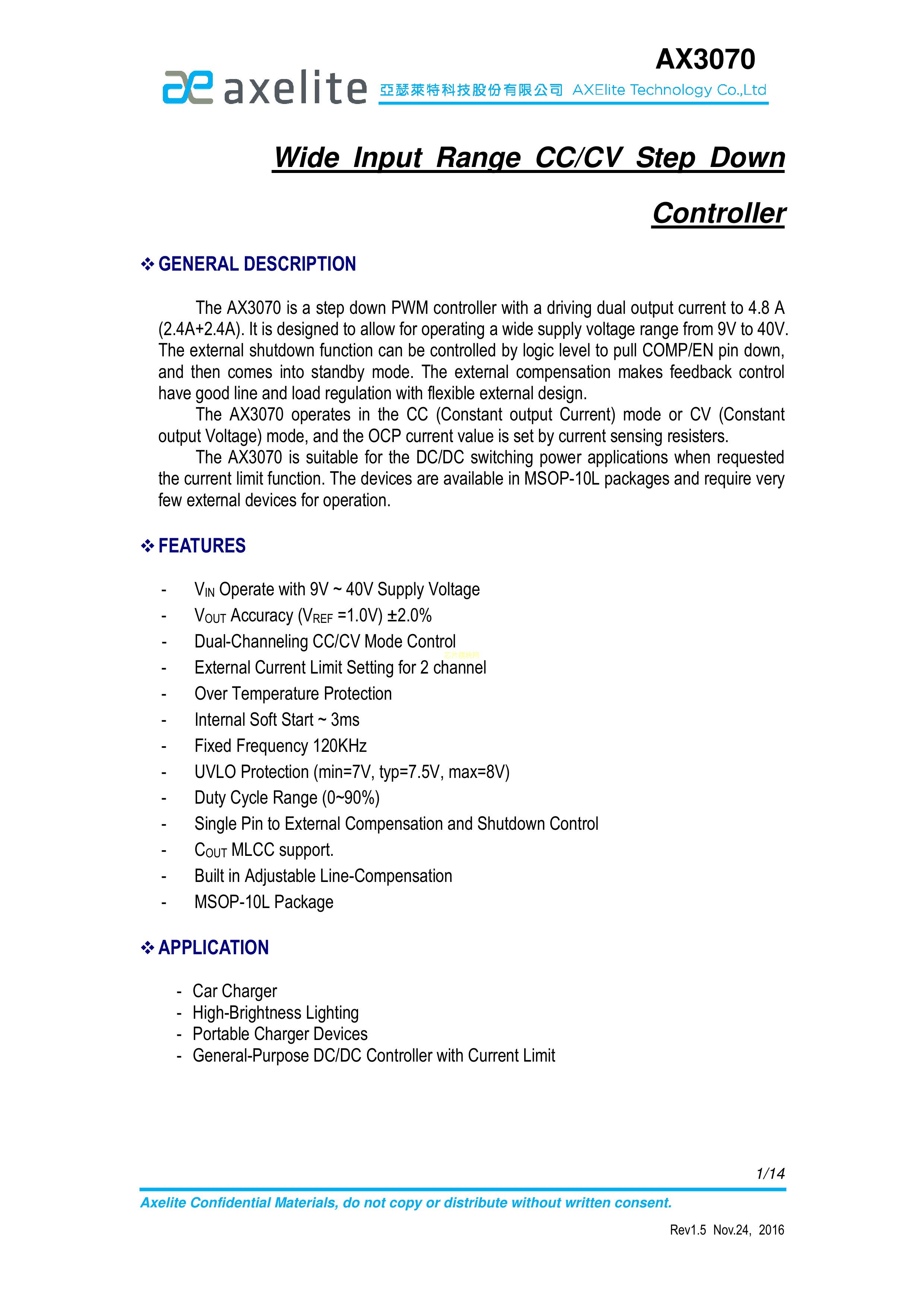 AX3070UA数据手册MSOP-10封装Axelite(台湾亚瑟莱特)PDF规格书,中英文下载