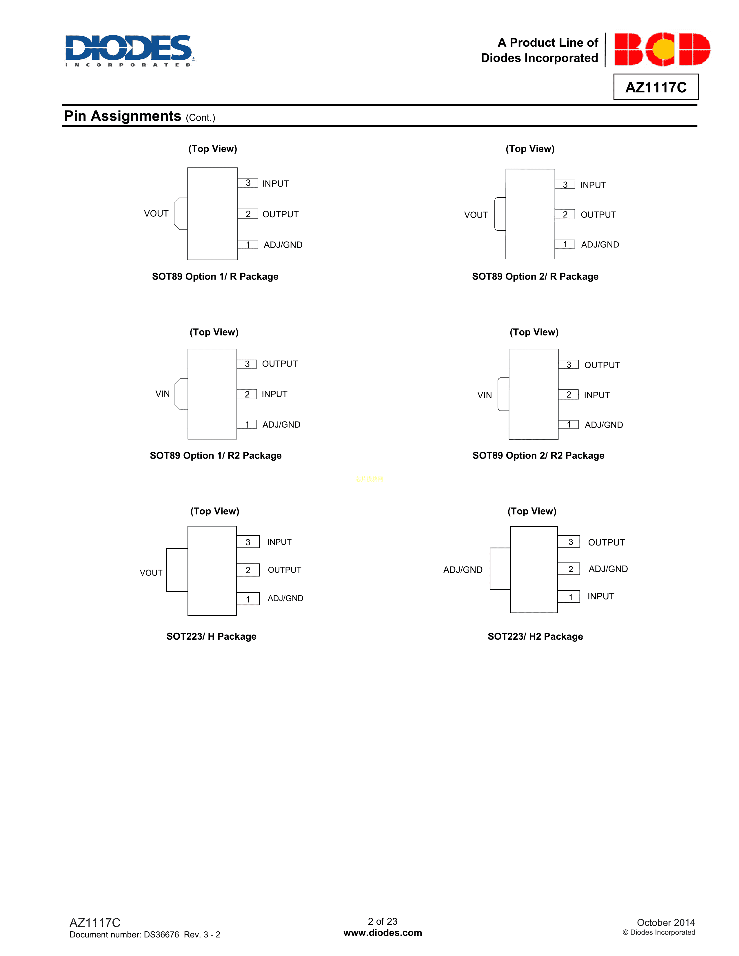 AZ1117CH-3.3TRG1数据手册SOT-223封装DIODES(美台)PDF规格书,中英文下