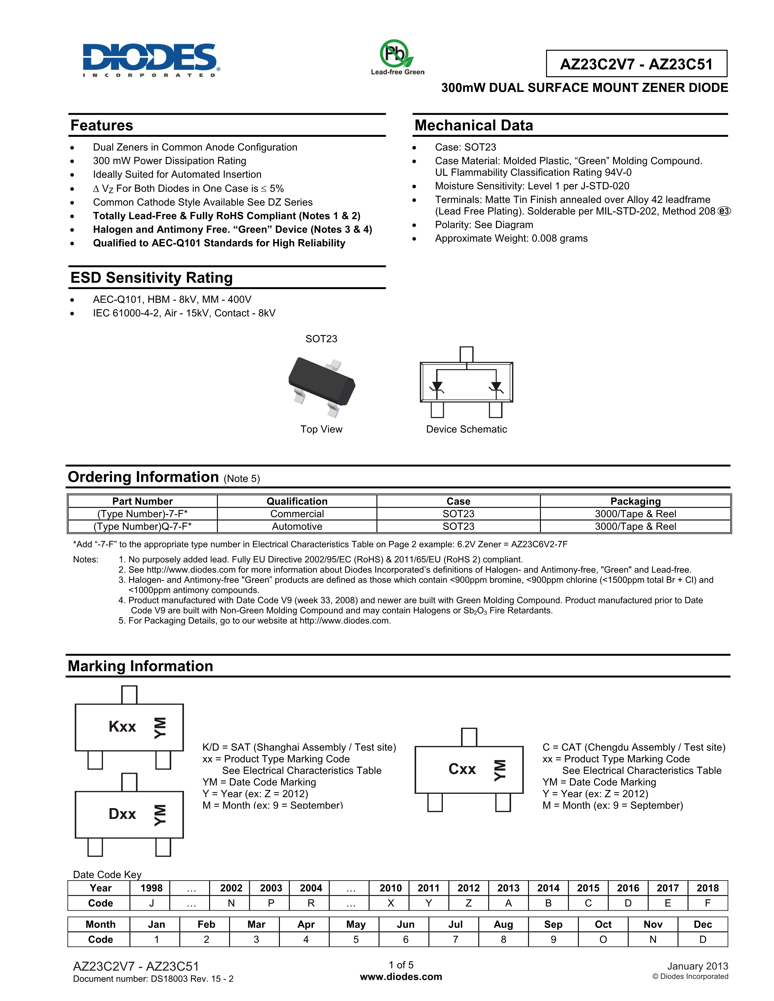 AZ23C3V0-7-F数据手册SOT-23(SOT-23-3)封装DIODES(美台)PDF规格书