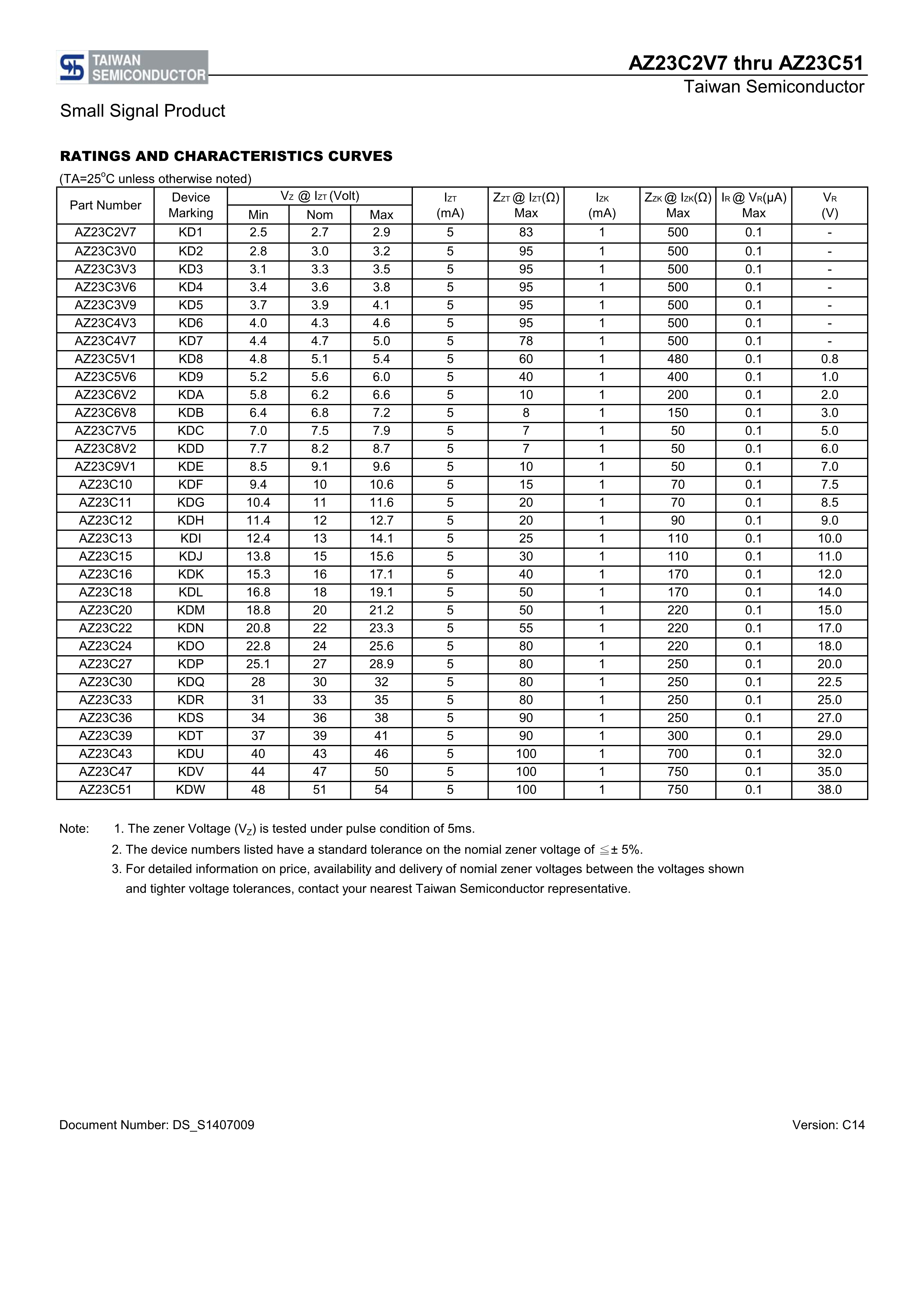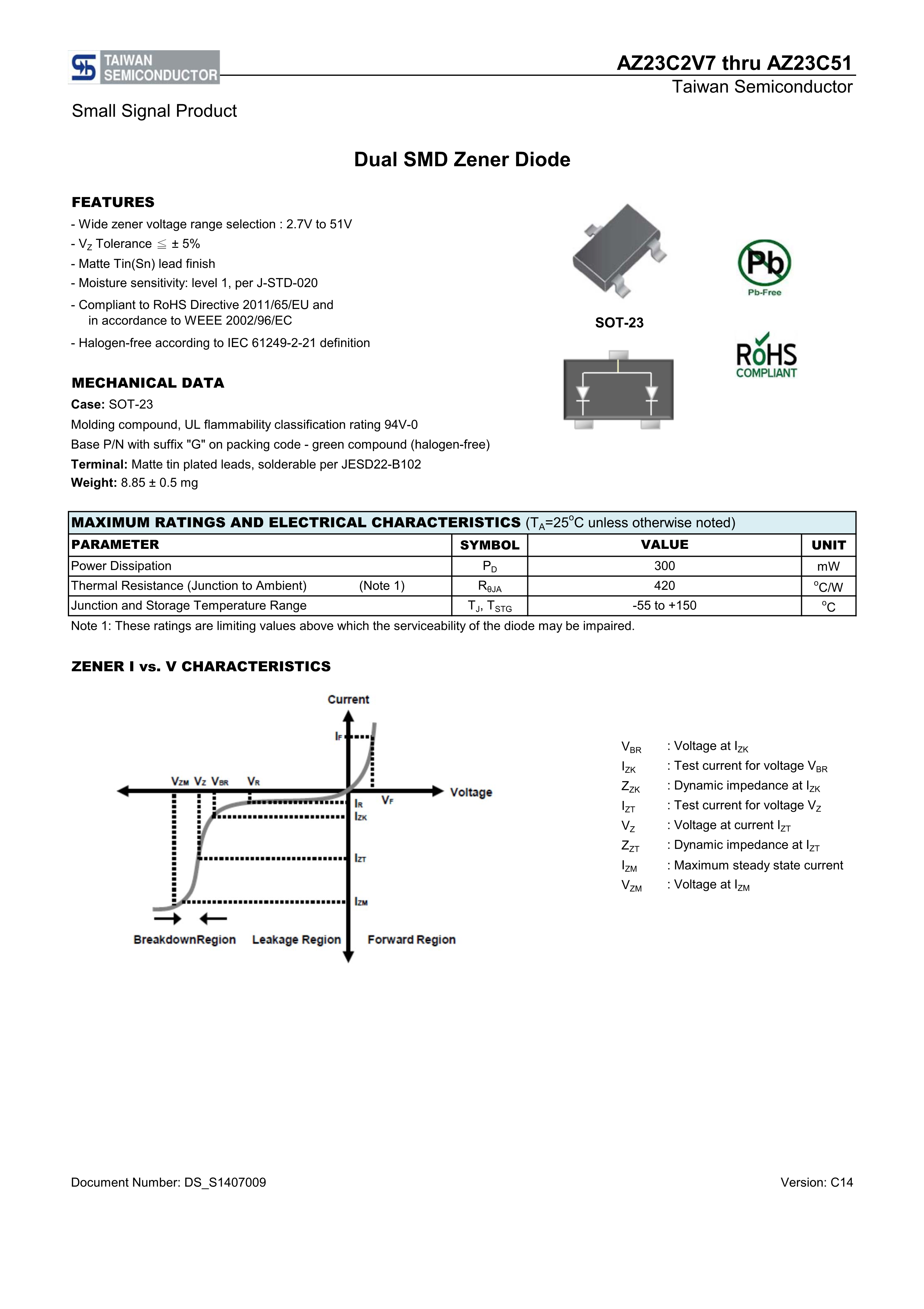 AZ23C6V2 RFG数据手册SOT-23封装Taiwan Semiconductor(台湾半导体
