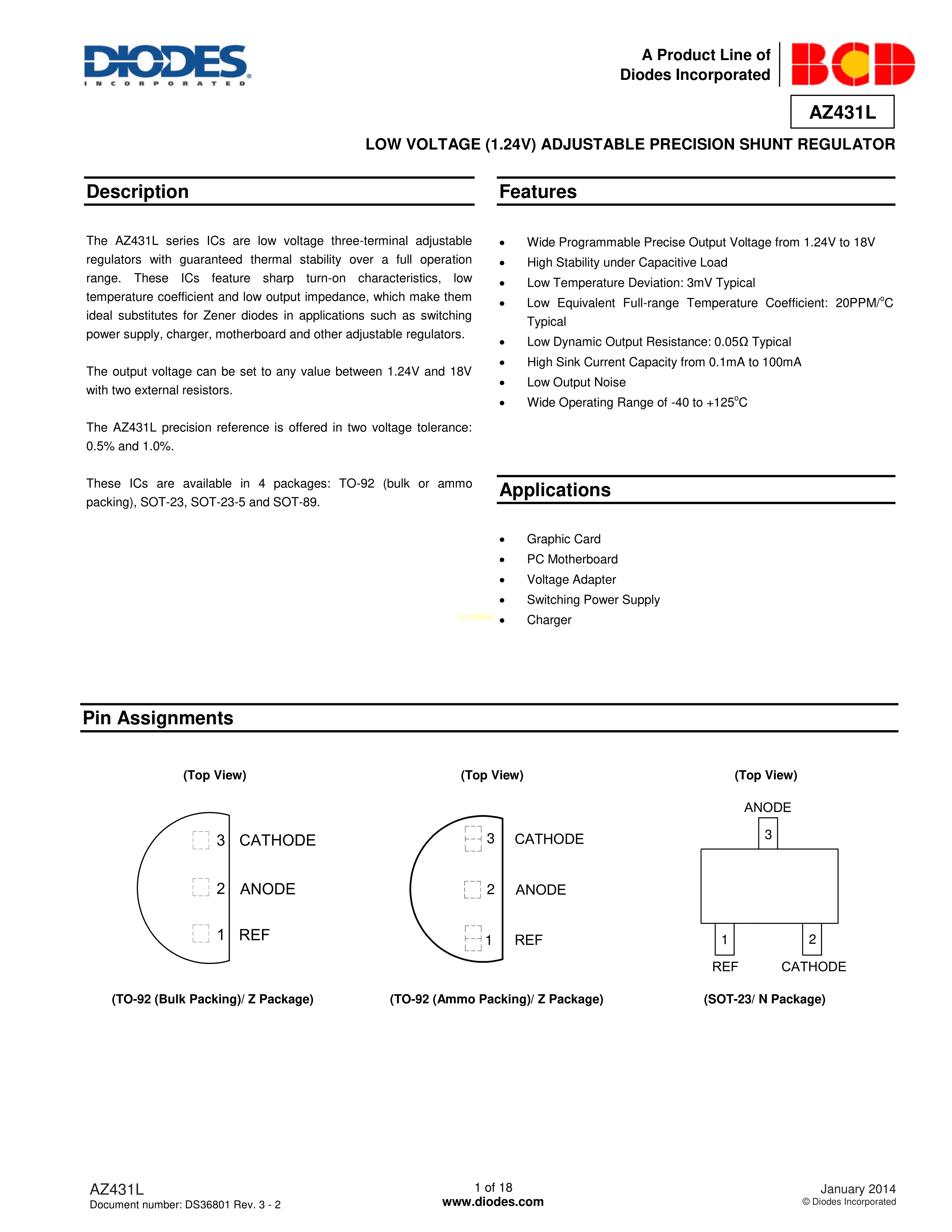 AZ431LBNTR-G1数据手册SOT-23(SOT-23-3)封装DIODES(美台)PDF规格