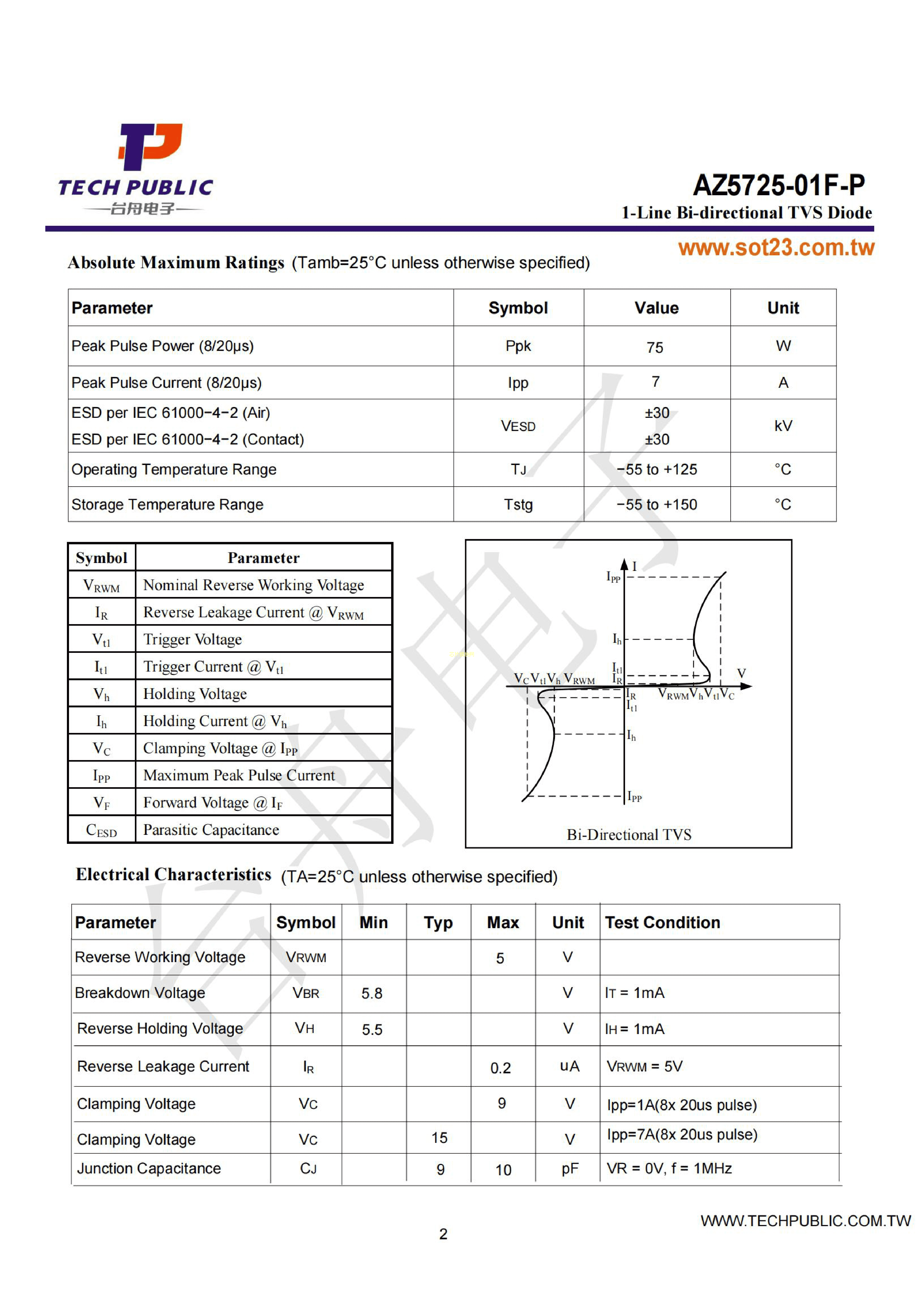 AZ5725-01F-P数据手册DFN1006-2封装TECHPUBLIC(台舟)PDF规格书,中英文下载